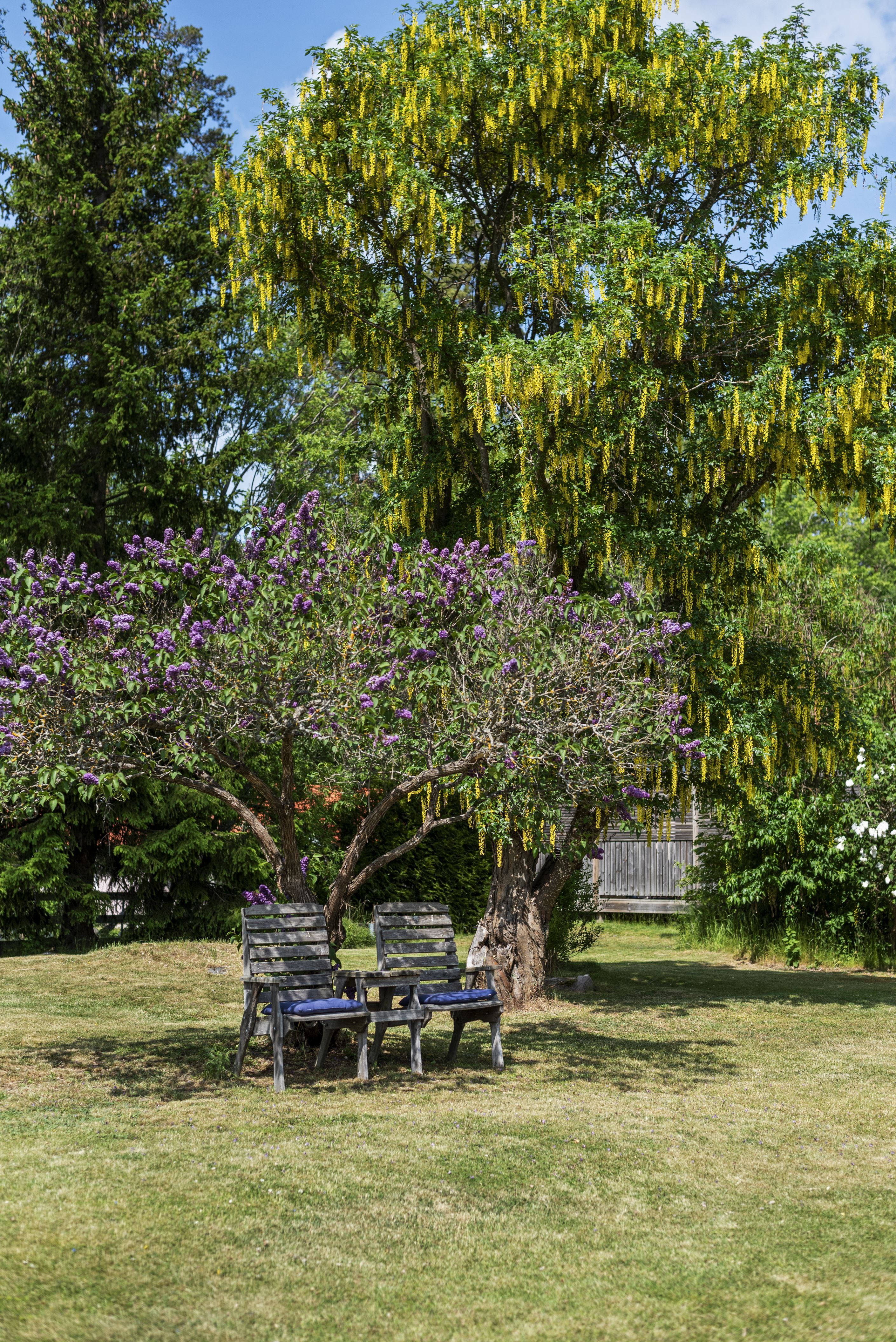 Trädgården är barnvänlig och plan – perfekt för lek, odling eller bara sköna dagar i solen. Den stora trälagda altanen i bästa solläge ger utrymme för loungegrupp, matbord, solstolar och grill. Här kan du njuta av sol hela dagen och långa, härliga kvällar med vänner och familj.