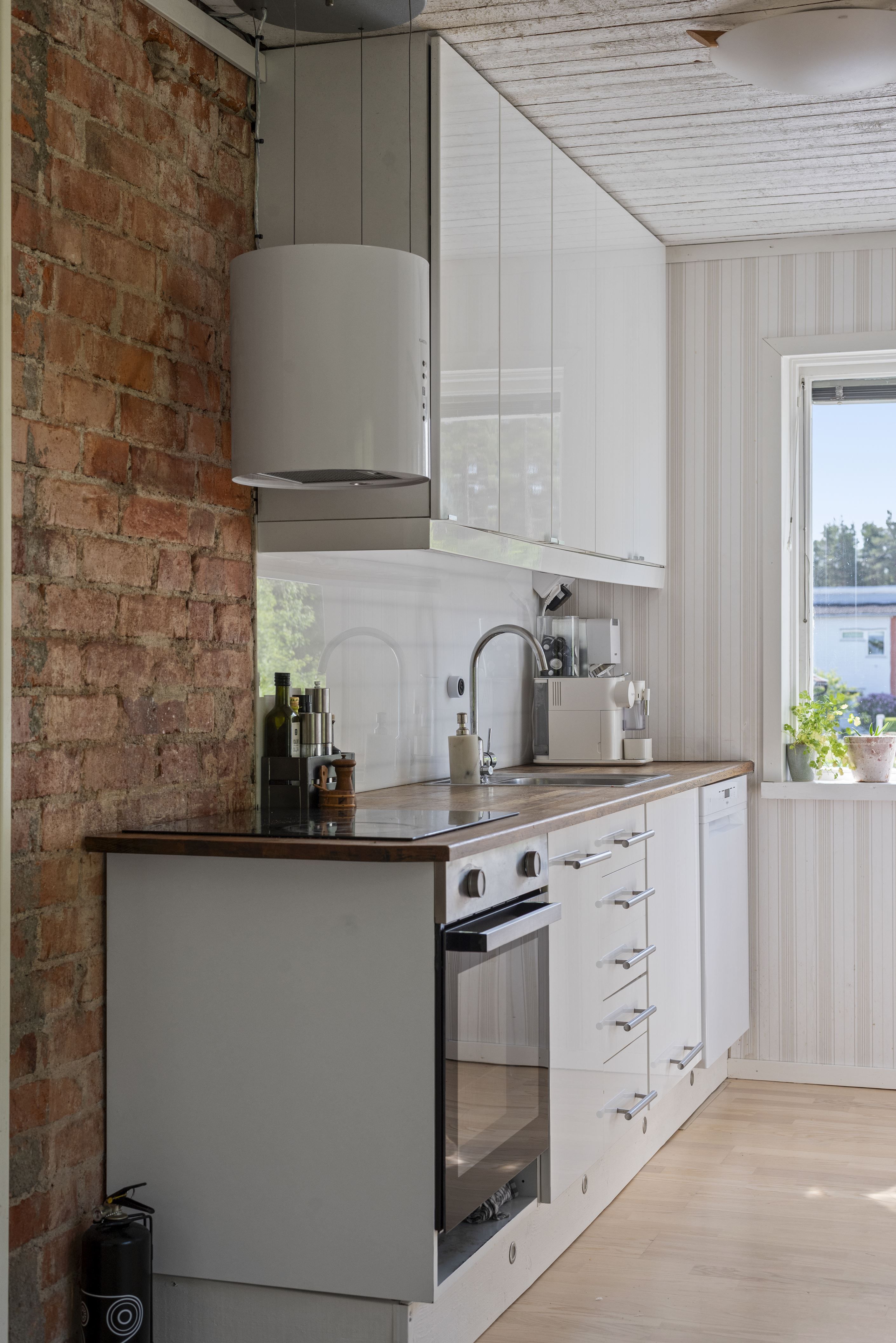 På entréplan möts du av en välkomnande hall som öppnar upp mot en rymlig matplats med mysig braskamin – en perfekt plats för stora middagar och umgänge. Det praktiska arbetsköket ligger i öppen och social anslutning till matplatsen. Vardagsrummet har en halvöppen planlösning mot både kök och hall och skapar en luftig och trivsam känsla.