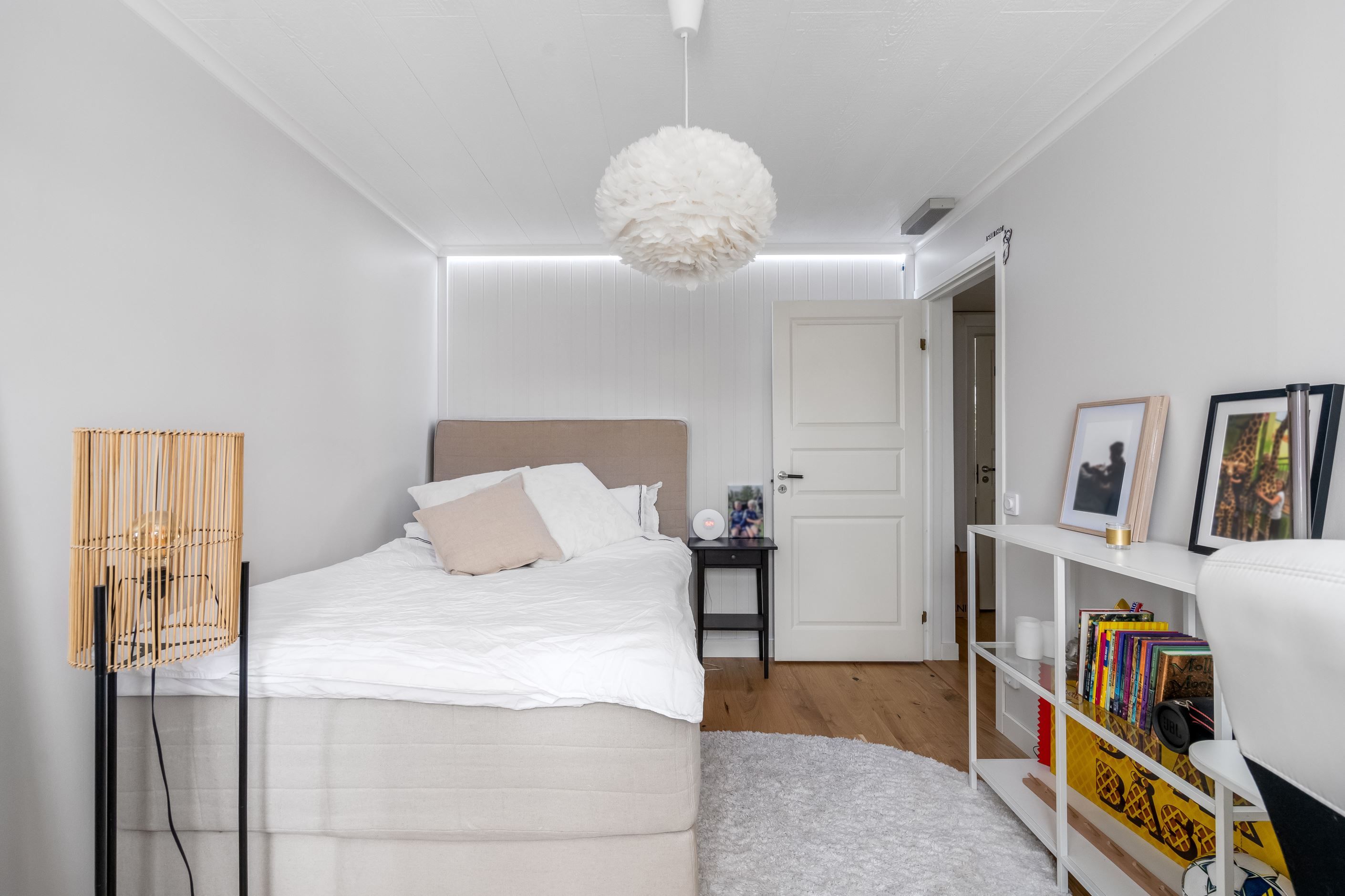 • Maffigt allrum en trappa upp med imponerande takhöjd och generösa fönsterpartier. Rummet kan enkelt anpassas till ytterligare sovrum, om så önskas.