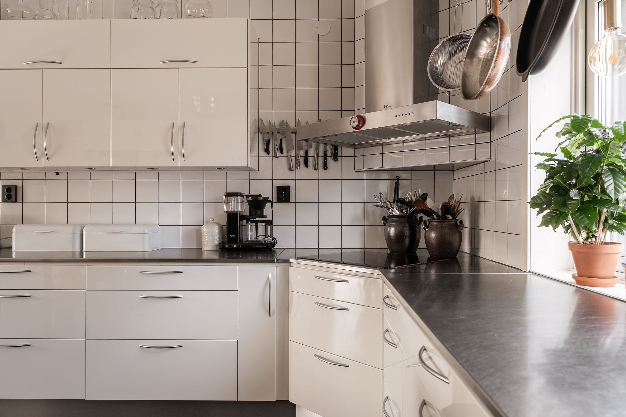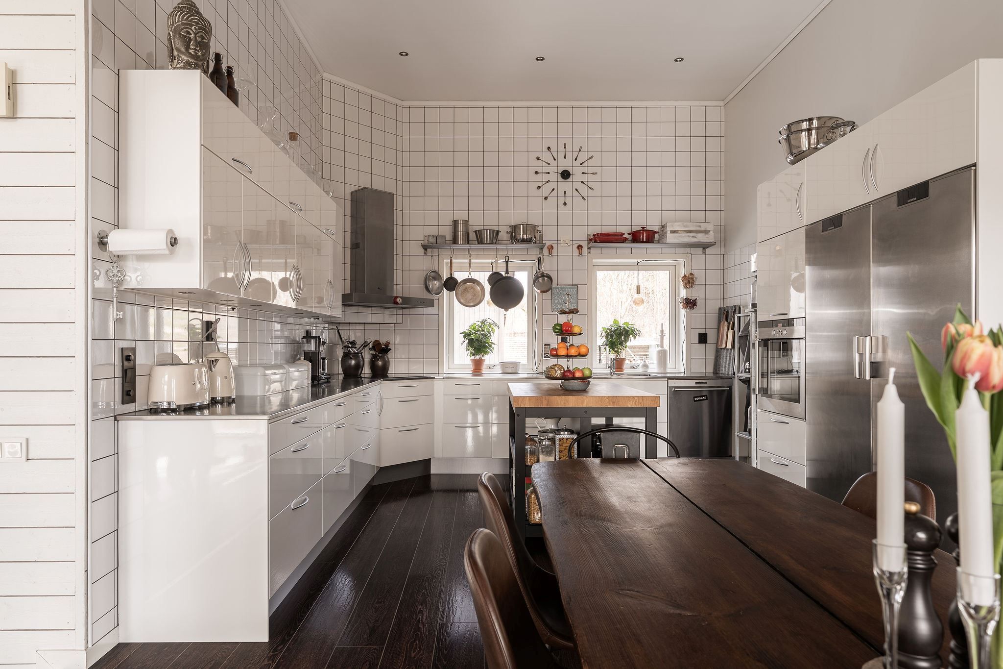 Köket är hemmets självklara hjärta, välplanerat med gott om förvaring och generösa arbetsytor som gör matlagningen både smidig och inspirerande. Här finns smart placerade eluttag för alla köksmaskiner, och den öppna, luftiga känslan skapar en naturlig samlingsplats där man gärna hänger vid matlagning.
