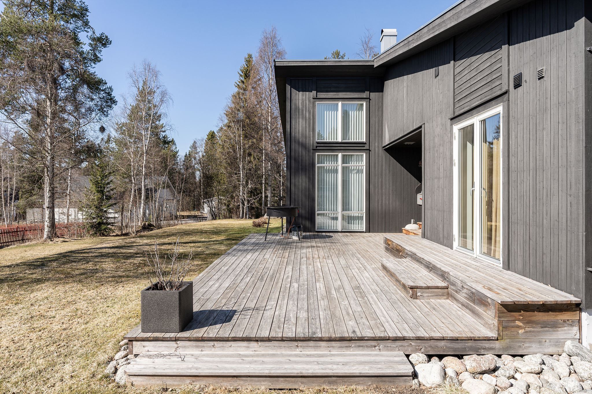 Tomten är smart planerad för att du ska kunna njuta av solen från morgon till kväll. Från uteplatsen på framsidan till den generösa altanen som sträcker sig längs stora delar av husets baksida finns alltid en perfekt plats att slå sig ner på – oavsett tid på dagen.