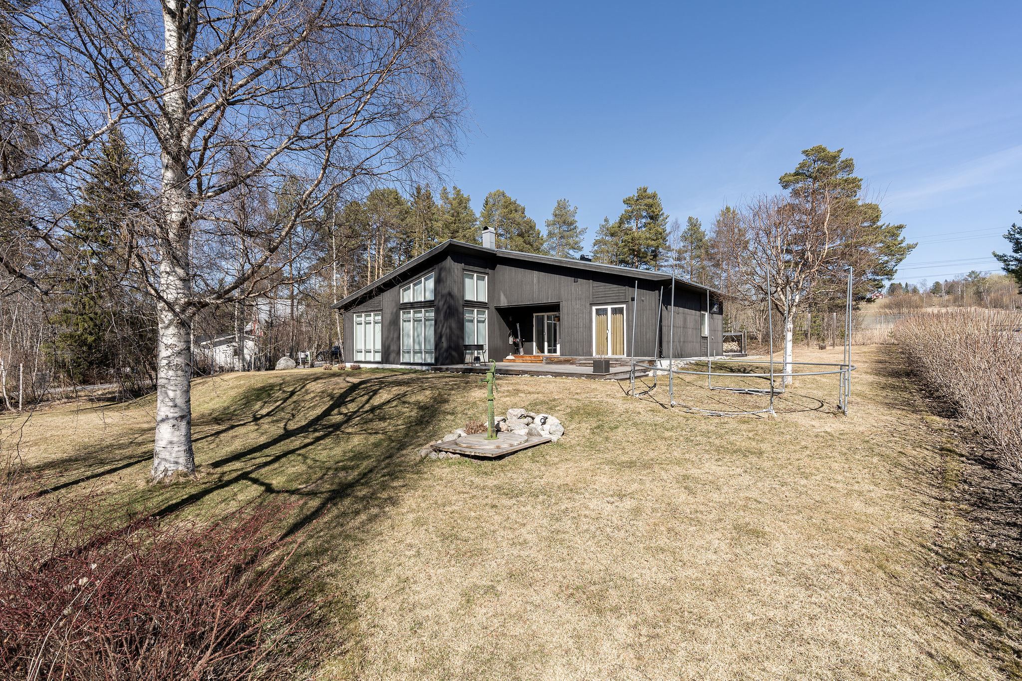 Huset värms upp med bergvärme vilket ger låga driftskostnader.