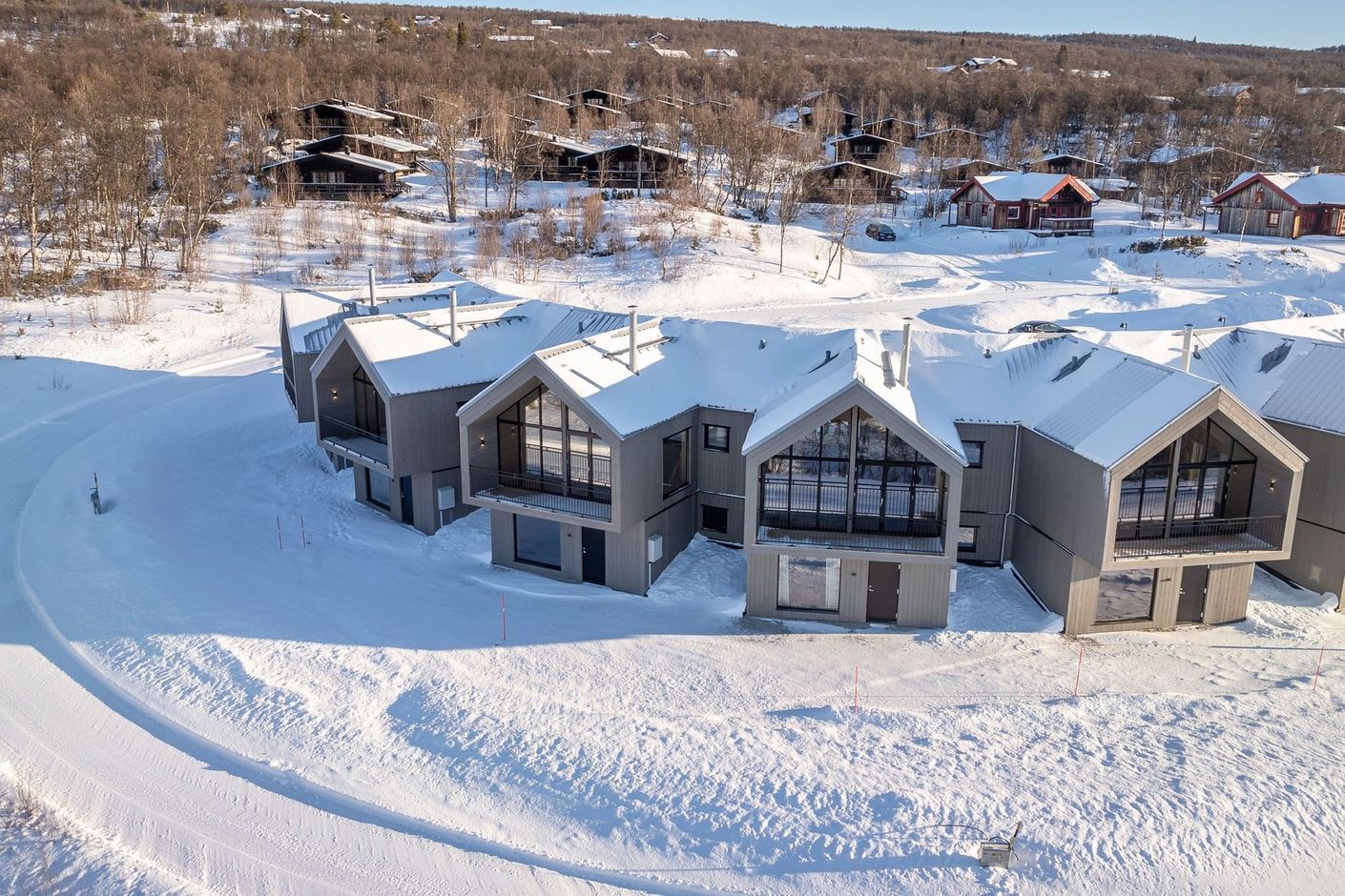 En samtida tolkning av den klassiska fjällstugan, belägen högt upp med spektakulär utsikt över både Tänndalssjön och fjället. Här kan både terrass och altan avnjutas i solen som följer med detta läge både eftermiddag och kväll. Här karaktäriseras fasaden av branta gavlar, terrasser och panoramafönster som suddar ut gränsen mellan ute och inne.