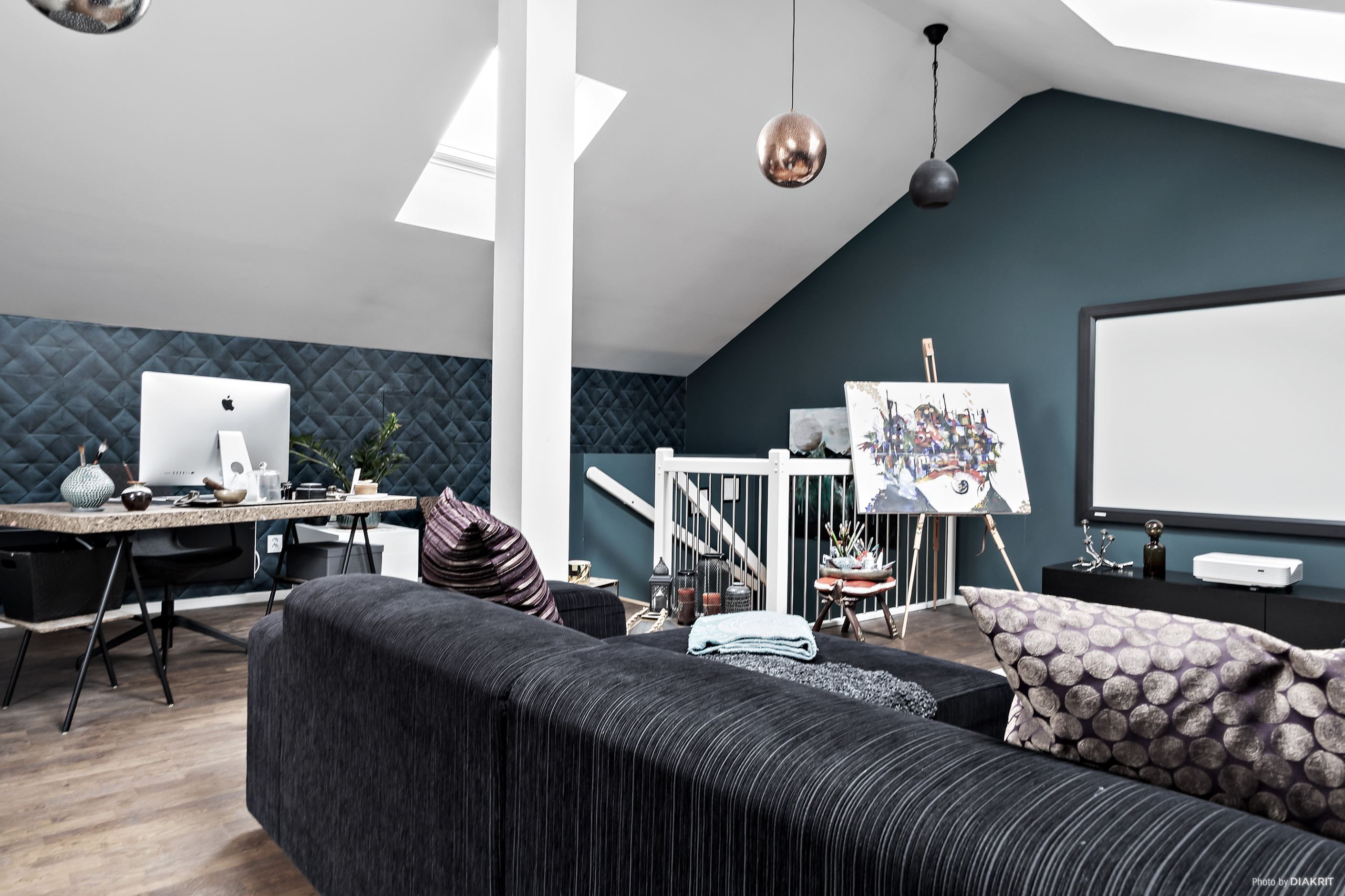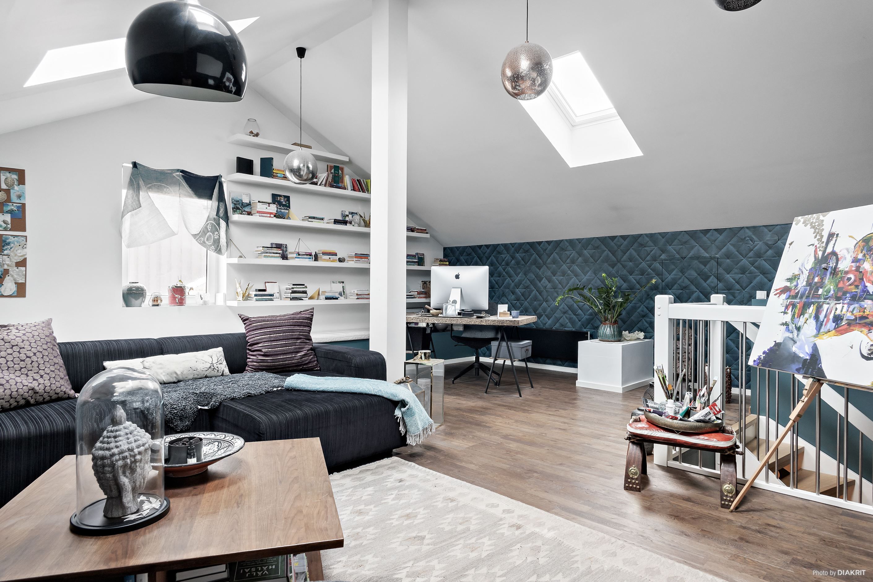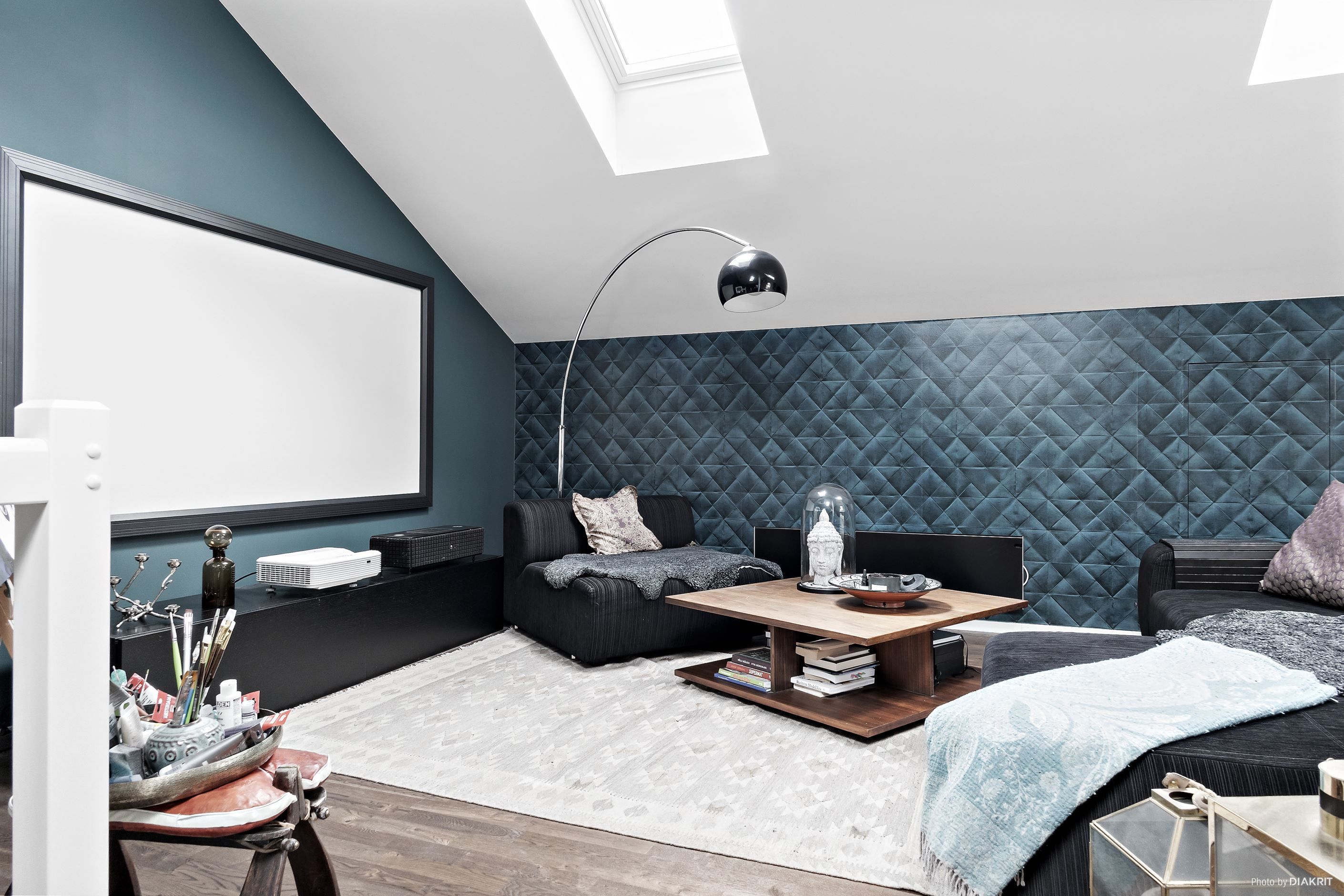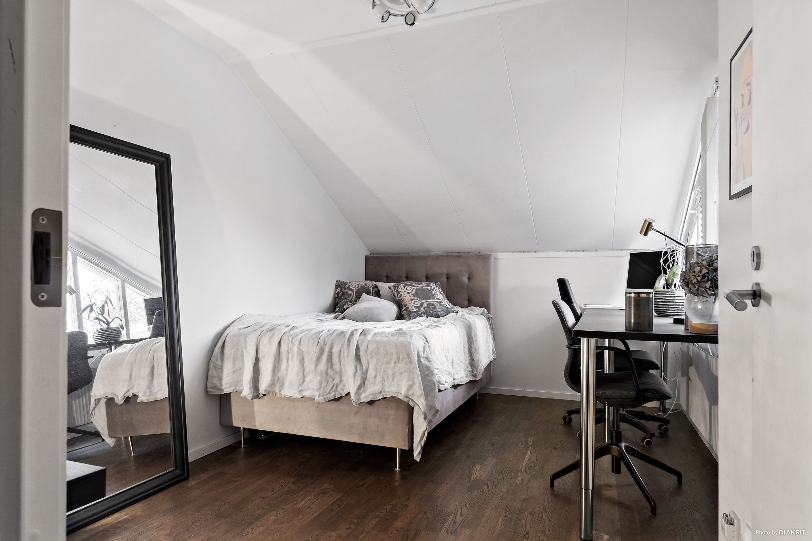 Via den gedigna trappan tar du dig upp till den inredda vinden som färdigställdes 2015 och som tillför en fantastisk extra dimension till boendet. Här väntar ett stort allrum, som idag också har en projektor och bioduk installerat, med fin karaktär och gott om plats för TV rum, lekyta, arbetsplats eller en mer privat del av hemmet. Därtill finns klädkammare och smarta förvaringslösningar i kattvindar, vilket gör bostaden lätt att organisera och hålla i ordning.