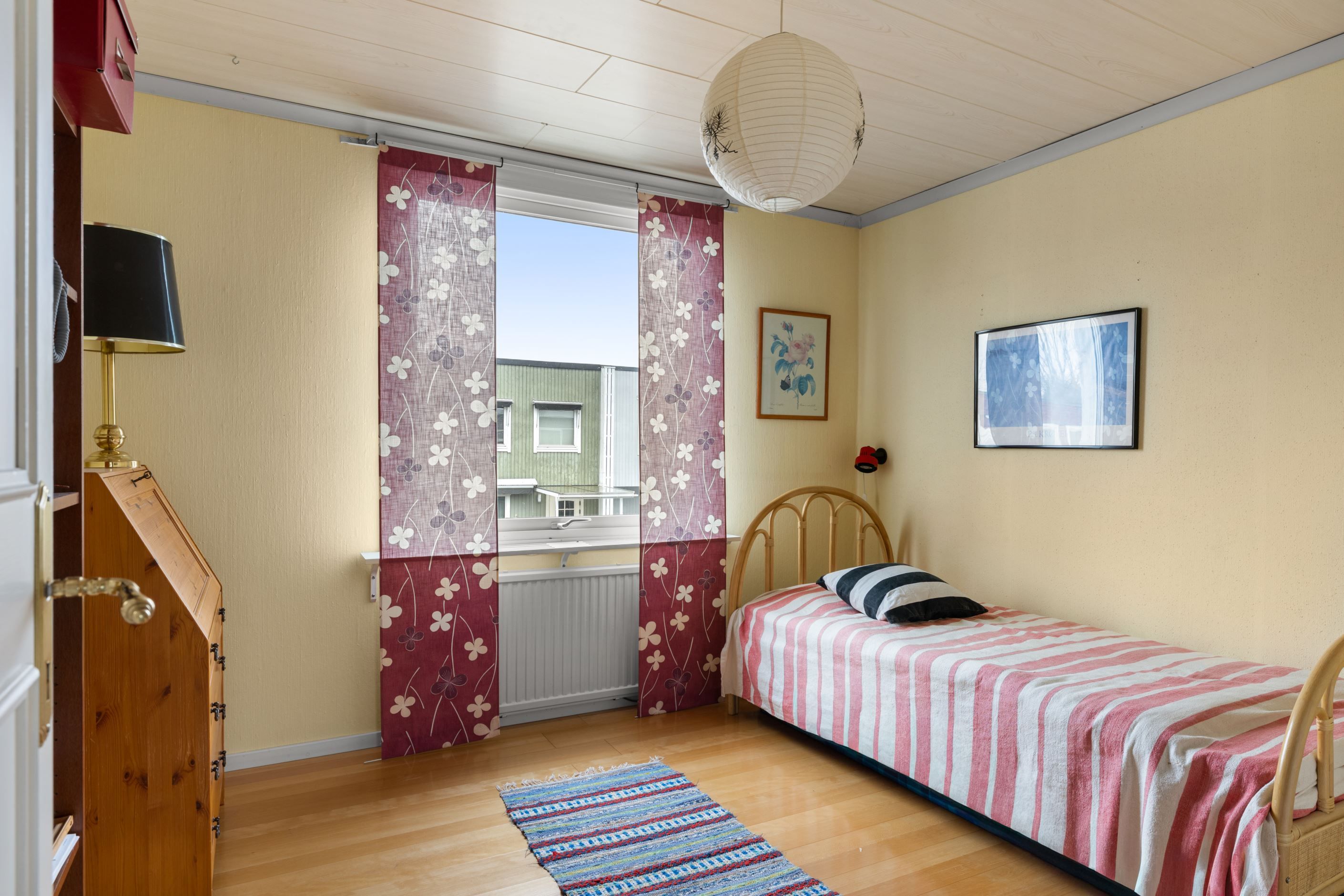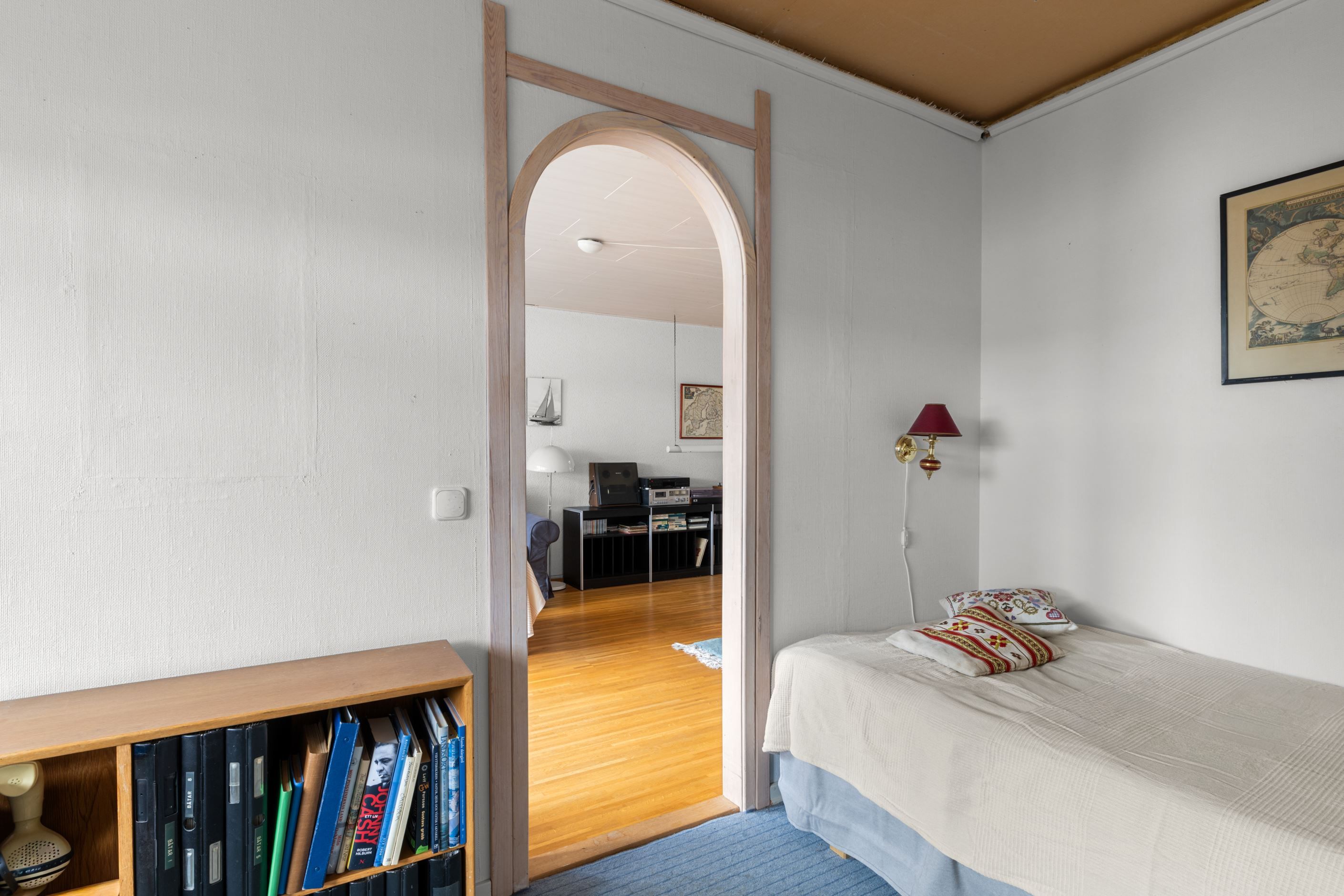 På övre plan finns ytterligare tre sovrum samt badrum. Ett av sovrummen har utgång till balkong, vilket ger en extra skön plats för en lugn stund med utsikt över omgivningarna. Huset har många delar i original, vilket ger en fin möjlighet för dig som vill skapa något eget och sätta din personliga prägel – här finns gott om renoveringspotential för att forma ett modernt hem utifrån dina drömmar och behov.