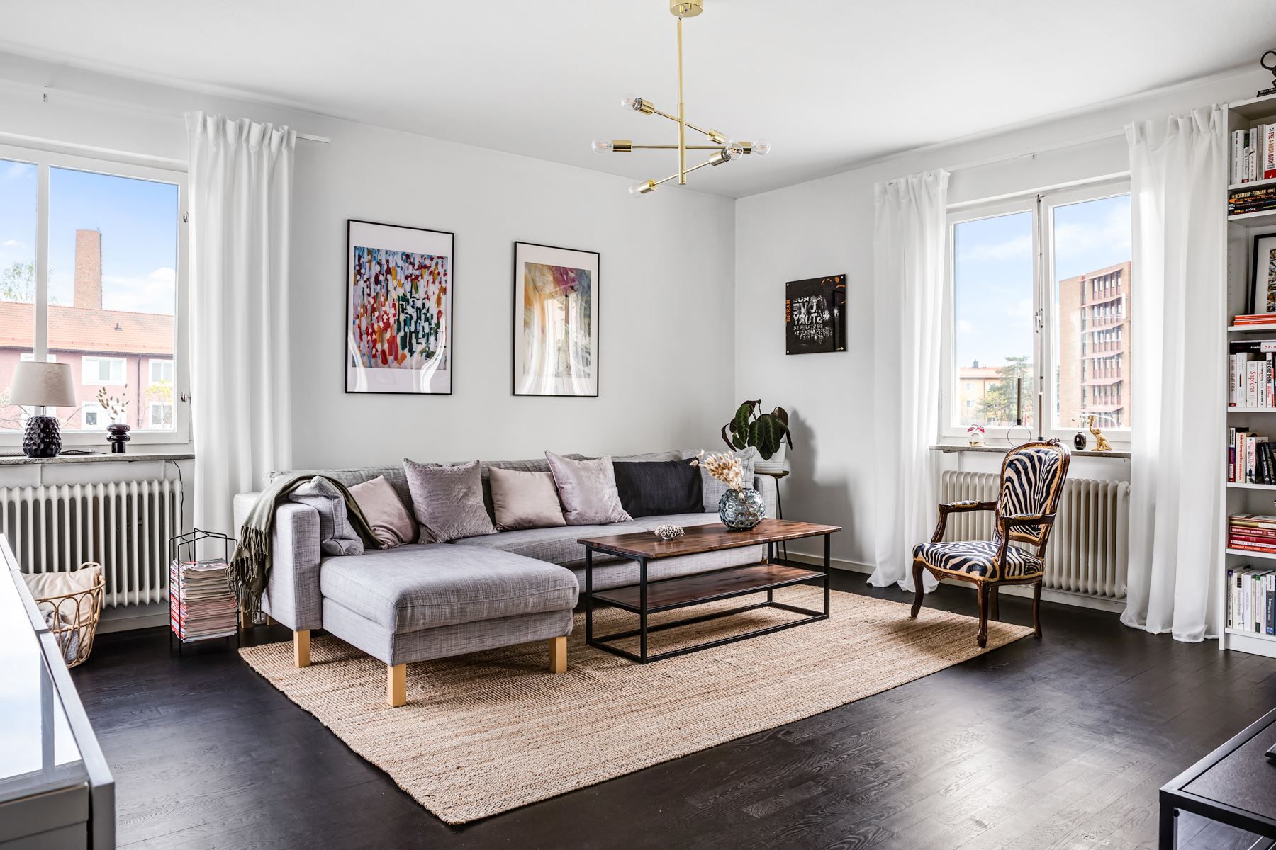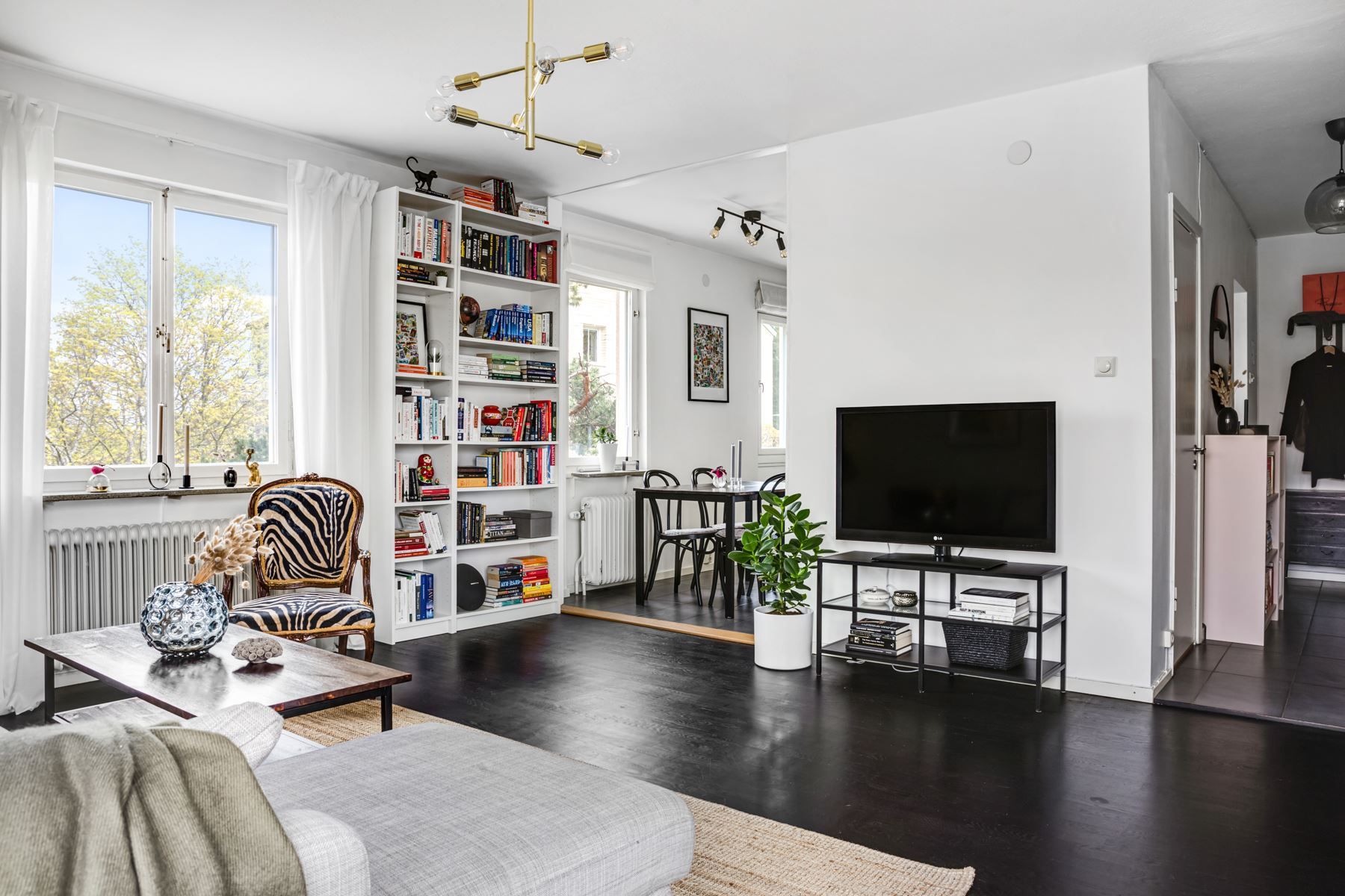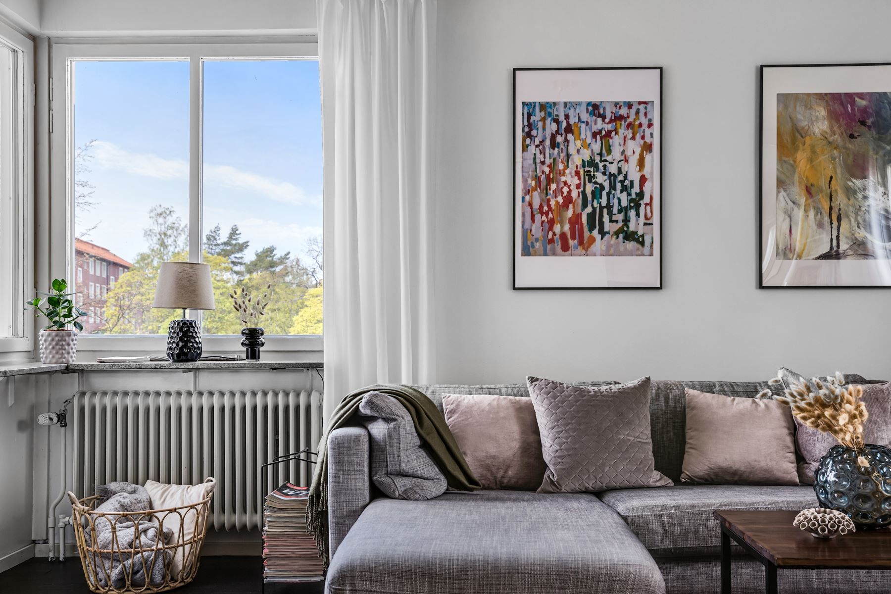 Ett stenkast från bron högst upp i huset ligger denna renoverade och stilrena 2:a om 58 kvm. Här är idag ett stort Kvik-kök med öppen planlösning mot vardagsrummet som är stort med flera fönster och access till balkong i väst. Stort sovrum med klädkammare och externa förråd. Stabil förening. Nära till kommunikationer, centrum och endast ca 10-15 min till Stureplan.