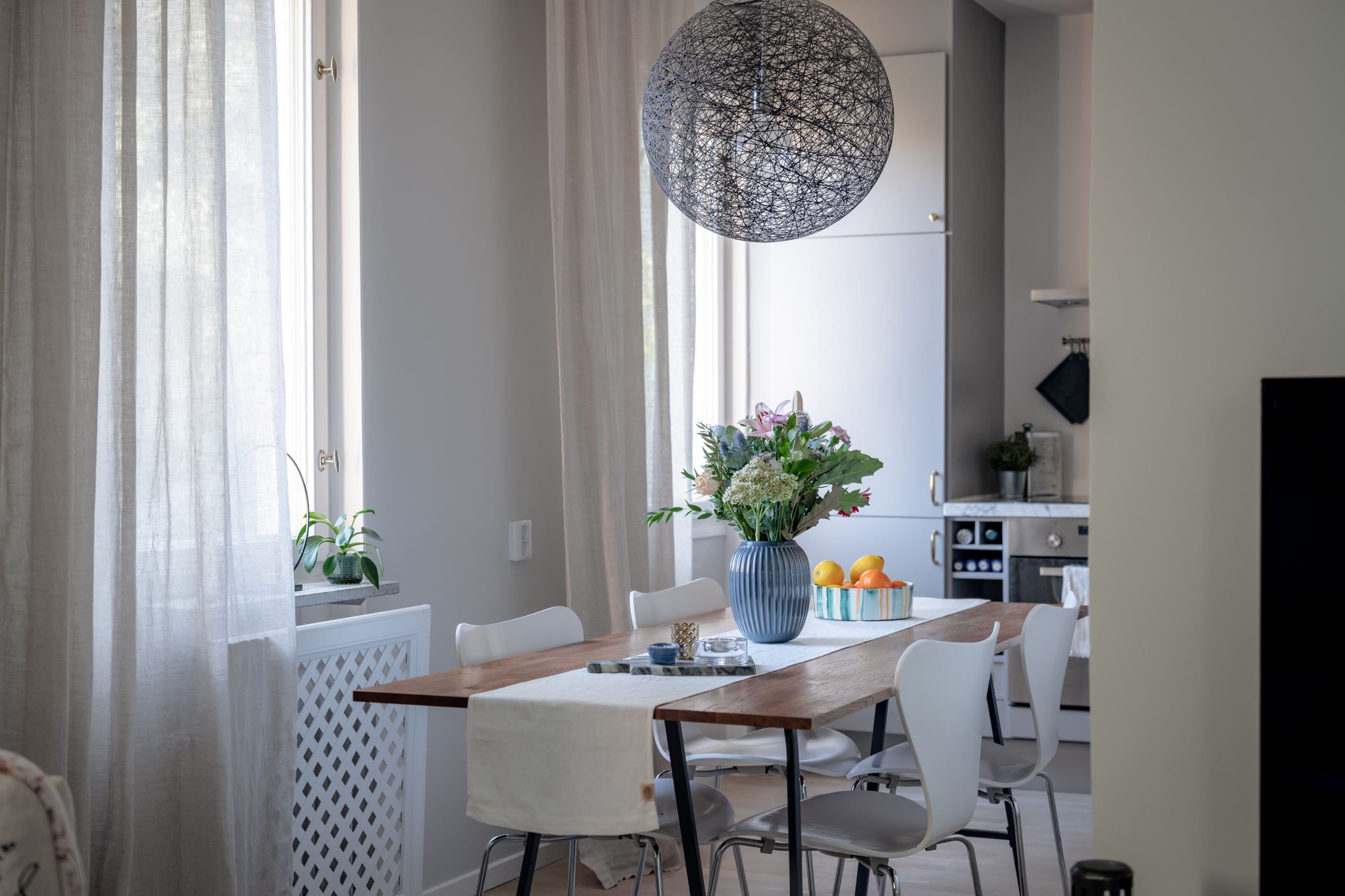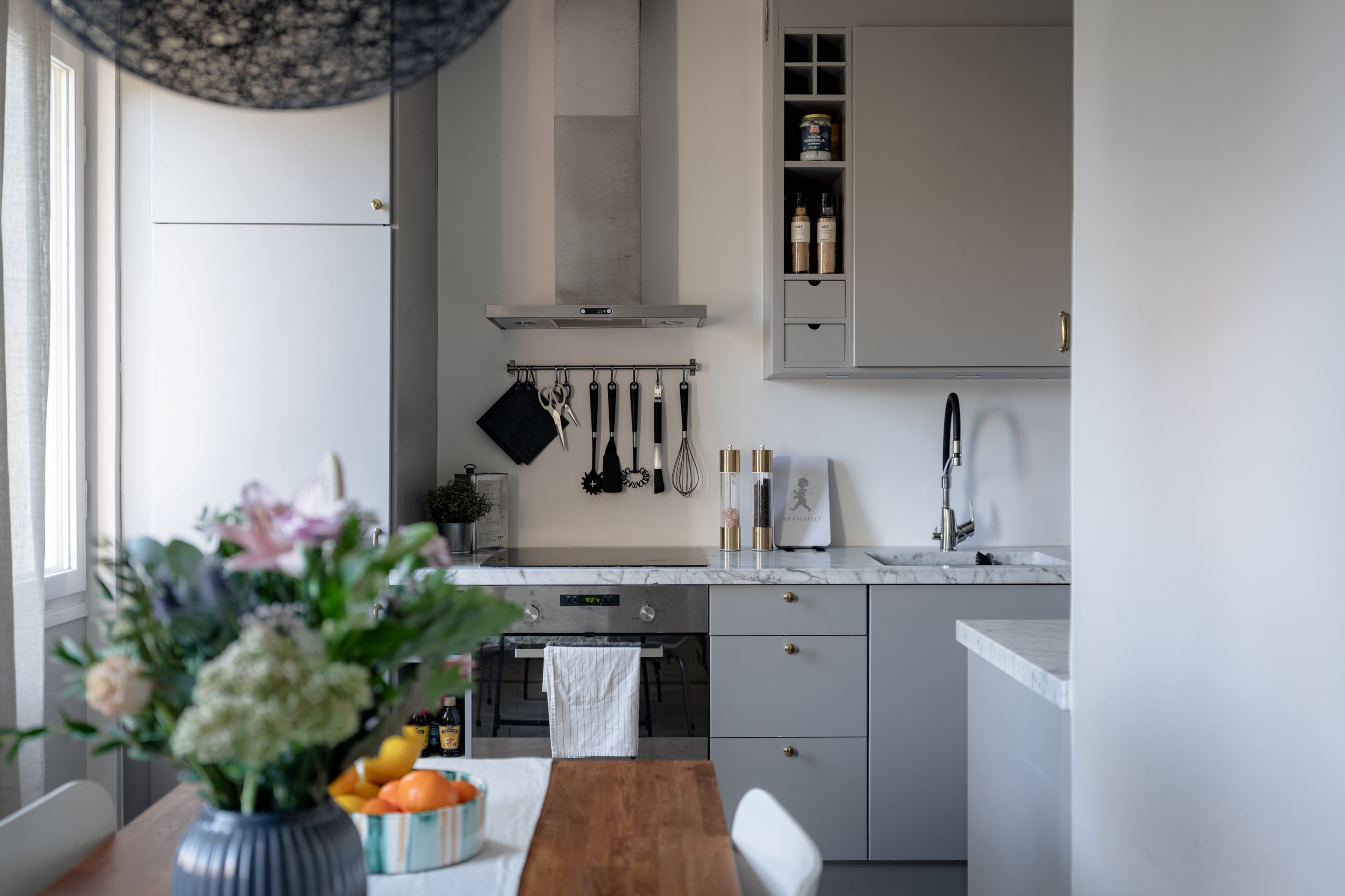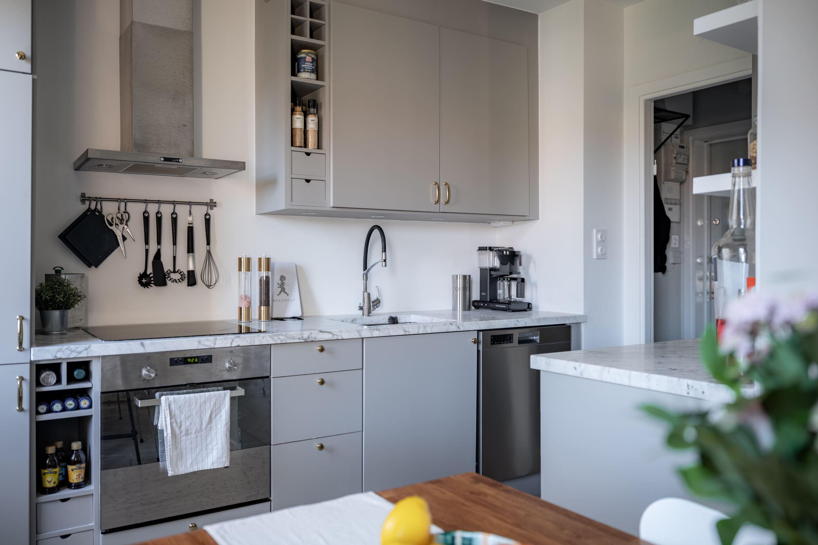Ett stenkast från bron högt upp i vackert 40-tals hus ligger denna totalrenoverade, smakfullt påkostade och för området ovanligt stora 2:a om 59 kvm. Bostaden är trevligt planerad med känsla av rymd via en öppen planlösning mellan kök, matplats och vardagsrum. Här är idag ett sobert kök med läcker stenskiva och matplats intill för 4-6 sittande. Generöst, lätt möblerat och socialt vardagsrum med flera fönster och access till rymlig balkong i väst. Stort sovrum med egen klädkammare. Stabil förening med flera tunga investeringar utförda samt uthyrda lokaler som ger bra intäkter. Nära till kommunikationer, centrum och endast ca 10-15 min till Stureplan.