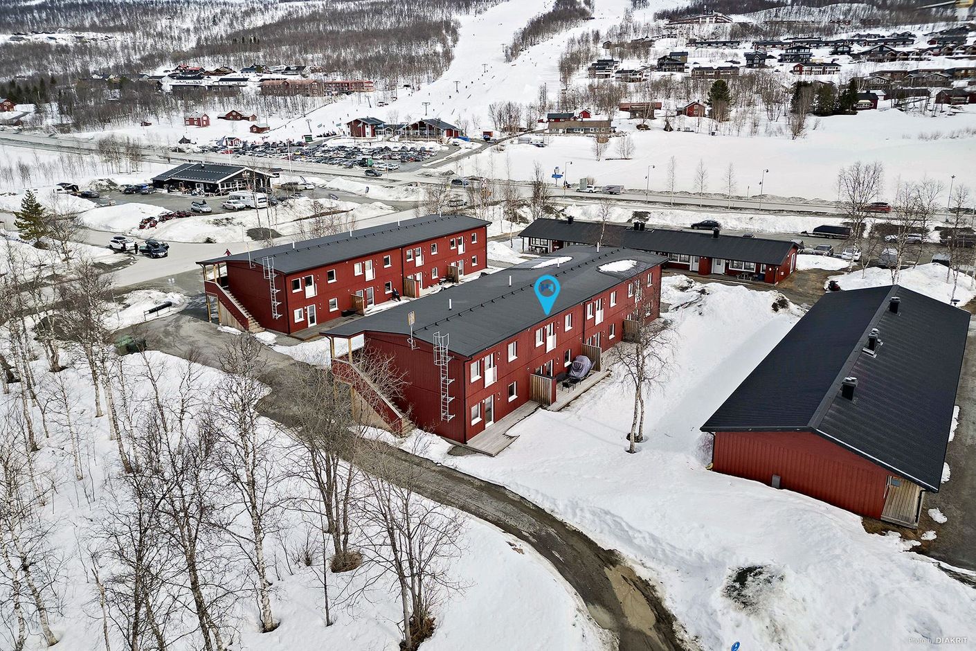 Läget är svårslaget, mitt i Hemavan med gångavstånd till både flygplatsen, slalombackar, längdspår, skoterleder och matbutik – ett komplett fritids- eller fastboende i hjärtat av fjällen.