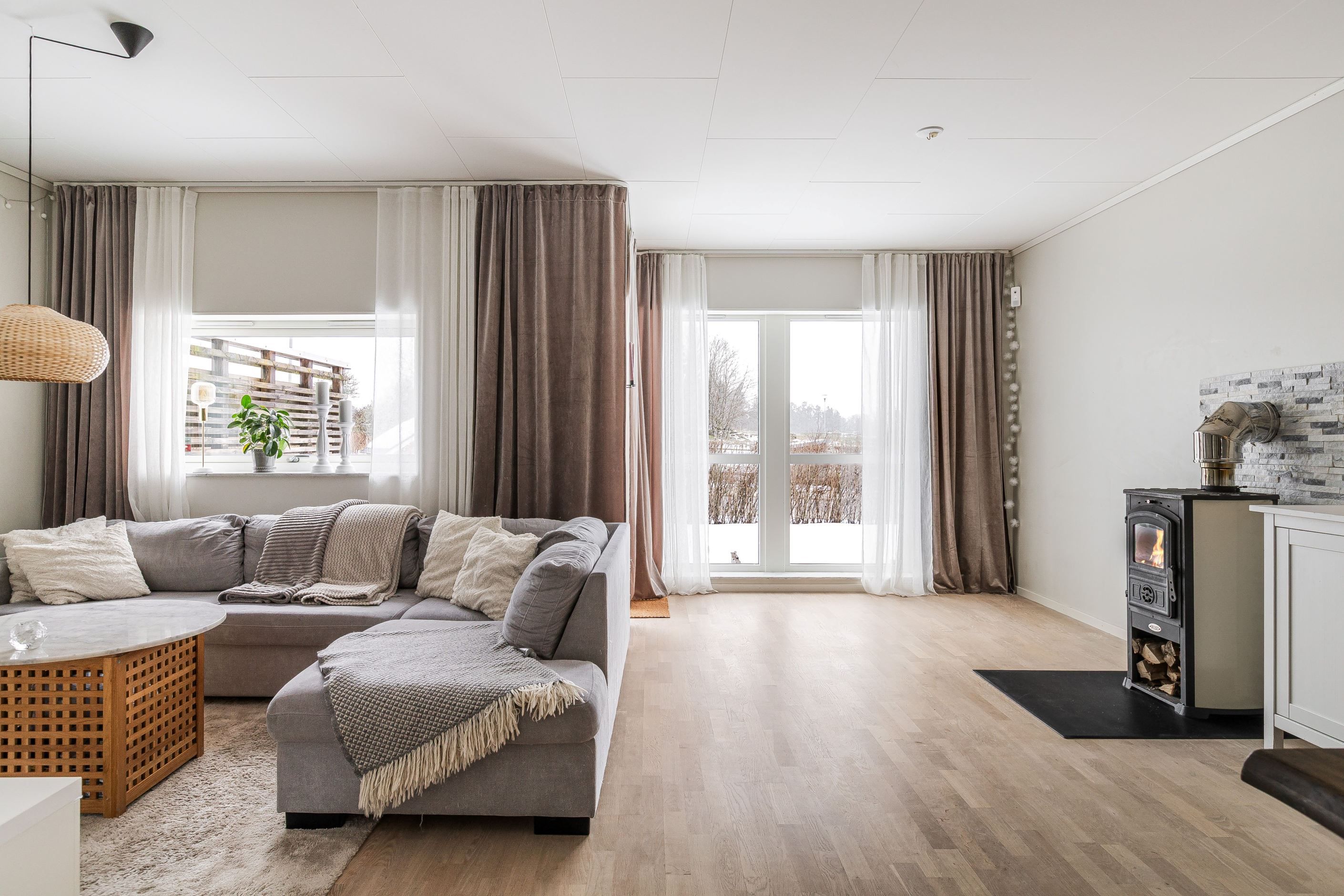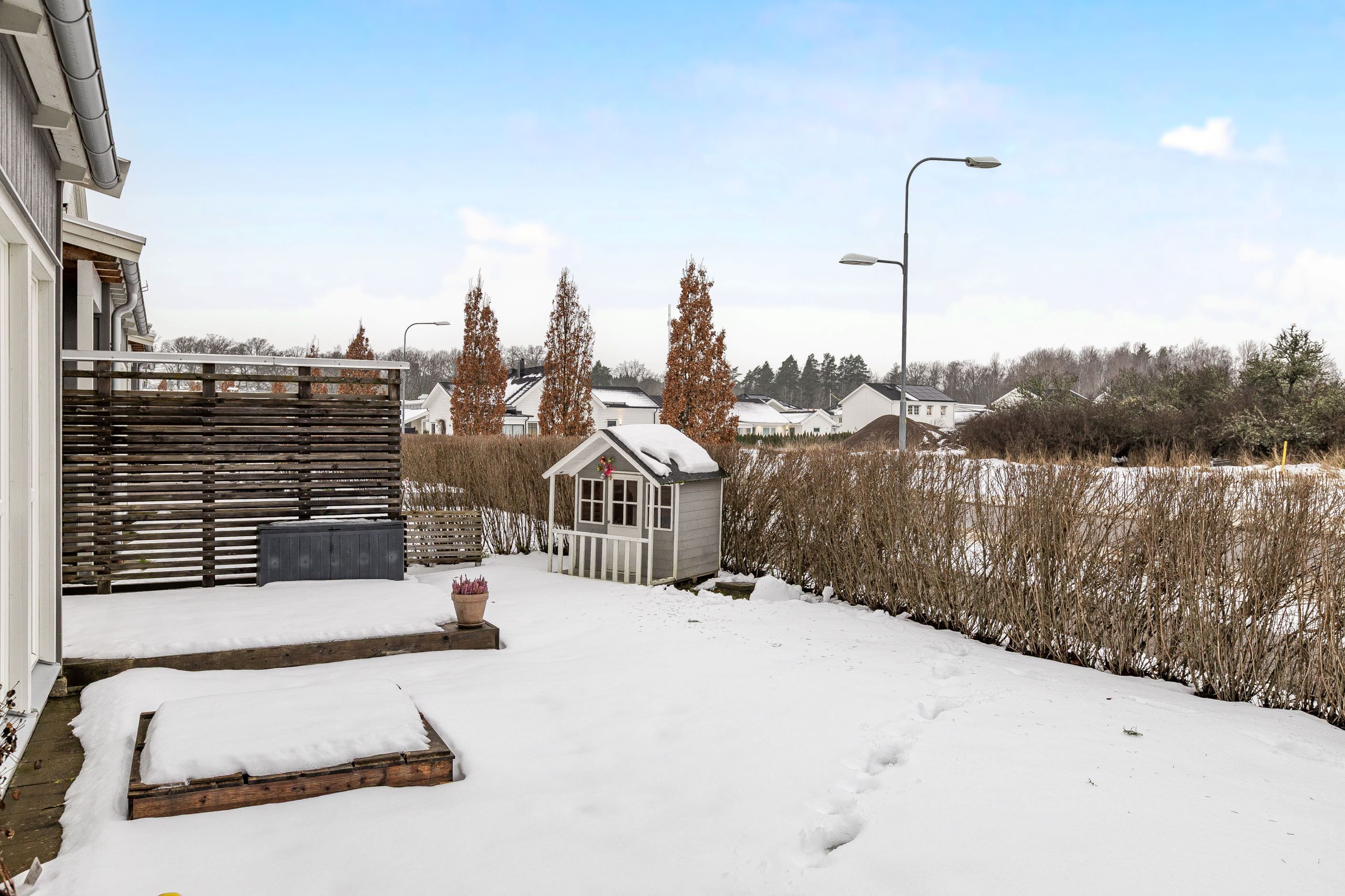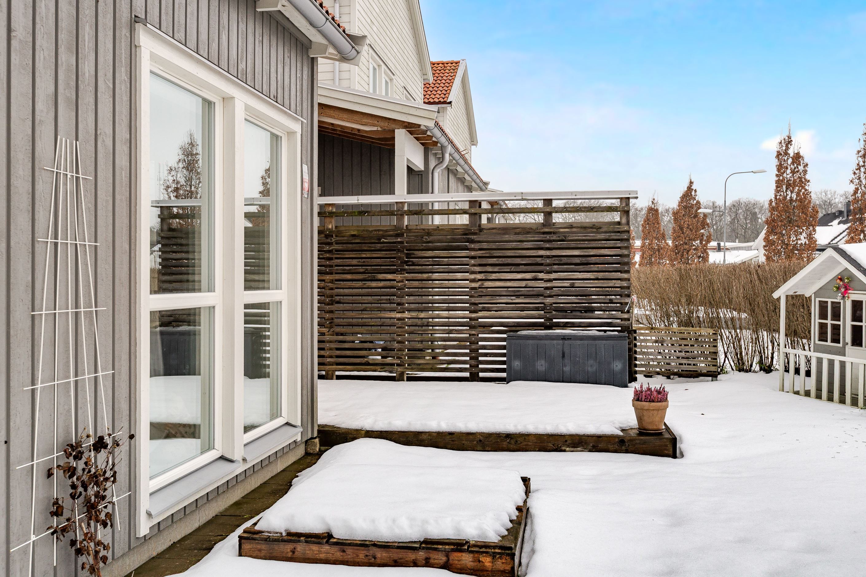 Inflyttningsklart kedjehus med braskamin och härliga uteplatser!
