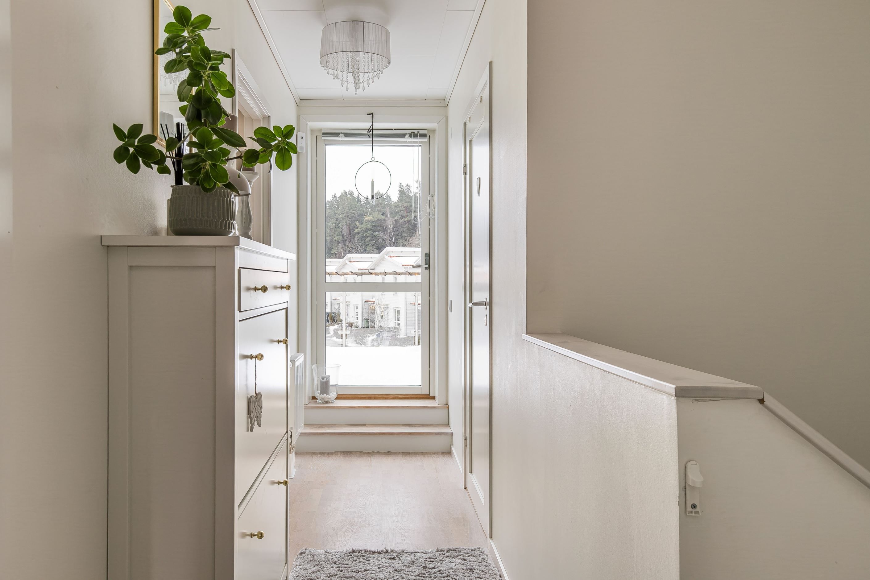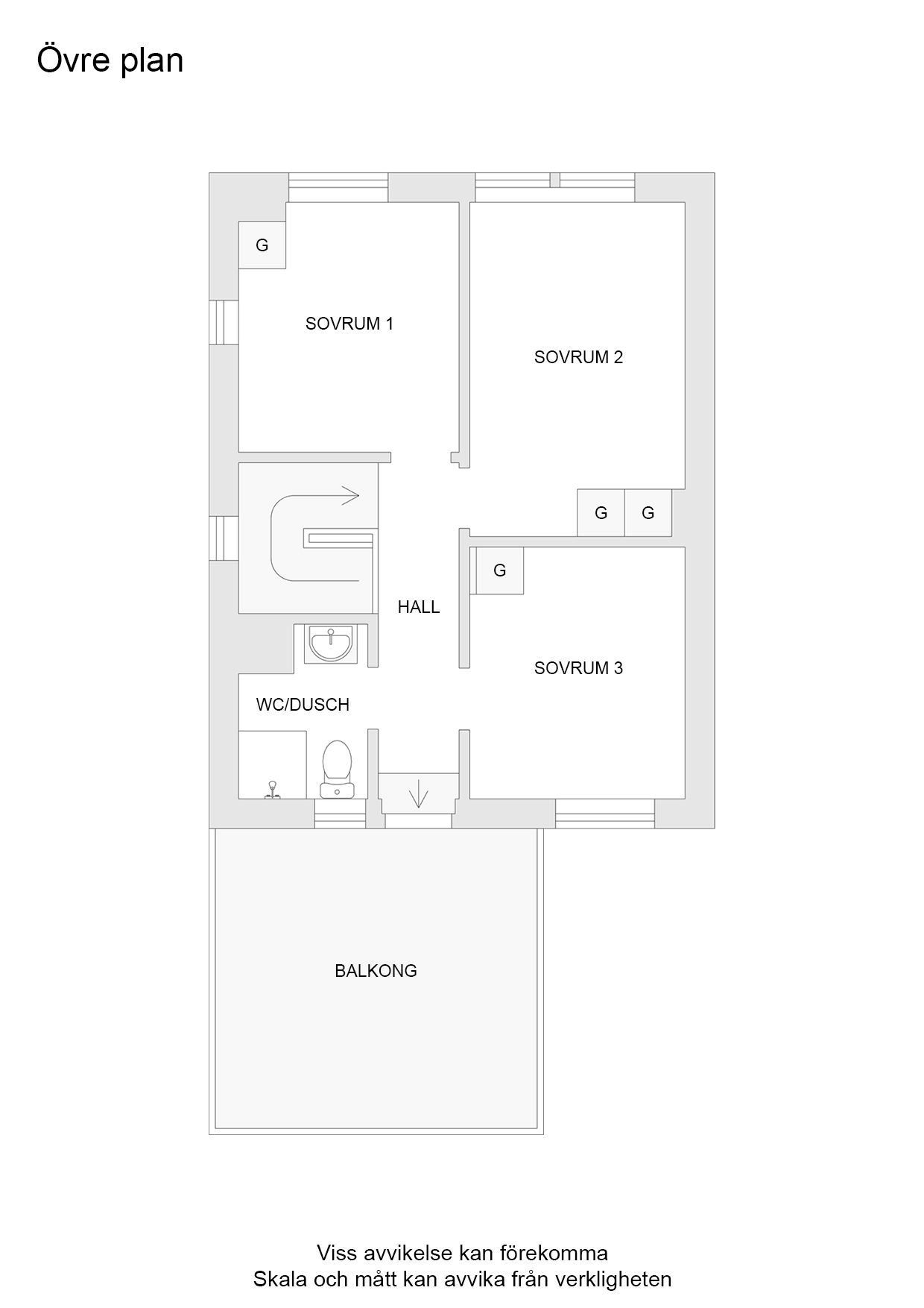 Ovanvåningen erbjuder tre väl tilltagna sovrum med plats för hela familjen. Här finns även ett andra badrum samt utgång till balkong, en härlig plats att njuta av morgonkaffet eller kvällssolen.