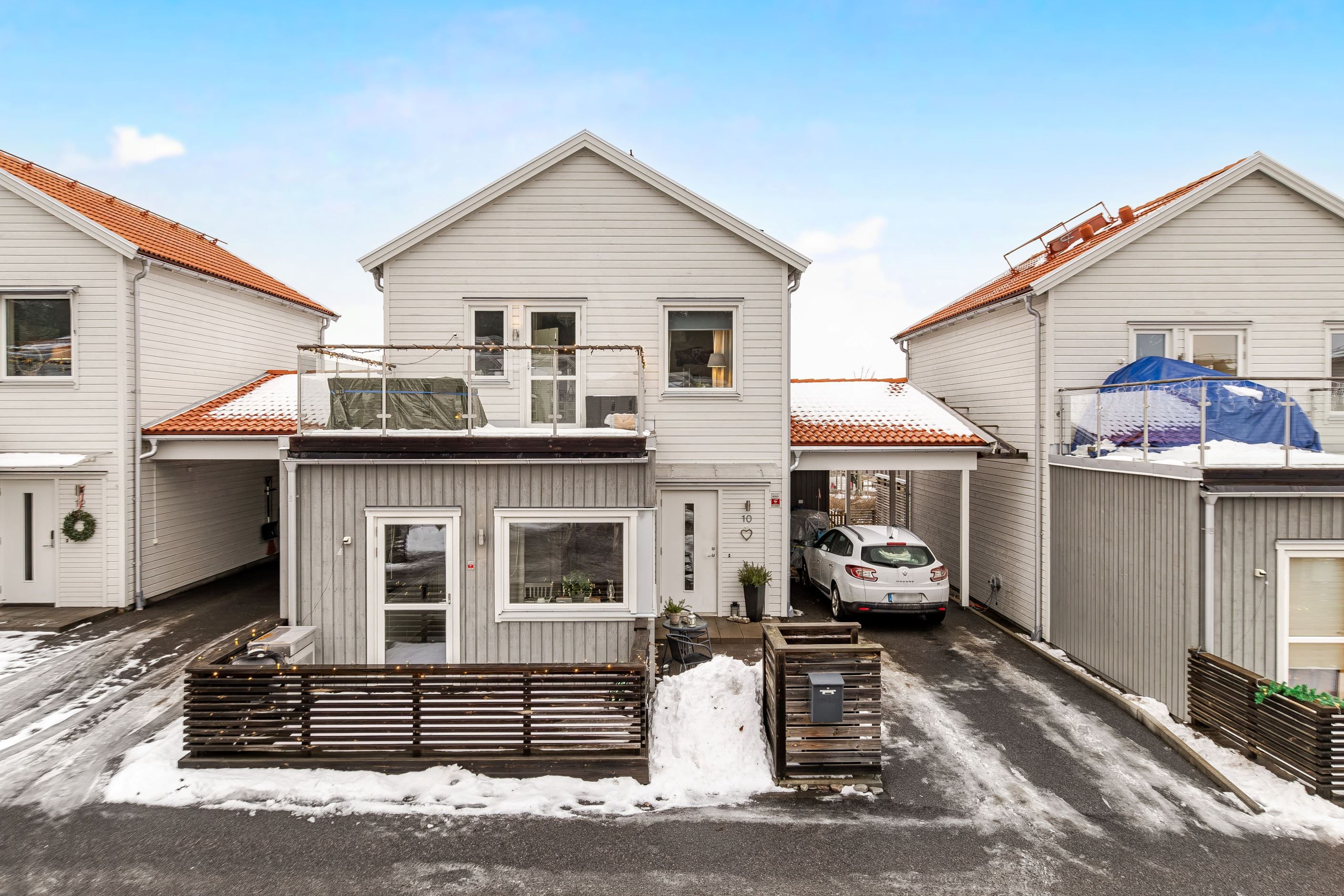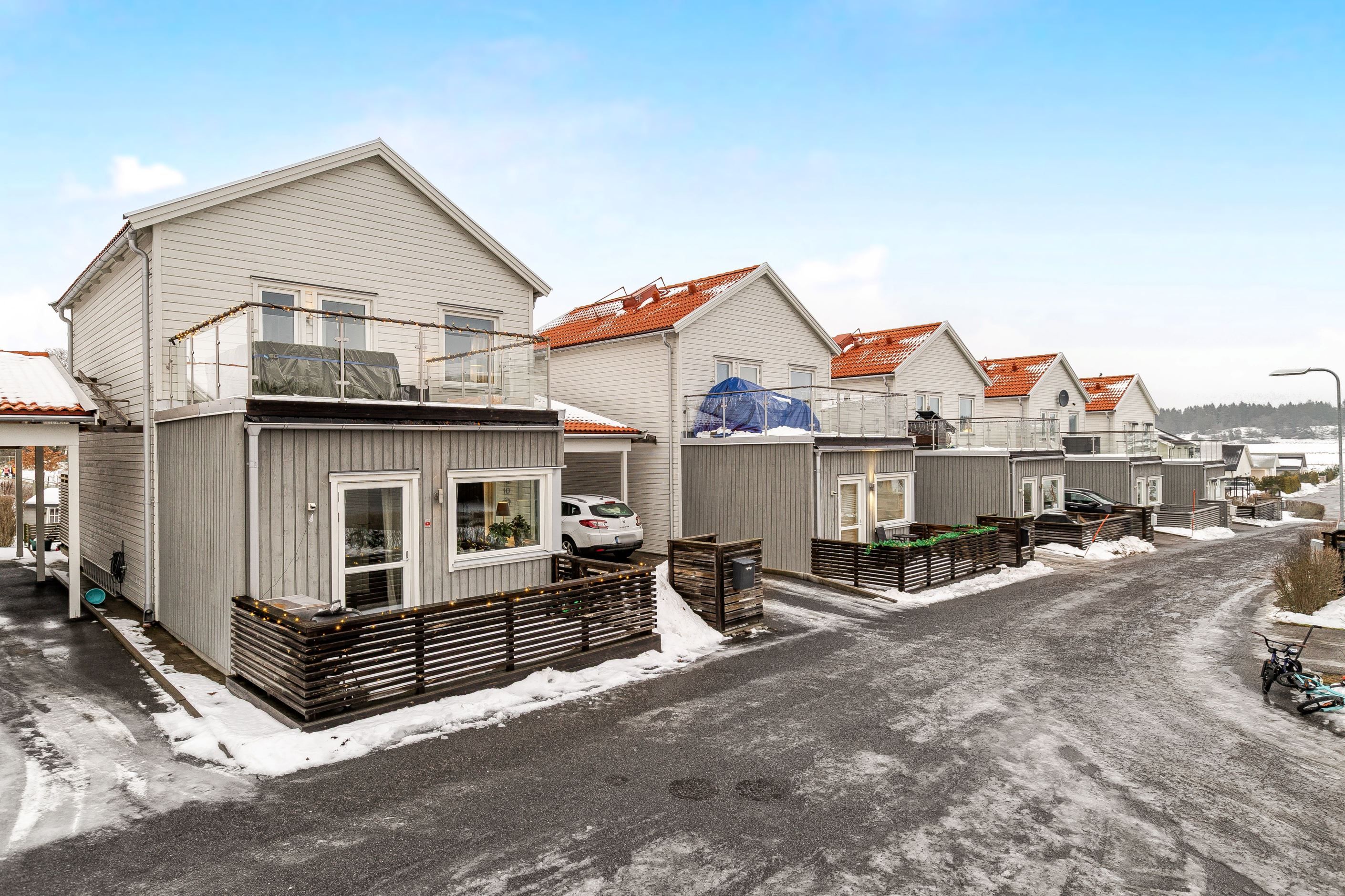 På uppfarten finns möjlighet att parkera två bilar varav den ena i en carport samt en altan som bjuder in till trevliga stunder utomhus. Sammantaget är detta ett mycket trivsamt och lättskött hem med moderna bekvämligheter, perfekt för dig som söker ett inflyttningsklart boende i ett lugnt och populärt område.