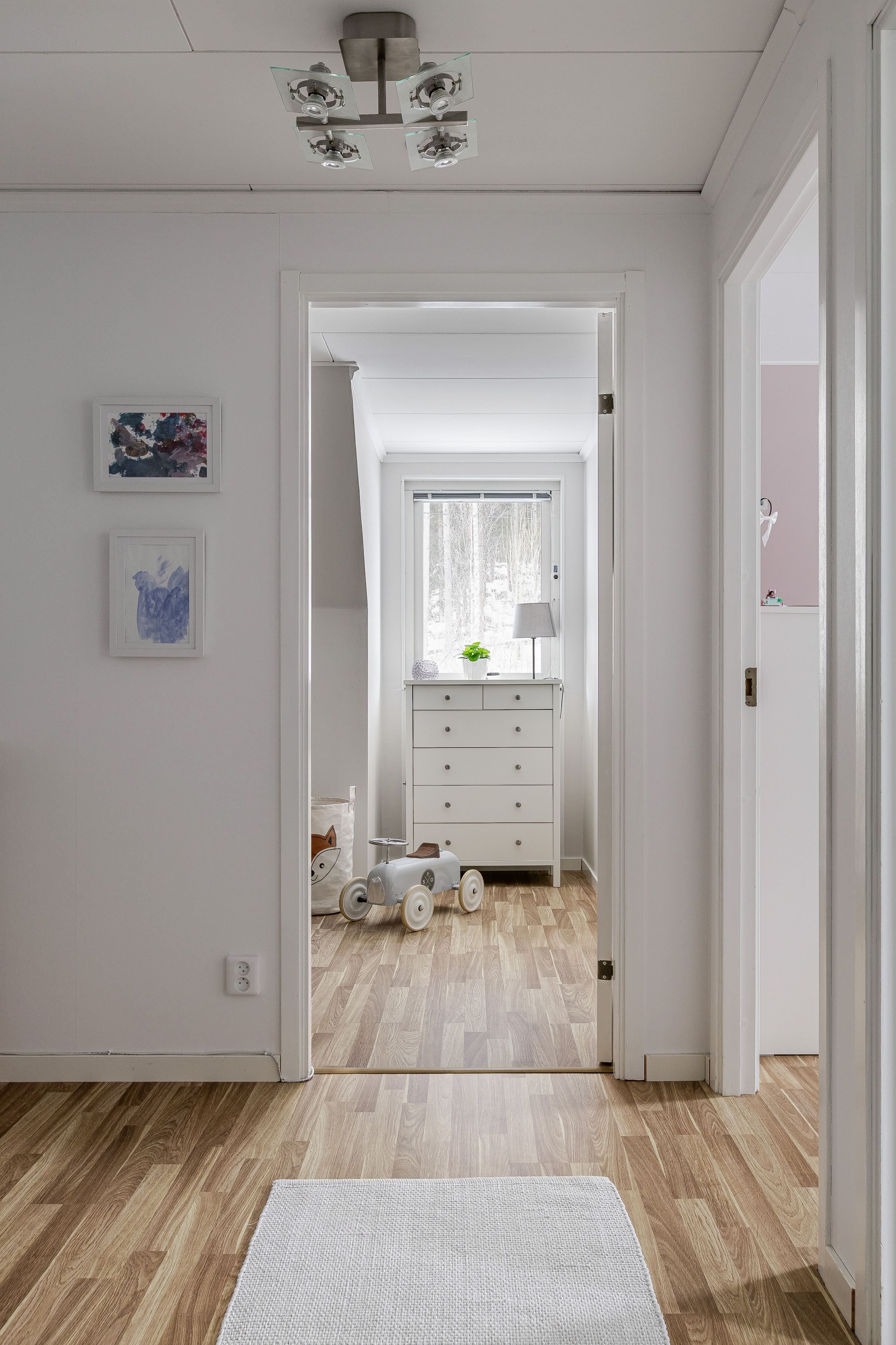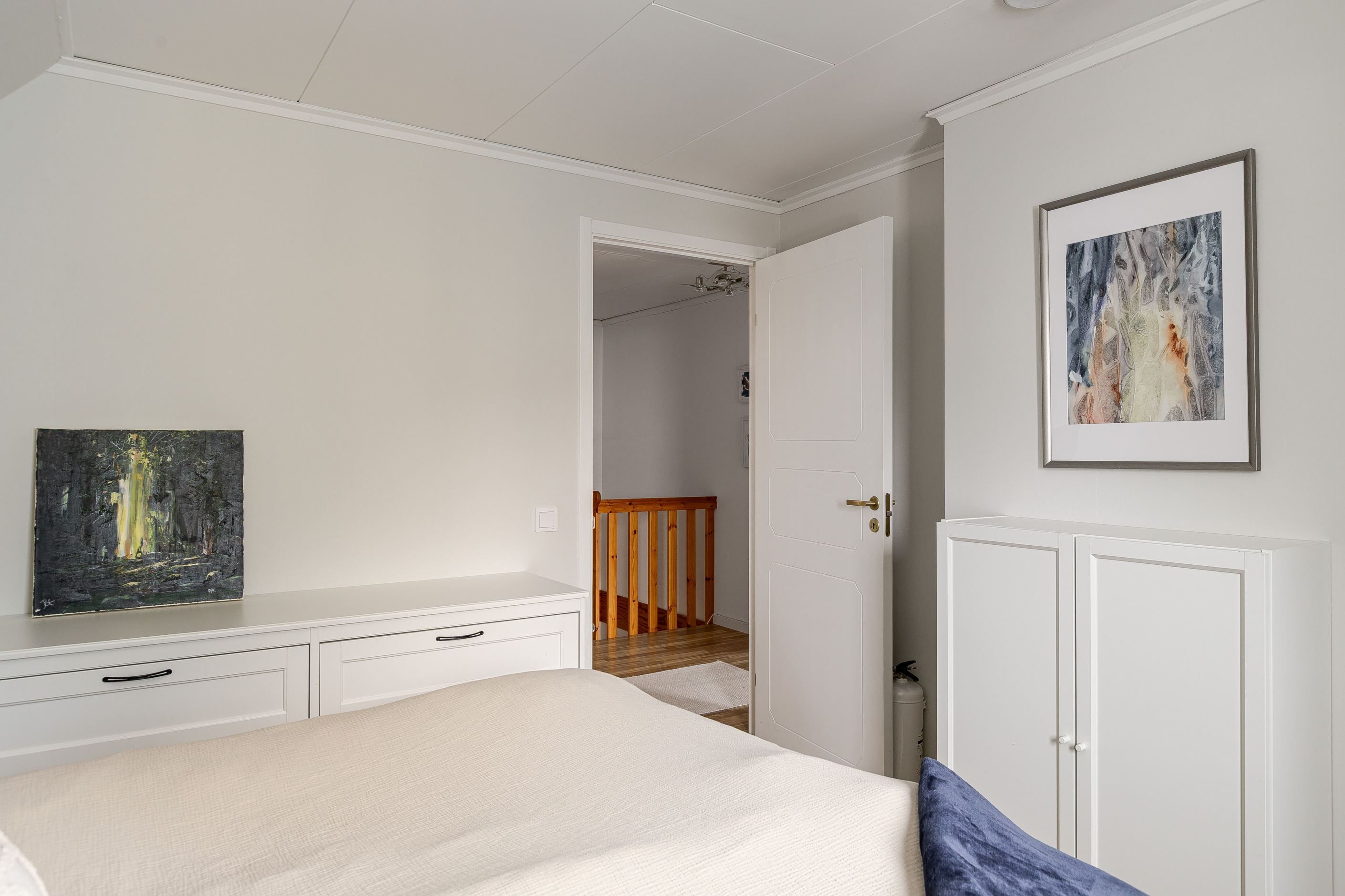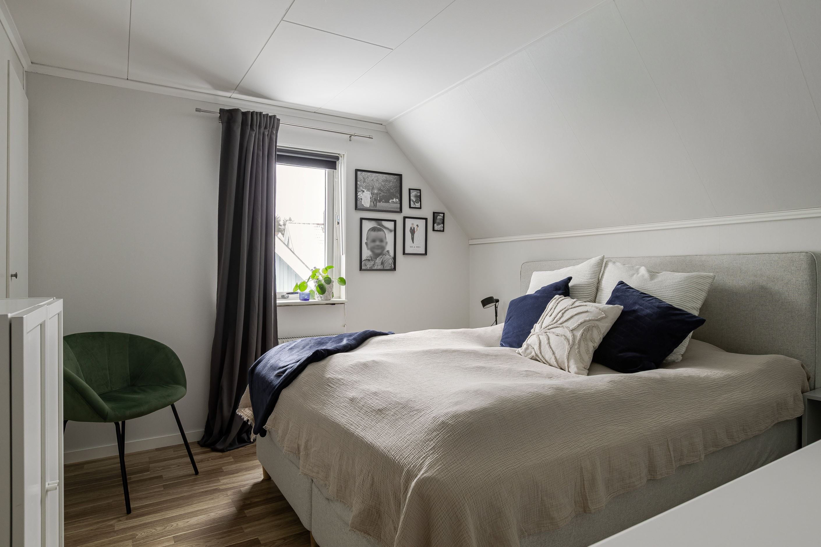 På övre plan finns tre ljusa och rymliga sovrum samt ett renoverat badrum utrustat med badkar, kommod, wc och takfönster som ger ett härligt ljusinsläpp.