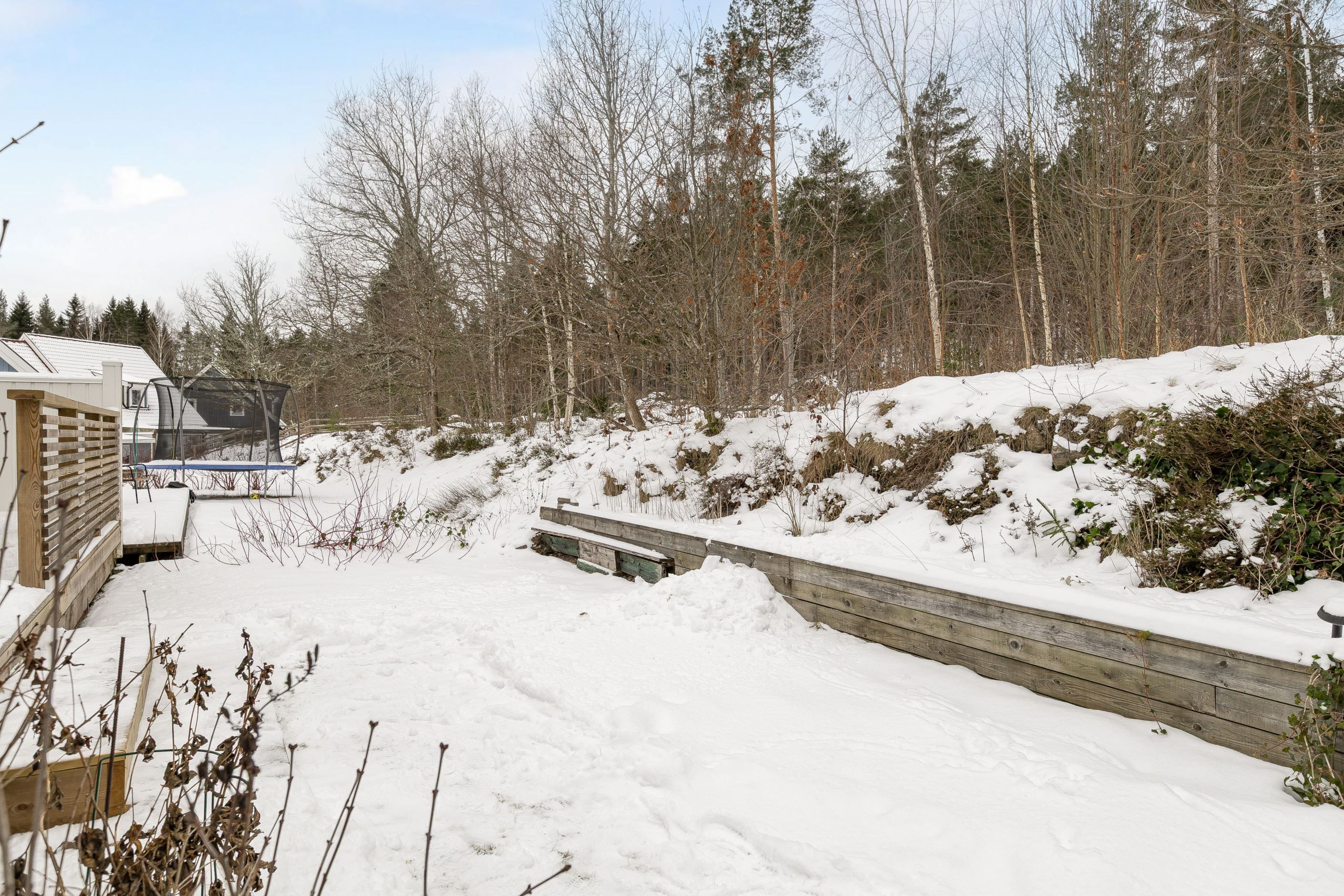 Uteplatser i flera väderstreck gör att du kan njuta av solen under hela dagen. På tomten finns ett fristående förråd samt garage i länga. Ett mycket välskött och renoverat hus med goda förvaringsmöjligheter.