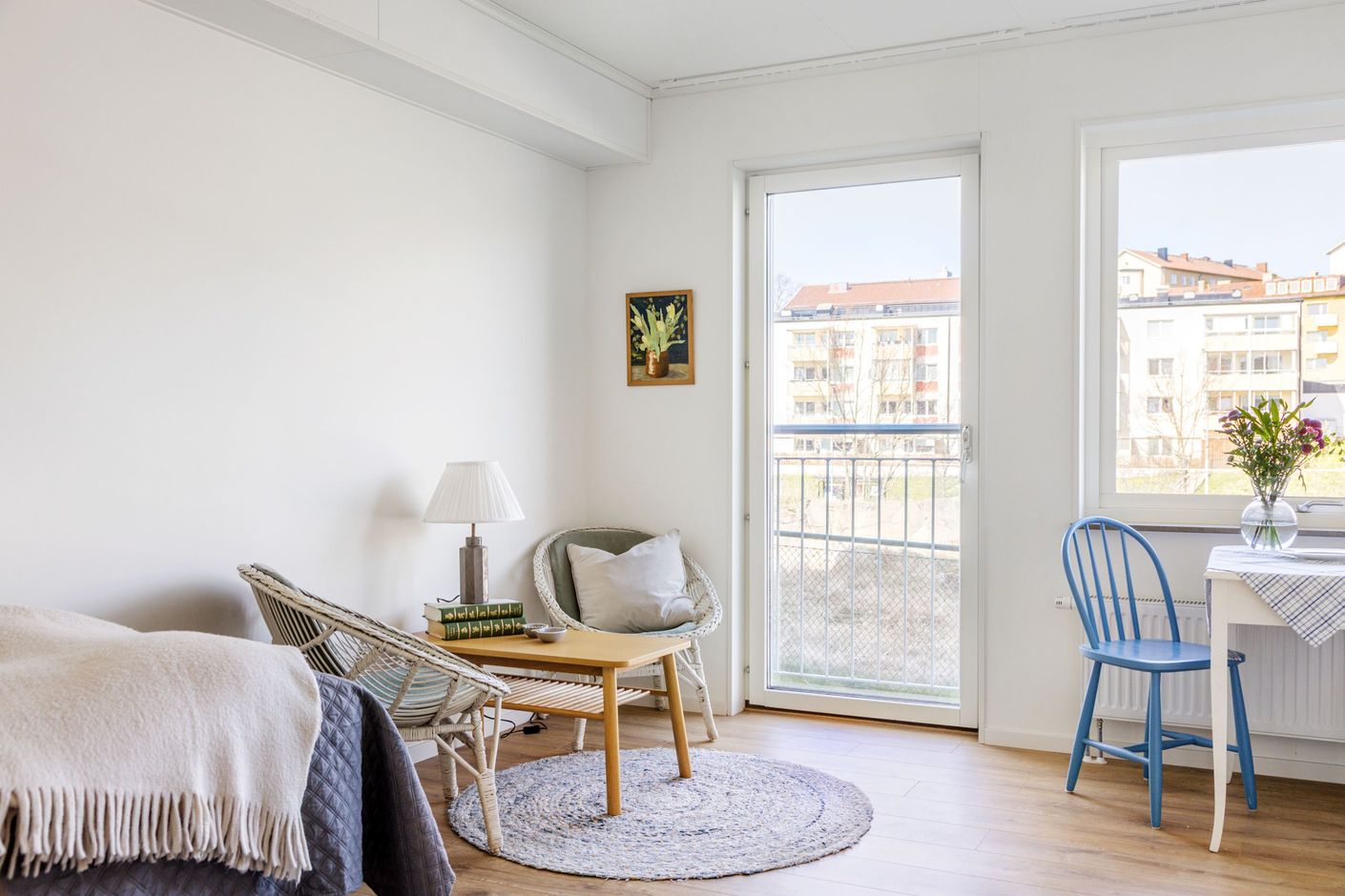 Välplanerad etta med kök, vardagsrum med fransk balkong och WC/Dusch med tvättmaskin. Huset stod färdigt 2018 och lägenheten är därför i fortsatt bra skick. Lägenheten är helt insynsskyddad och har fönster som vetter mot grönområde med utsikt. Vid entrén till lägenheten finns en loftgång där man kan ha en liten uteplats om man önskar. Bekvämt boende med parkering och närhet till så väl city som Pantarholmen och högskolan!