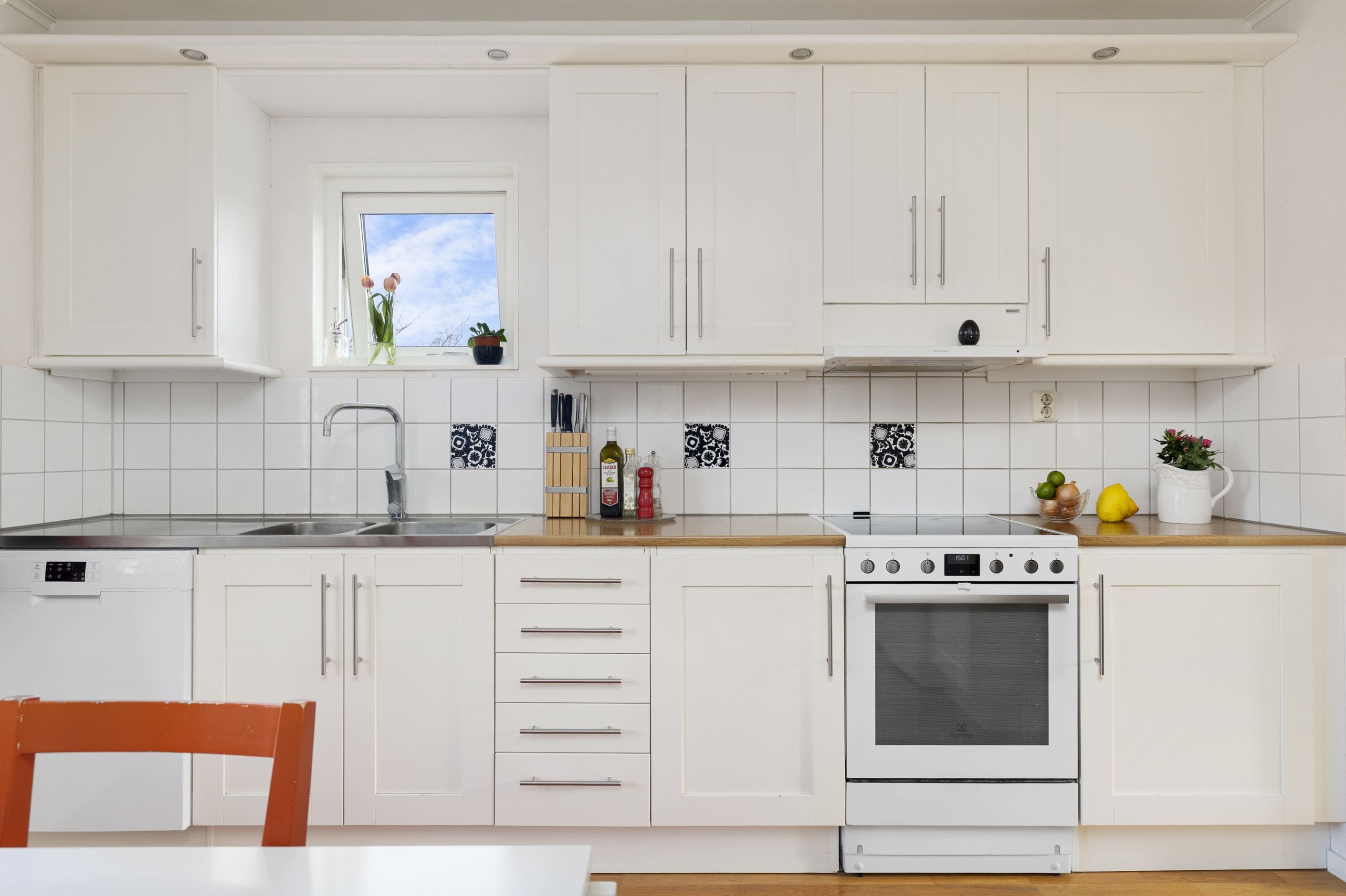 Köket är hemmets hjärta som är praktiskt utformat med goda arbetsytor och förvaring, samtidigt som det erbjuder en naturlig samlingspunkt. Här kan du laga mat medan du fortfarande är en del av samtalet. Intill ligger matplatsen som rymmer större sällskap och bjuder på en trivsam vy mot den grönskande omgivningen.