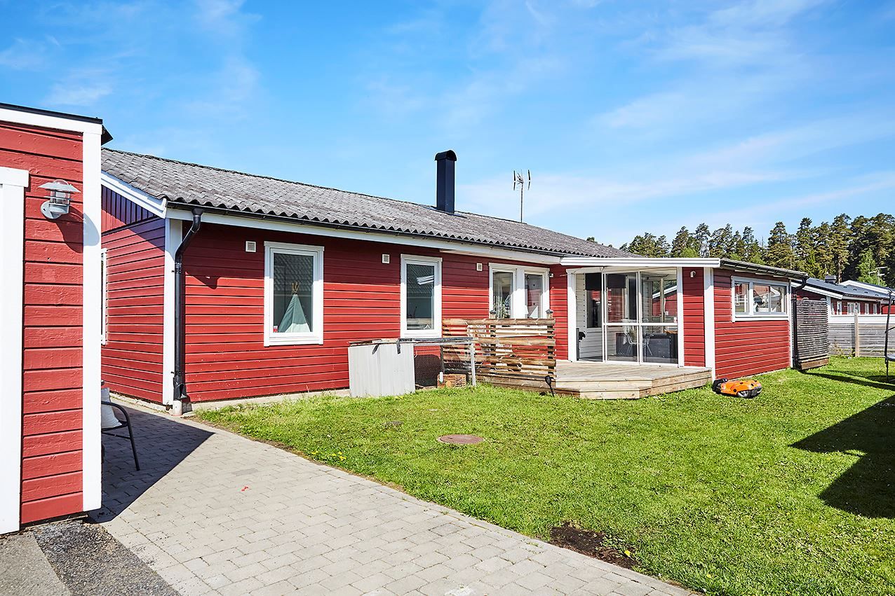Från vardagsrummet når du ett större inglasat uterum och ett trevligt soldäck som sträcker sig runt gaveln. Trädgården är perfekt för barnaspring och utedäcket går att inreda med många sittgrupper. Insynsskyddat bakom häcken och stilrena staketet som sträcker sig längs tomten och här finns plats för fler odlingslådor för dig med gröna fingrar. Endast fantasin kan sätta gränser i denna underbara trädgård.