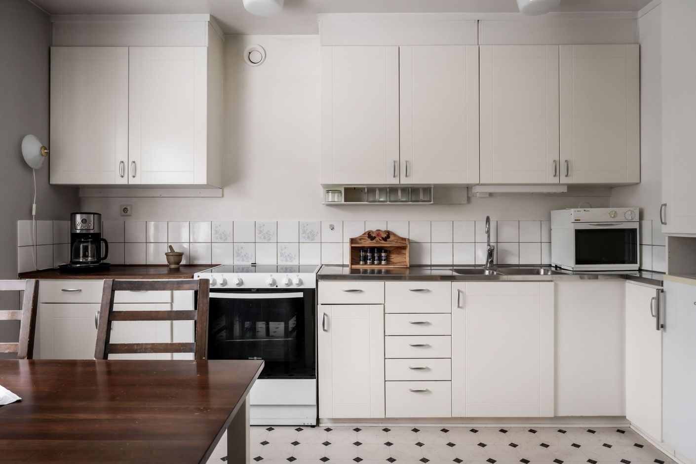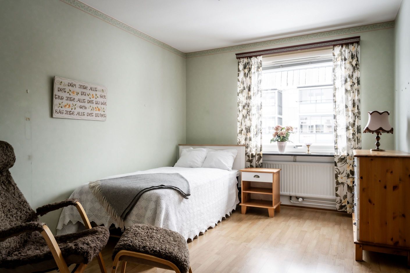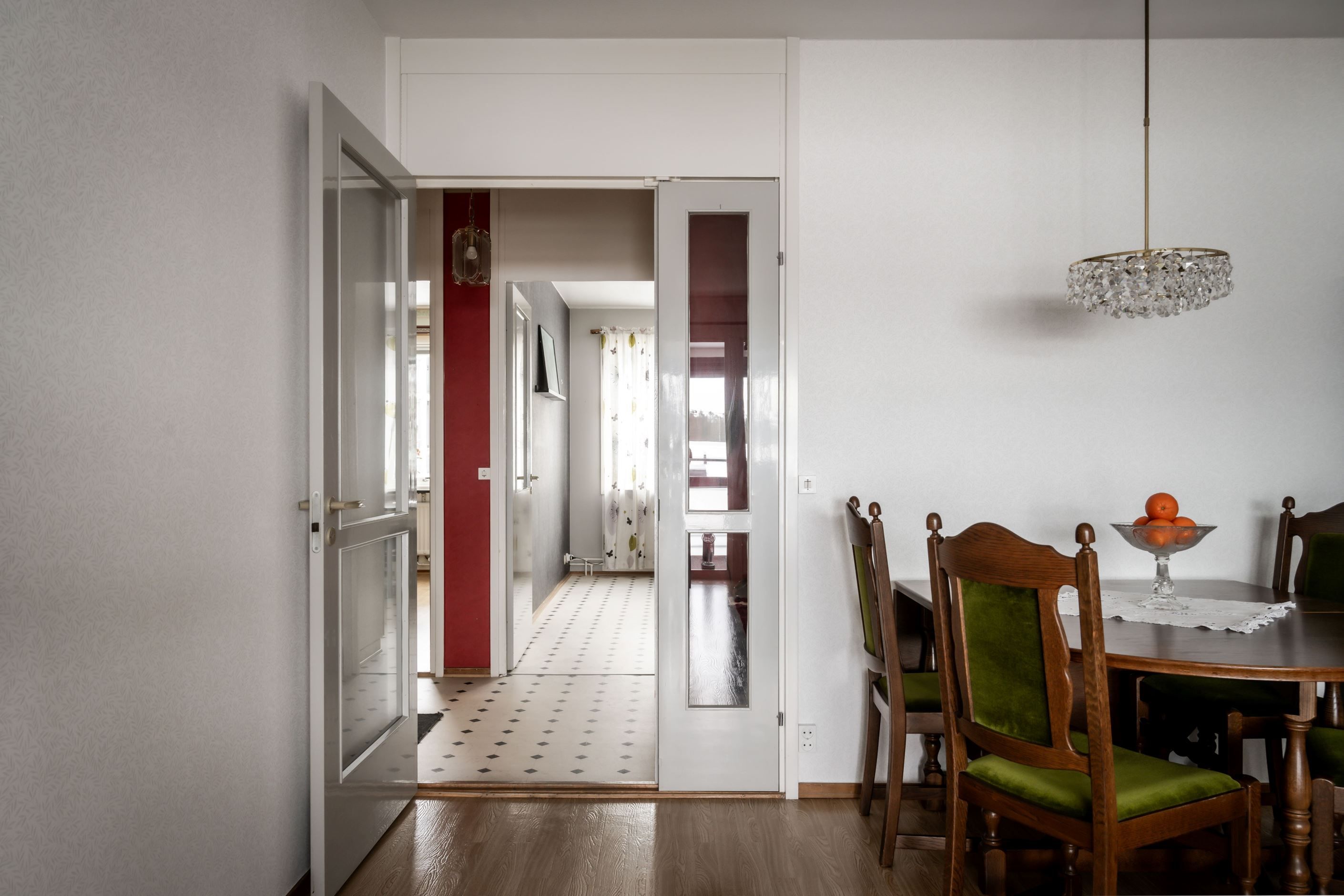 Golv, ytskikt och köksinredning har delvis uppdaterats de senaste åren, samtidigt som bostaden bjuder in till möjligheten att sätta sin egen prägel.