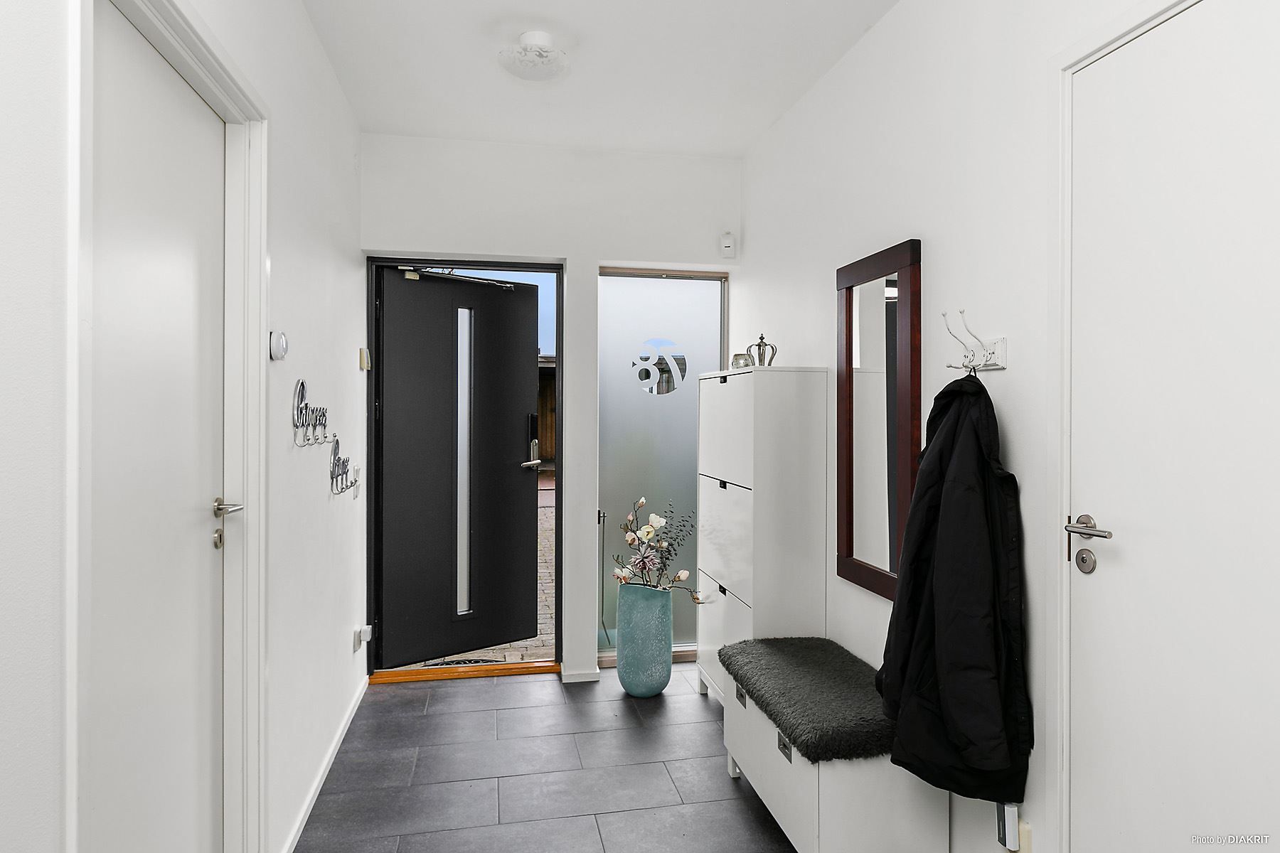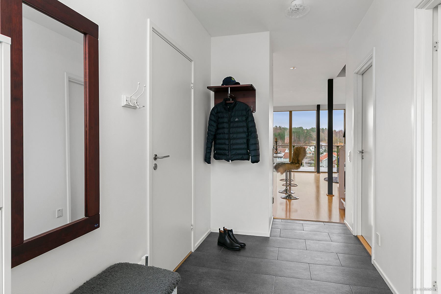Vi kliver in i en välkomnande hall med fantastiskt ljusinsläpp från de stora glaspartierna i kök och vardagsrum. Snygg och slitstarkt antracitgrått klinkergolv. Direkt till vänster om hallen finner vi helkaklat badrum med dusch. Tvättdel med tvättmaskin och torktumlare, Höger om hallen finner vi första plans sovrum som passar perfekt även som hemma kontor. Ljust och fint kök och vardagsrum med utgång till väl tilltagen balkong med underbar förmiddagssol och med fin utsikt. Nytt HTH-Kök från 2022, stilfullt och snyggt med praktisk köksö. Plan två bjuder på två sovrum och ett väl tilltaget allrum. Helkaklat badrum med hörnbadkar och dusch. Topfloor med vidunderlig utsikt, idag inrett som sovrum men passar också bra som sällskapsrum för middagsbjudningar och fest. Väl tilltagen takterrass, där både loungesoffan och matbord får plats.