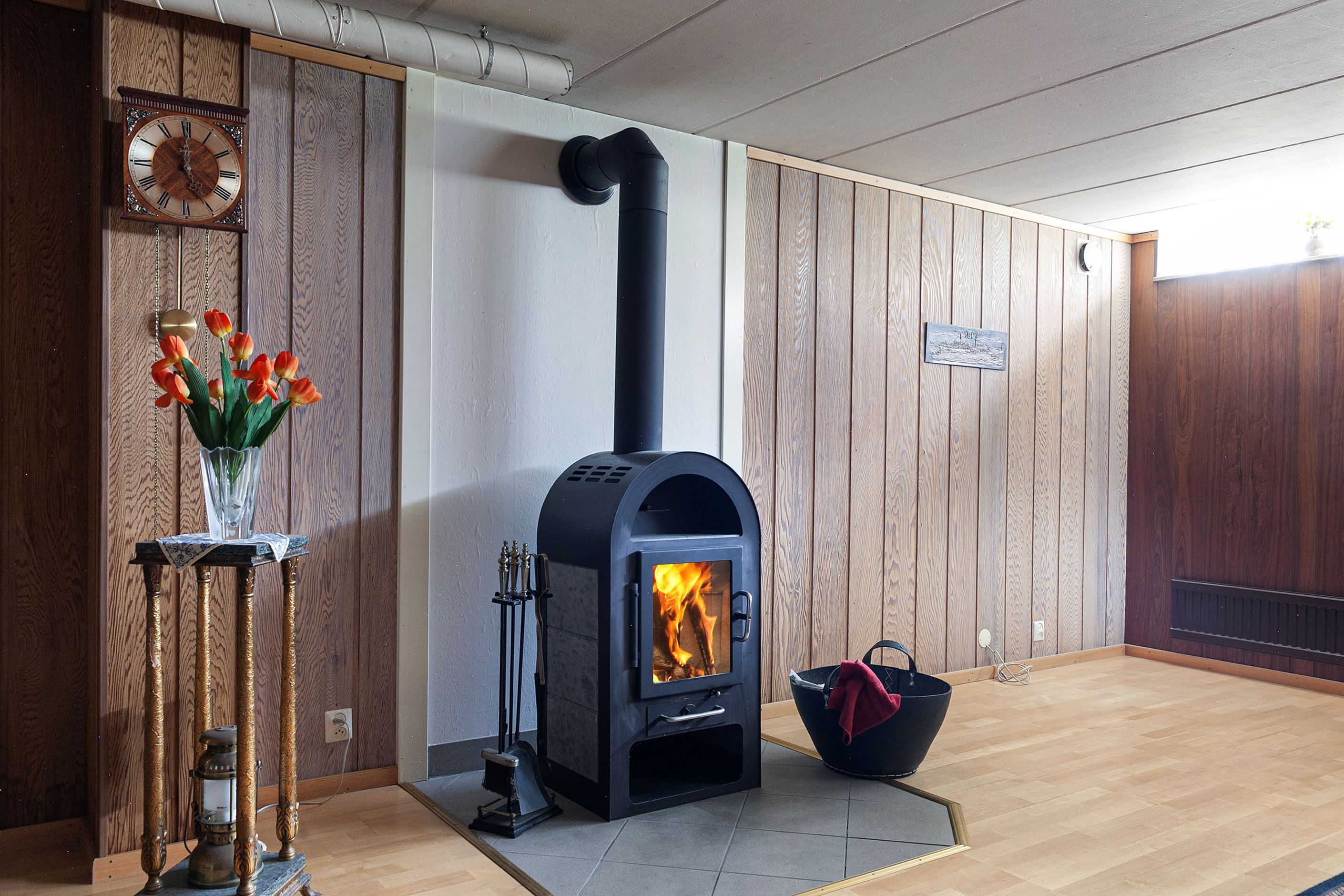 Uppvärmningen sker via fjärrvärme, kompletterat med luft/luft-värmepump och kamin, vilket ger flexibla lösningar året runt.