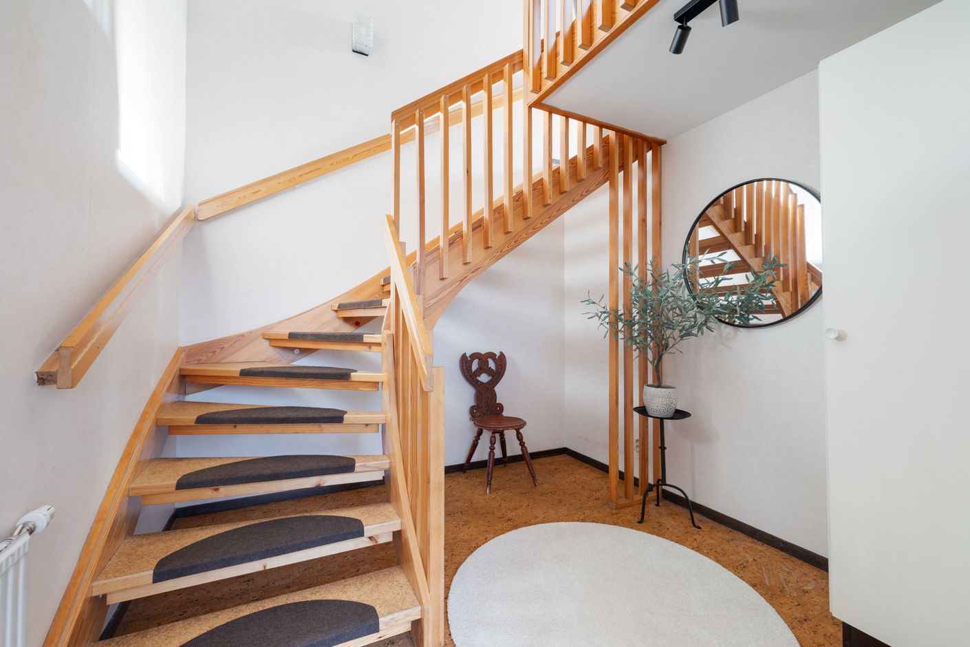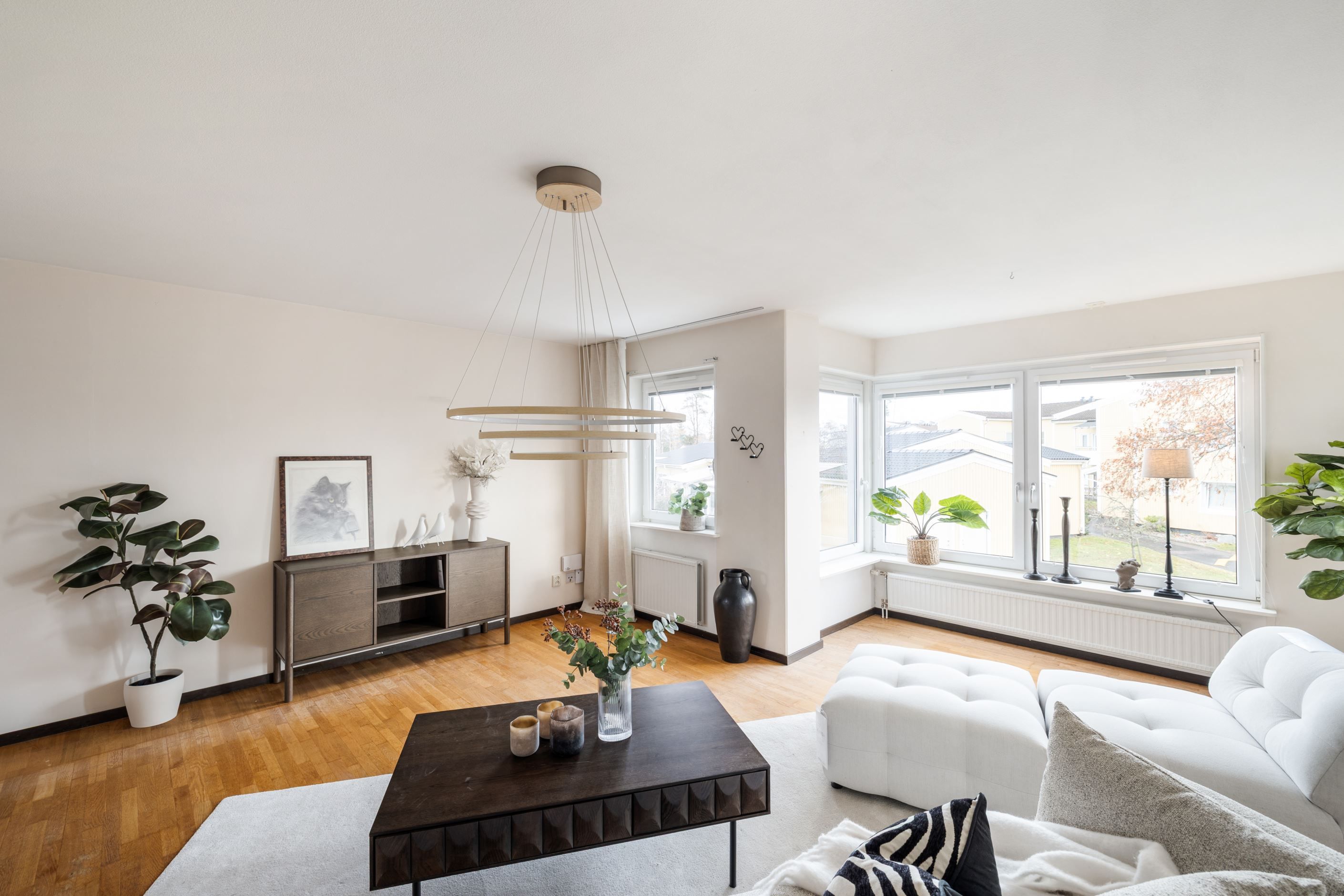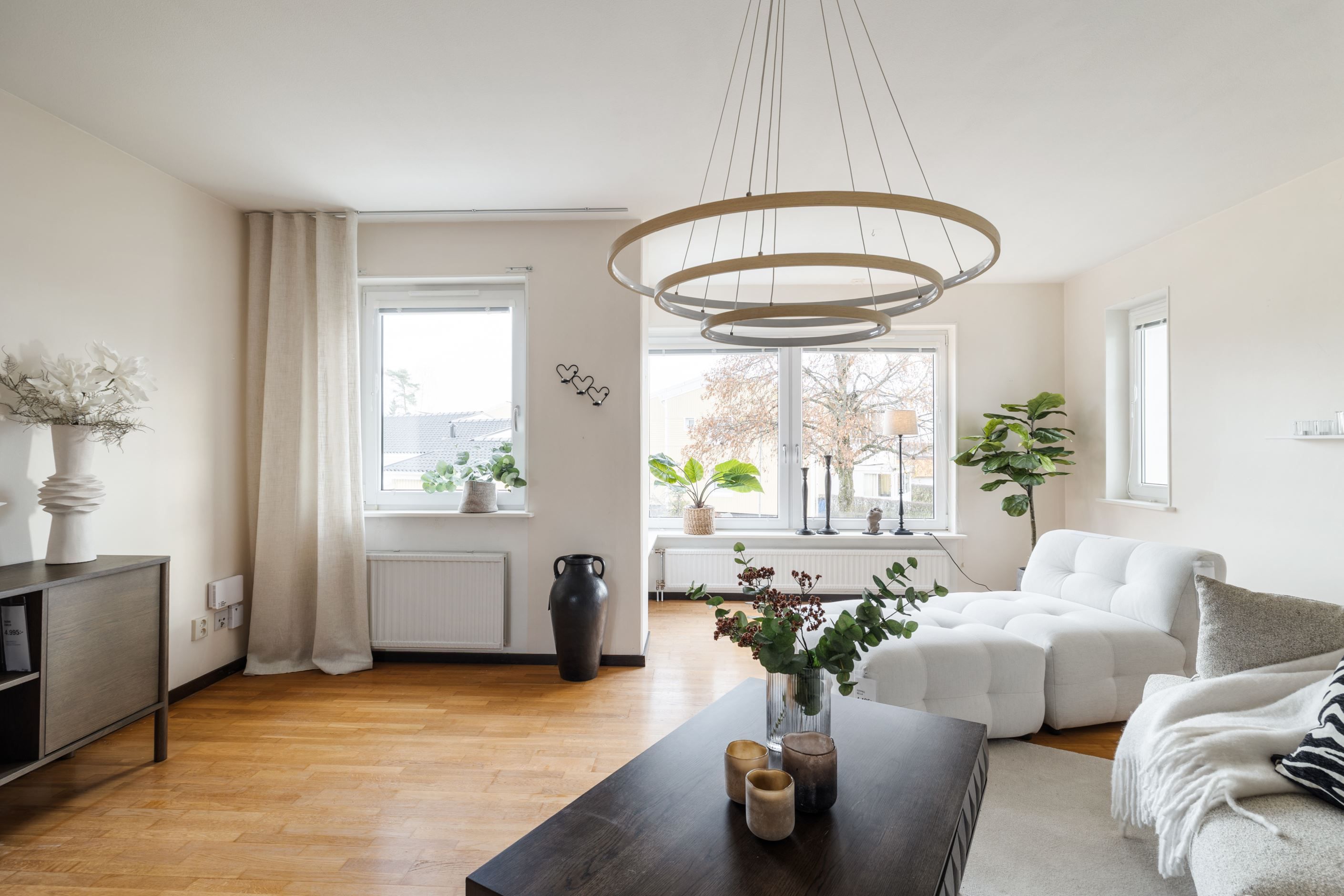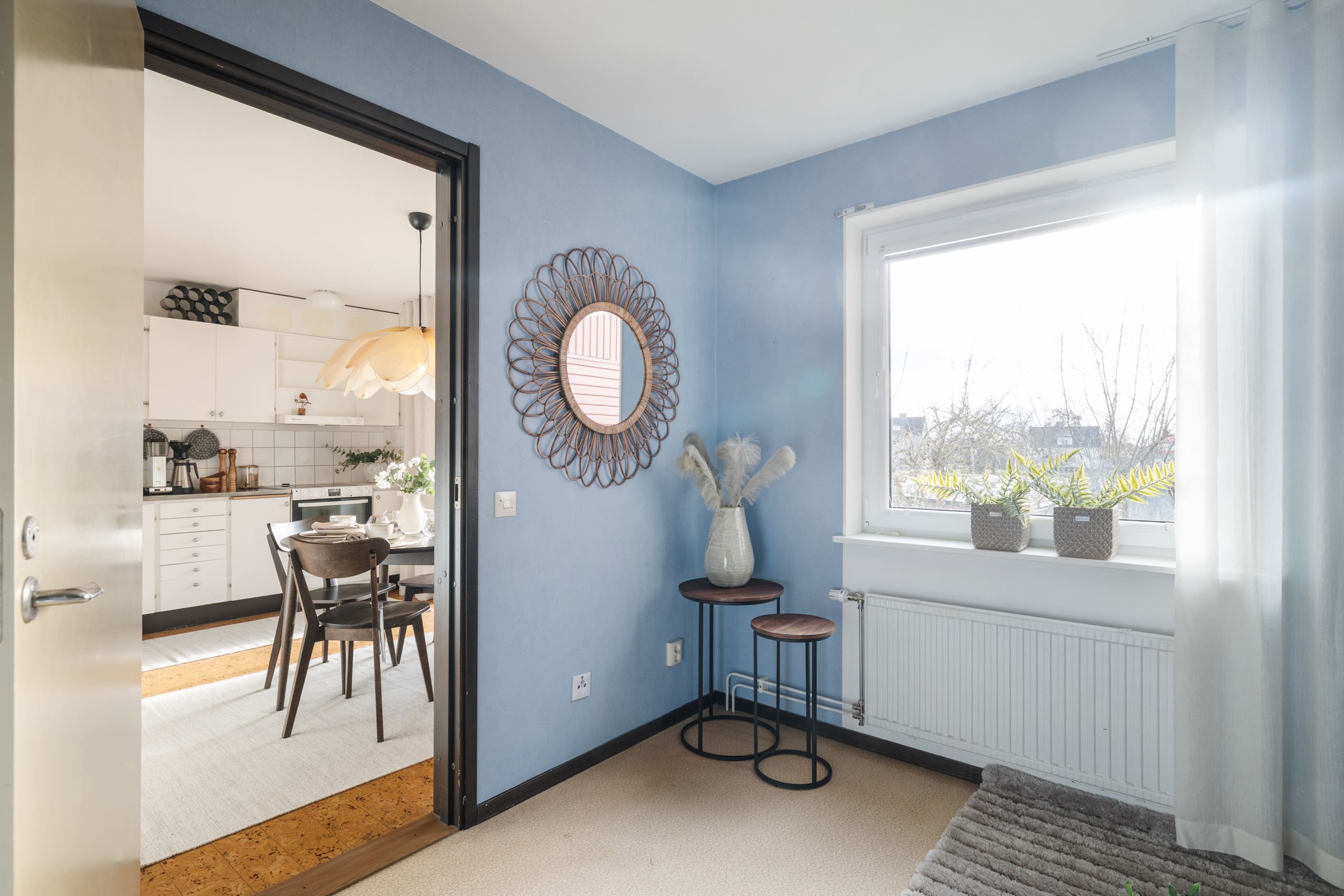 Här bor du med entré och avhängning på bottenplan – perfekt för att slippa smuts och stök i bostaden – medan själva lägenheten ligger en trappa upp och erbjuder ett harmoniskt och hemtrevligt boende.