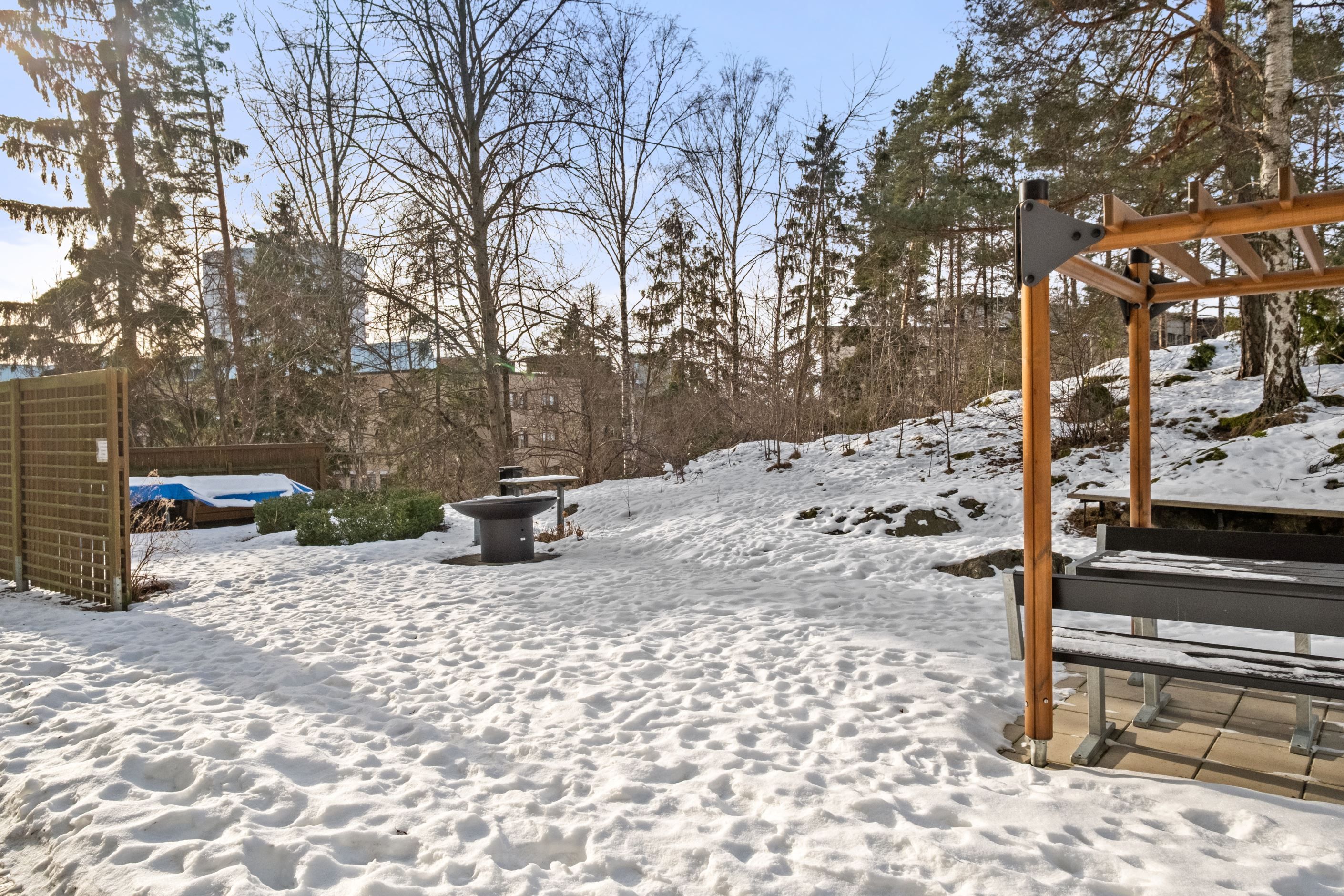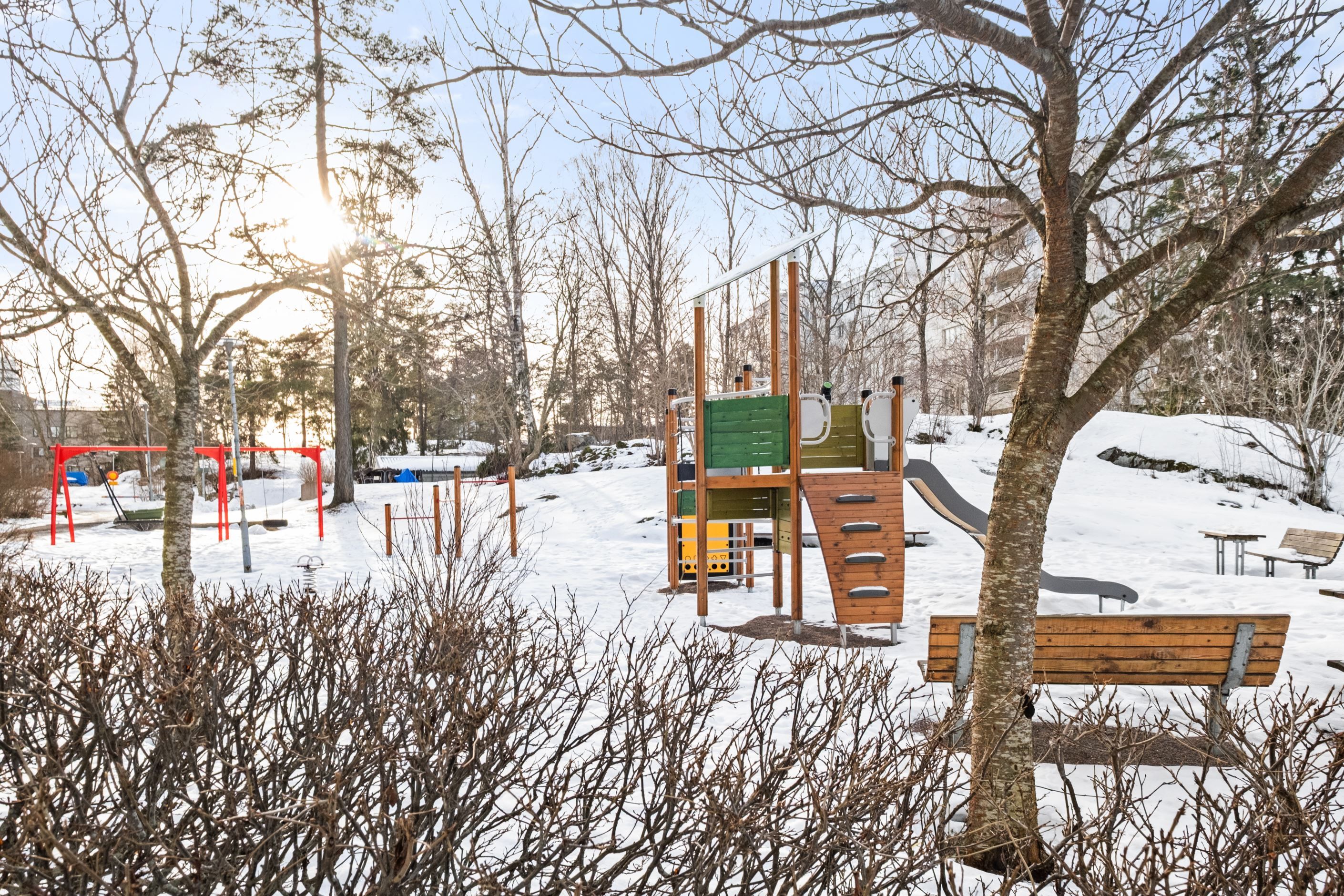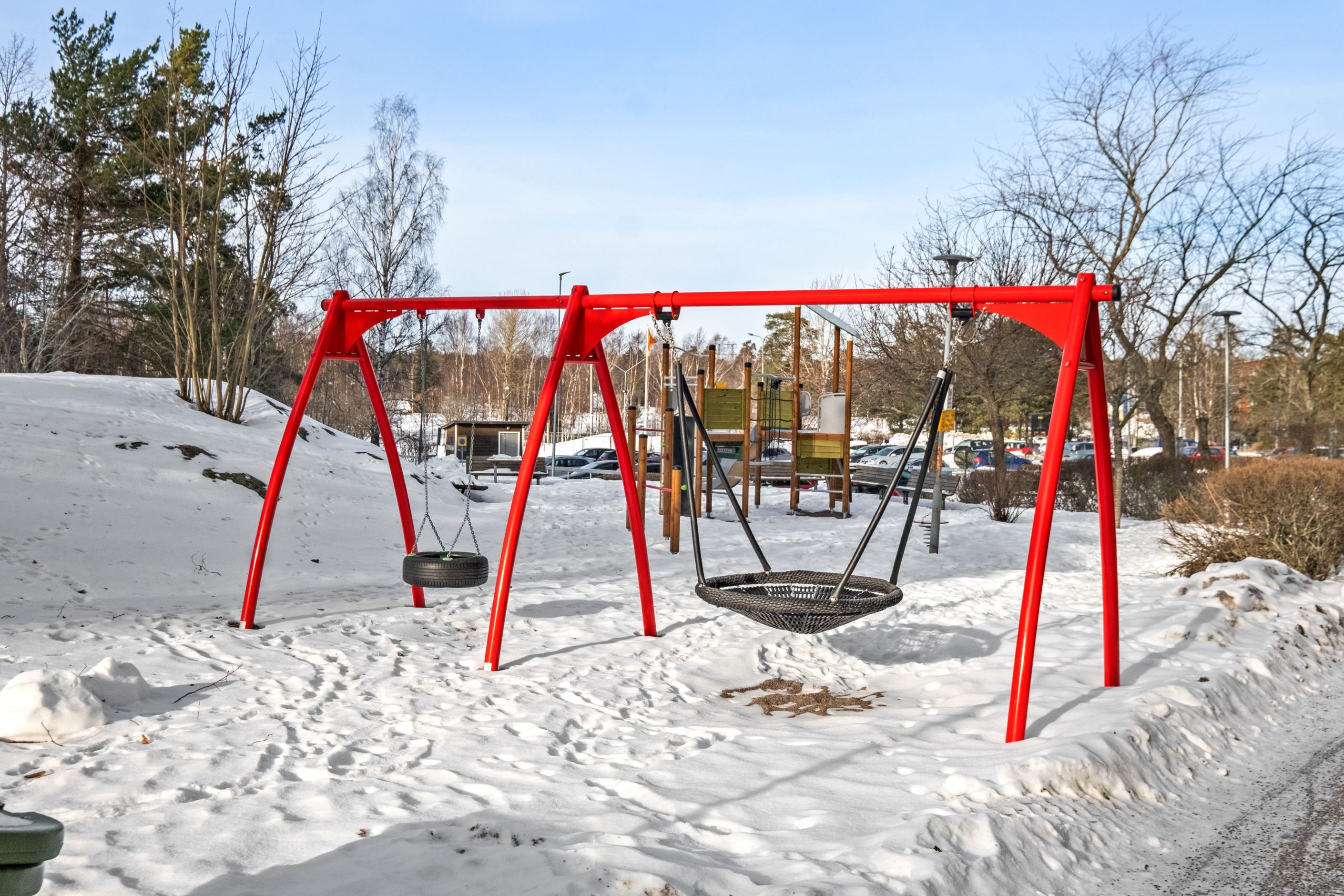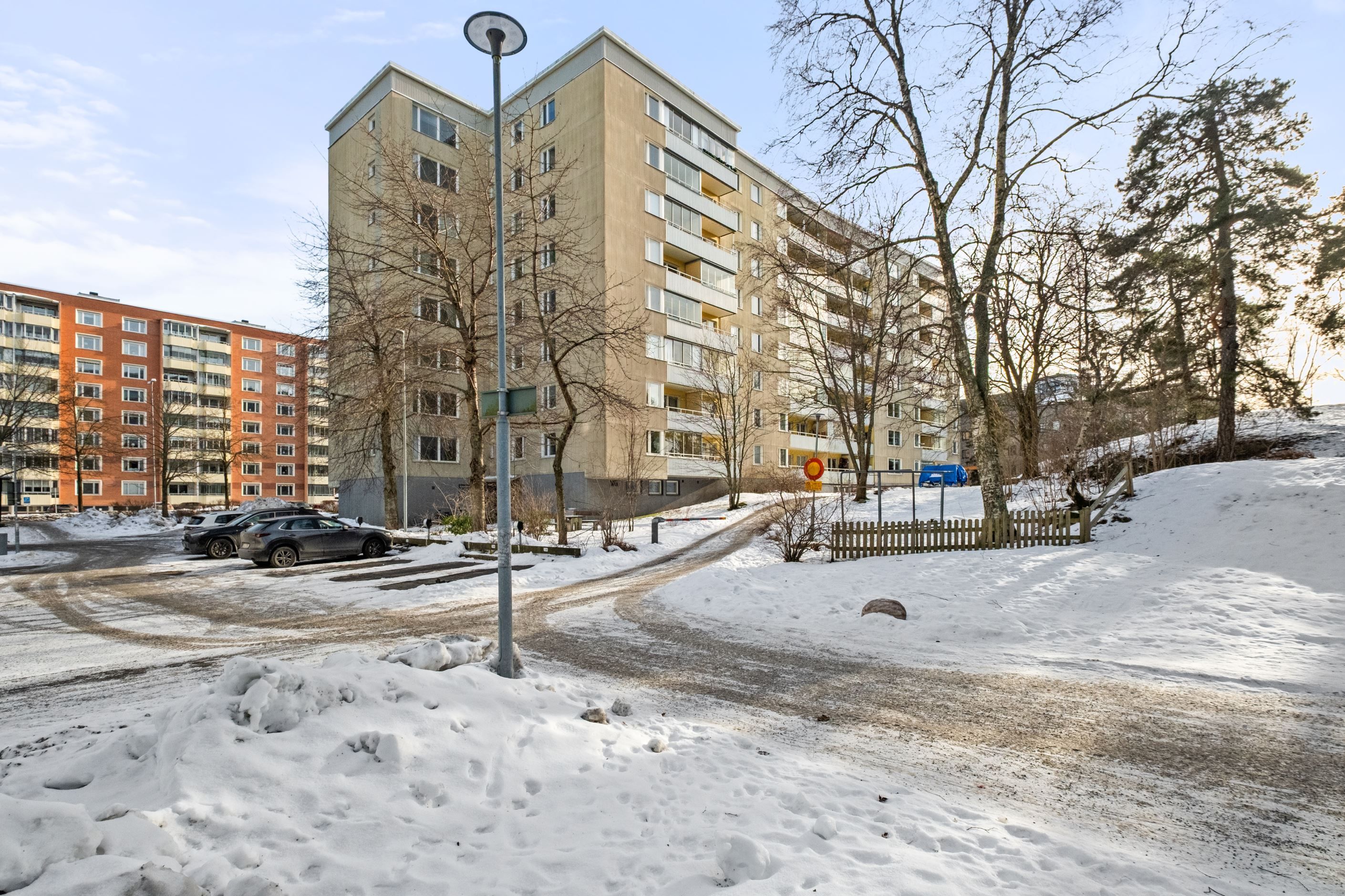 Läget är svårslaget med Tyresö Centrum på kort gångavstånd med butiker, restauranger, gym och all tänkbar service. Busshållplats finns i direkt närhet med smidig kommunikation mot Gullmarsplan och Stockholm city, samtidigt som natur och grönområden finns runt knuten för promenader och friluftsliv.