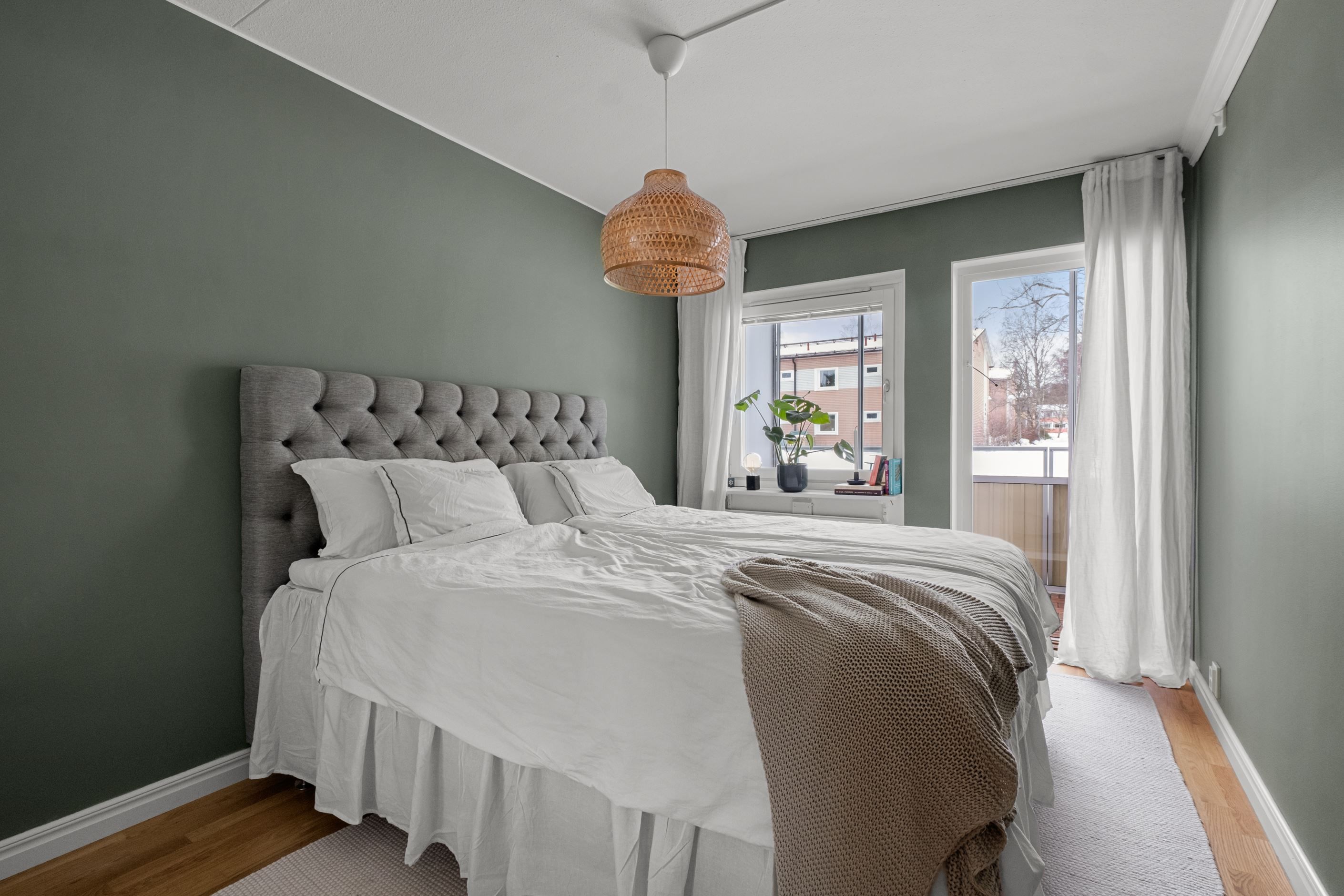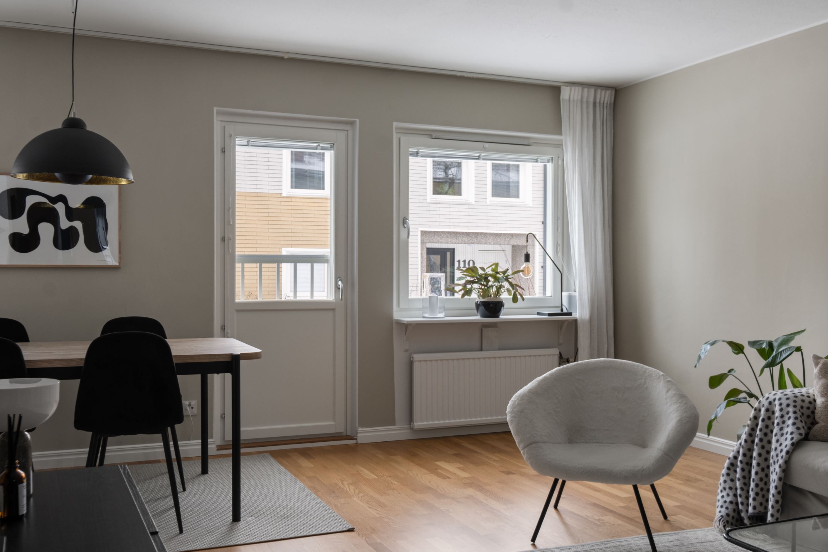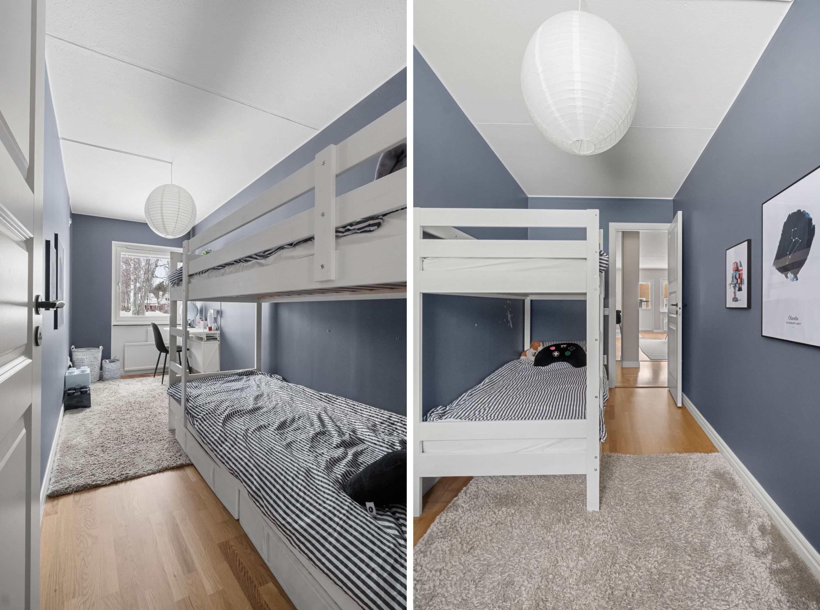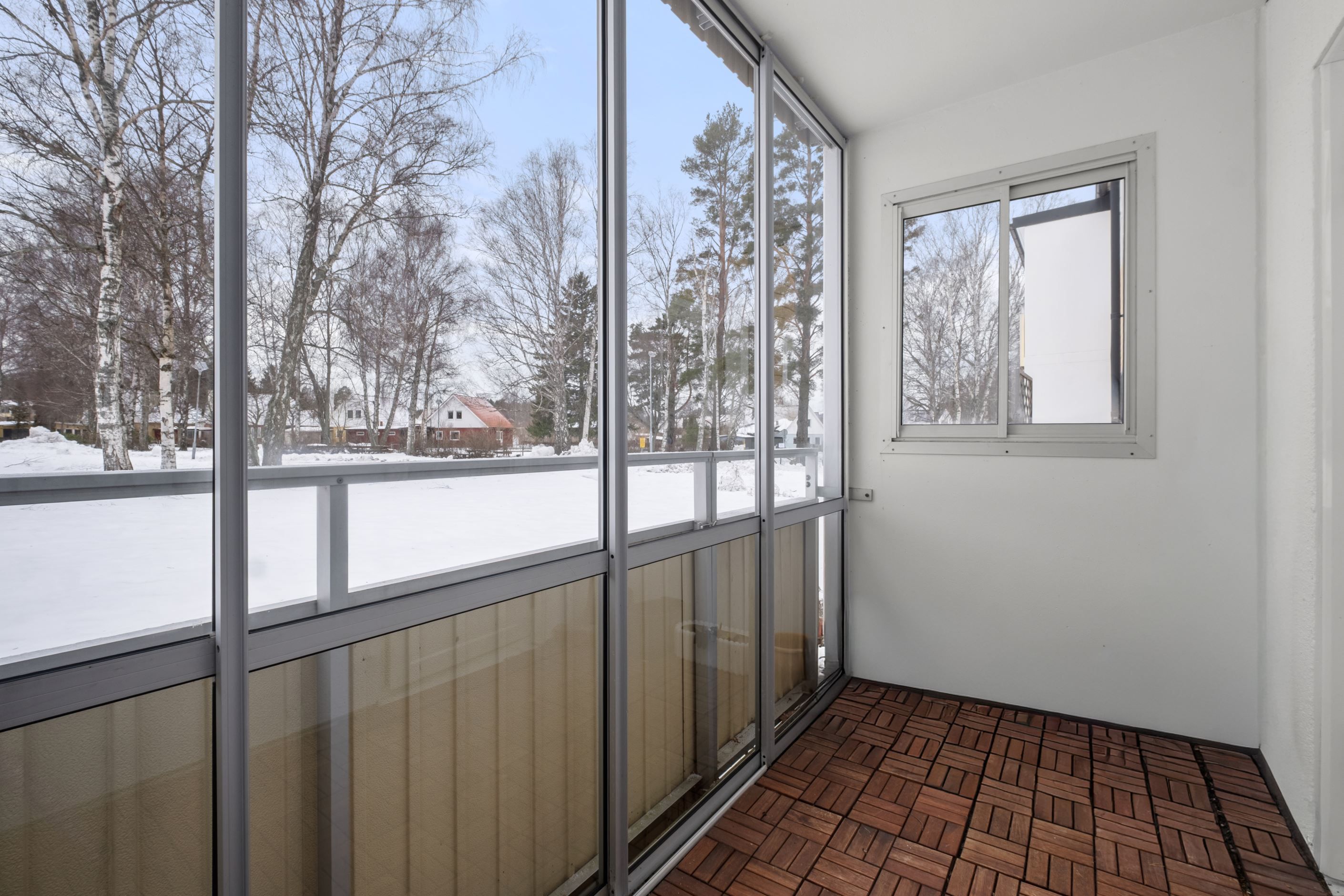 Bostaden disponerar två sovrum, varav ett större med gott om plats för dubbelsäng och utgång till den inglasade balkongen. Balkongen är rymlig och inglasad och har grind/utgång vidare till uteplatsen och föreningens gräsytor – perfekt för dig som vill kunna röra dig smidigt mellan inne- och utemiljö.