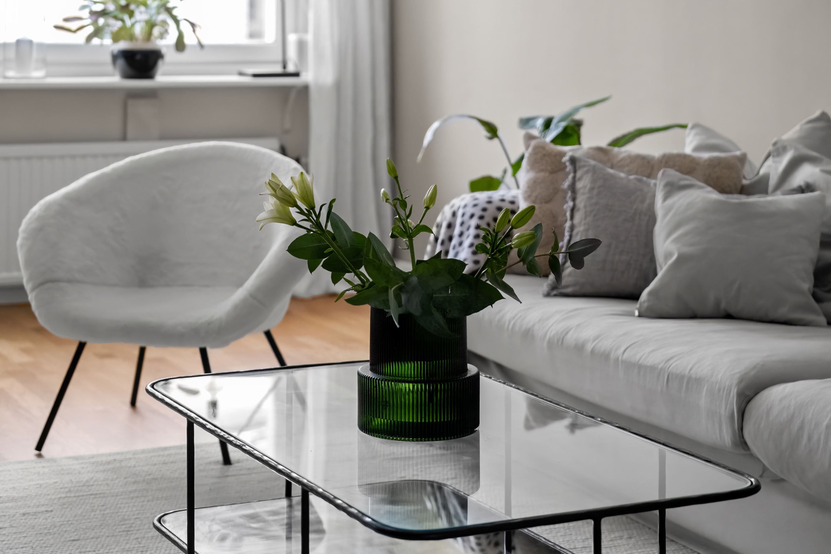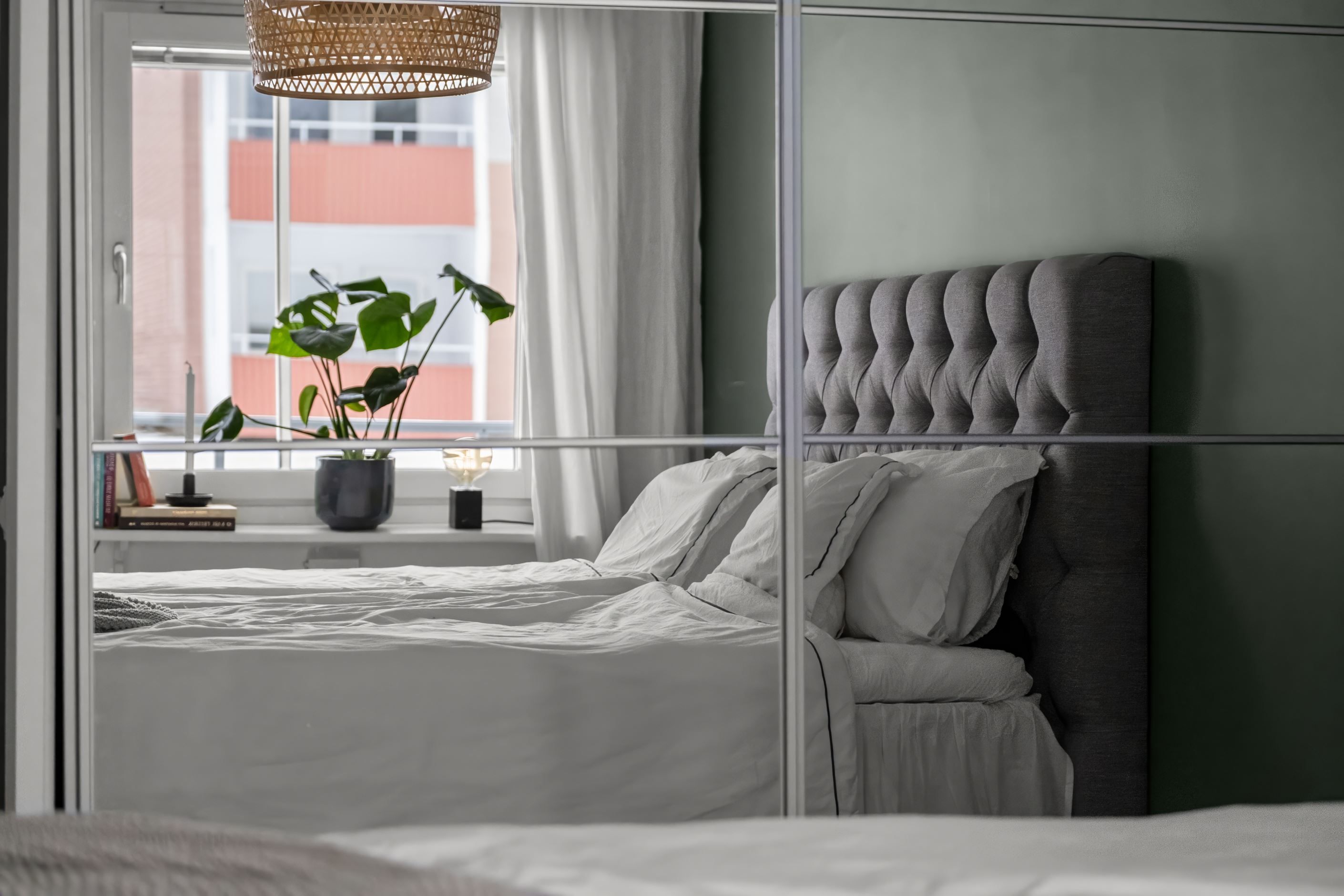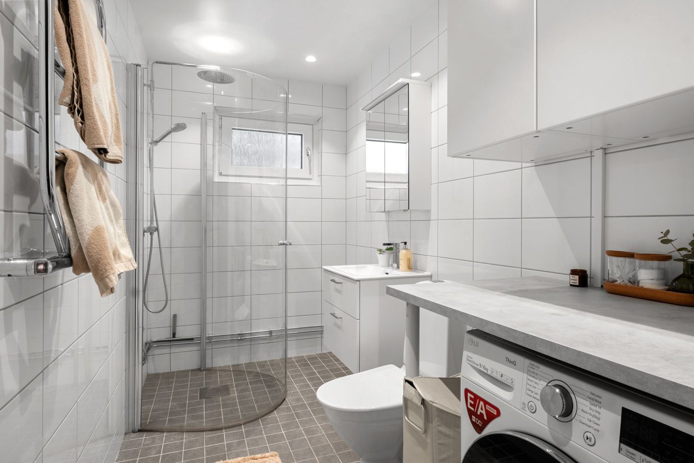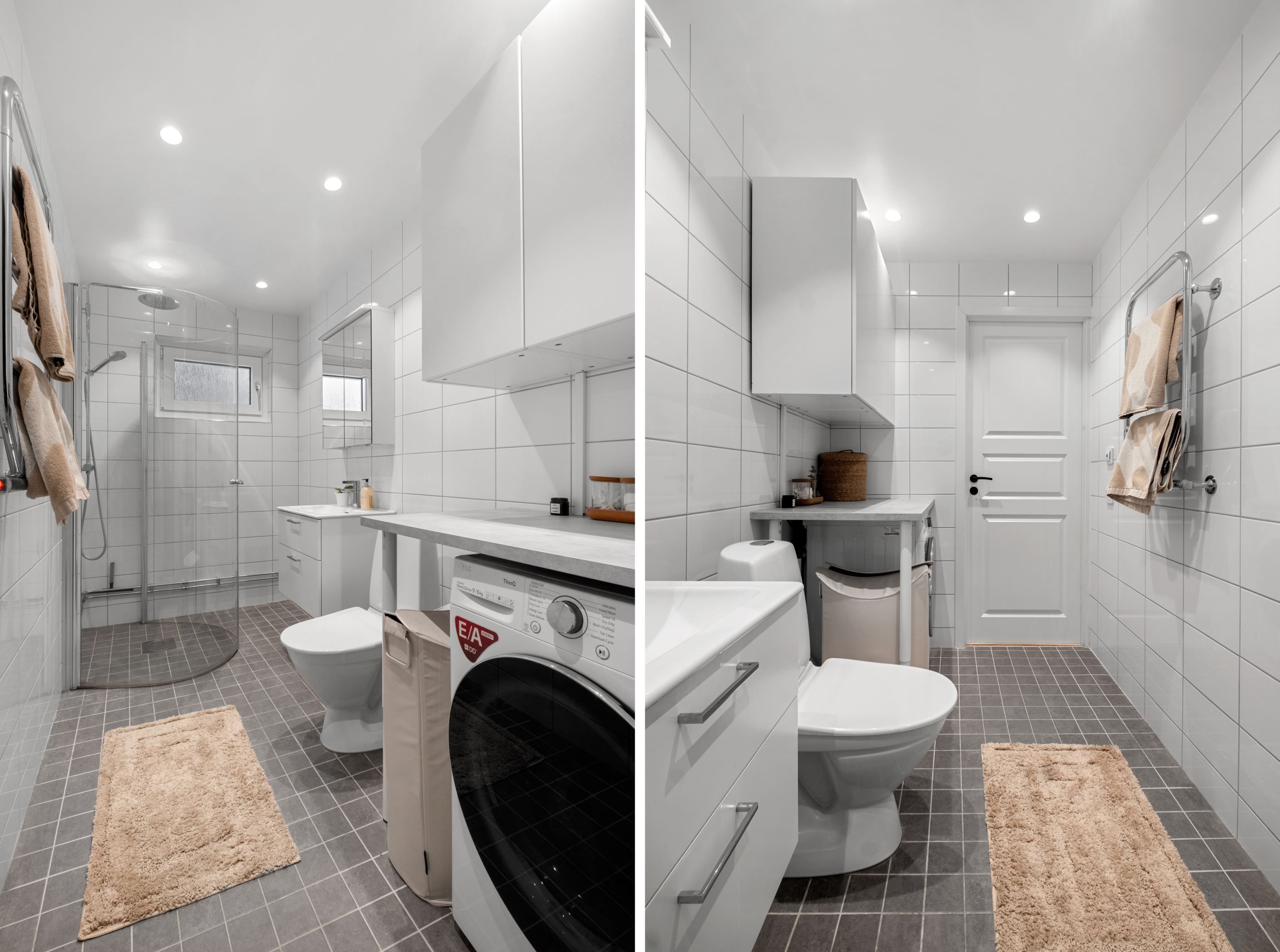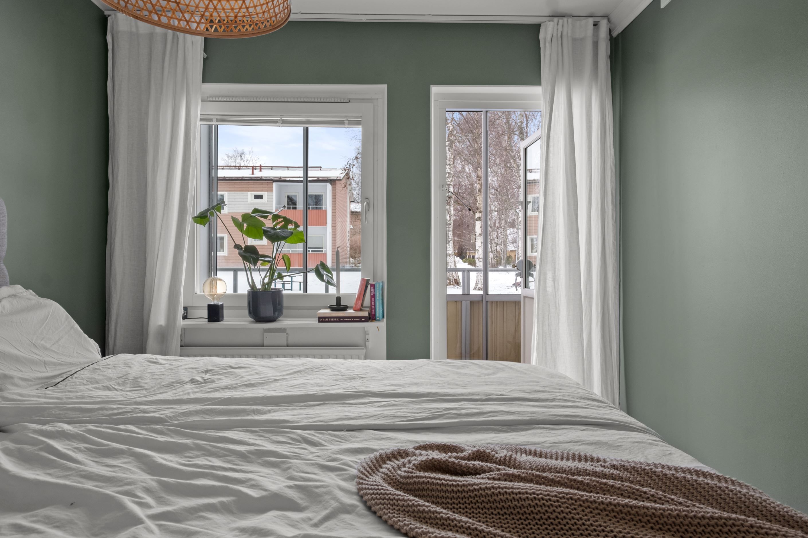 Bostaden disponerar två sovrum, varav ett större med gott om plats för dubbelsäng och utgång till den inglasade balkongen. Balkongen är rymlig och inglasad och har grind/utgång vidare till uteplatsen och föreningens gräsytor – perfekt för dig som vill kunna röra dig smidigt mellan inne- och utemiljö.