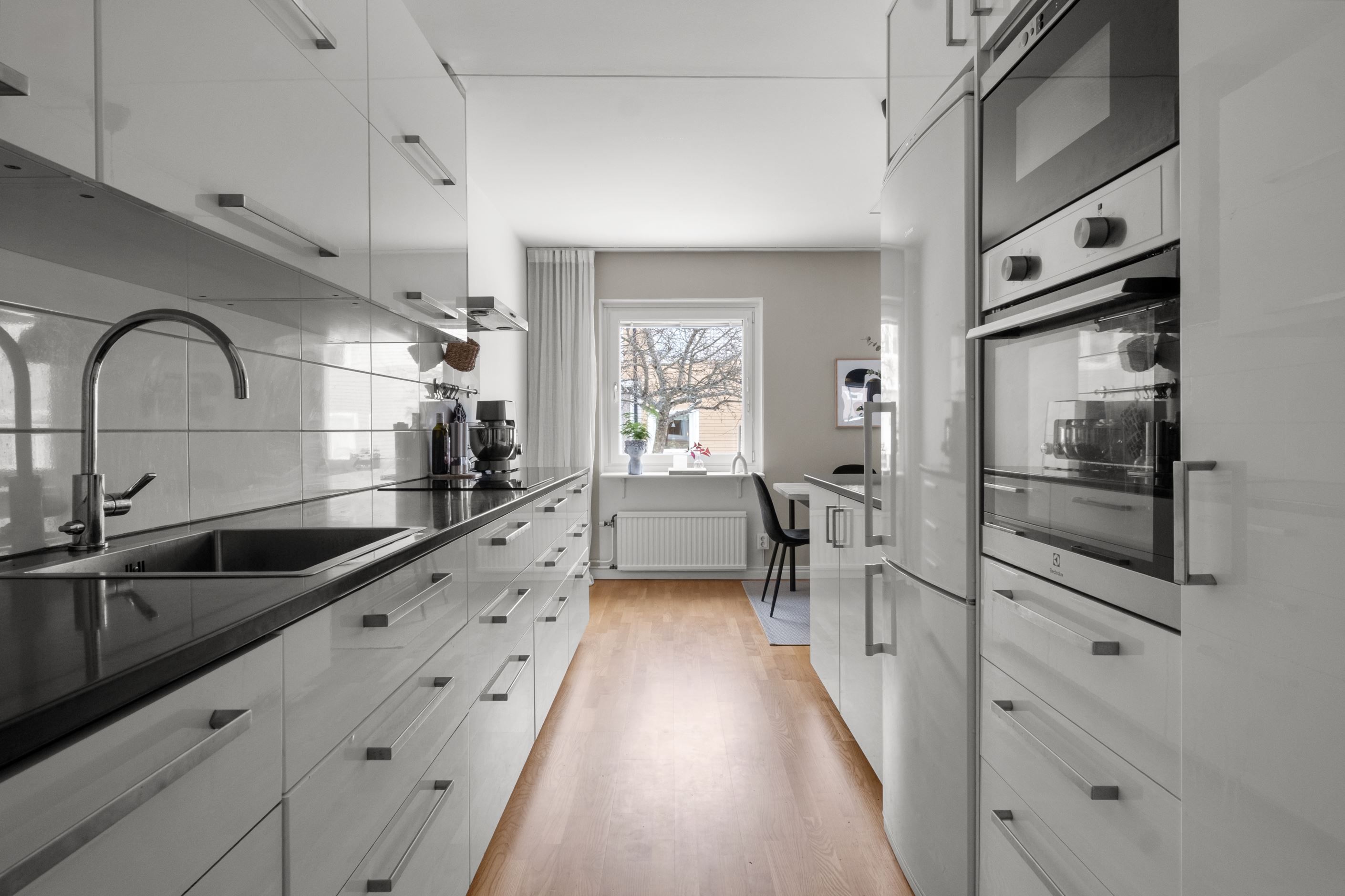 Här erbjuds ett hem i genomgående fint skick med ekparkett, nytt elegant kök och ett nytt helkaklat badrum – en kombination som ger både stil och komfort.