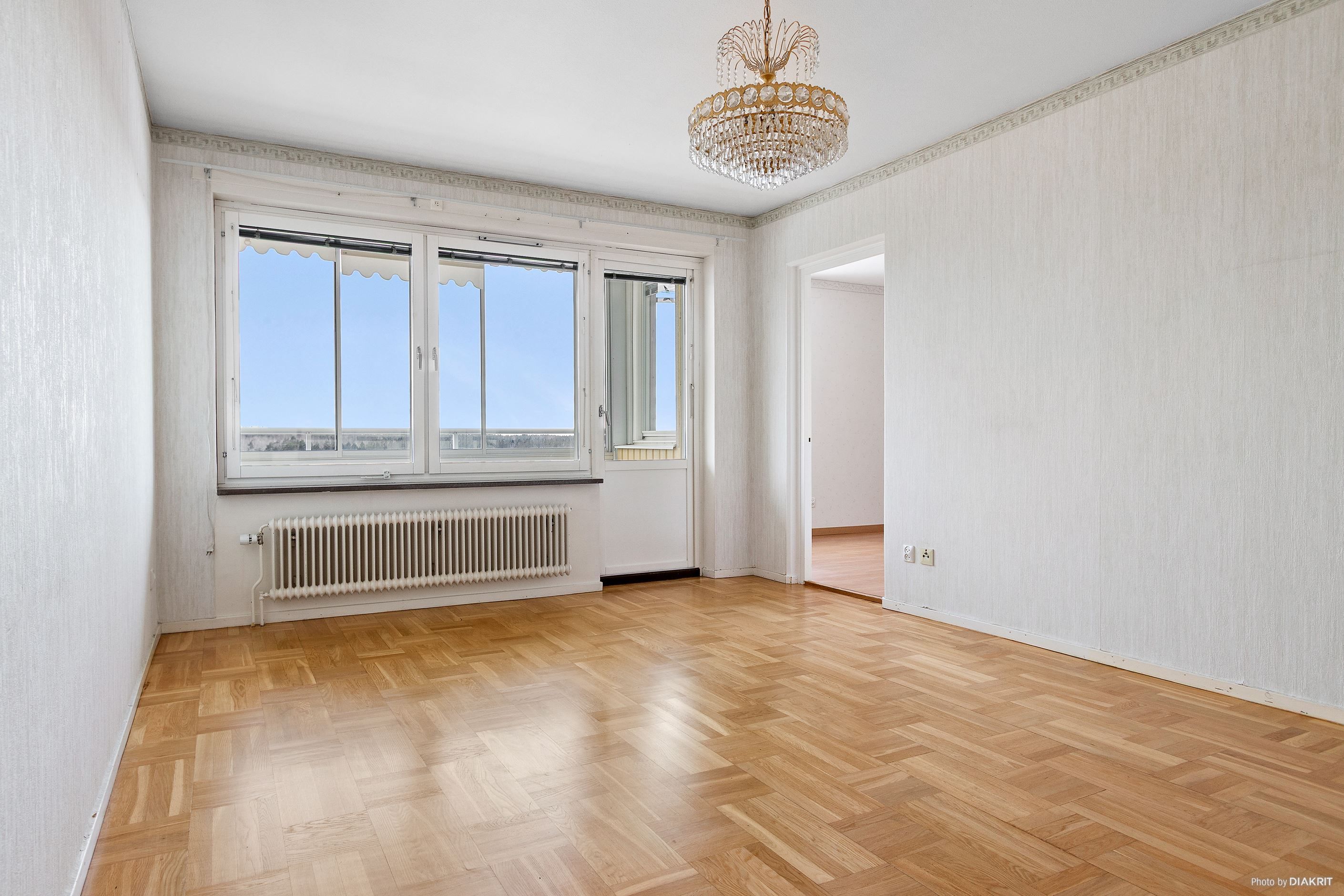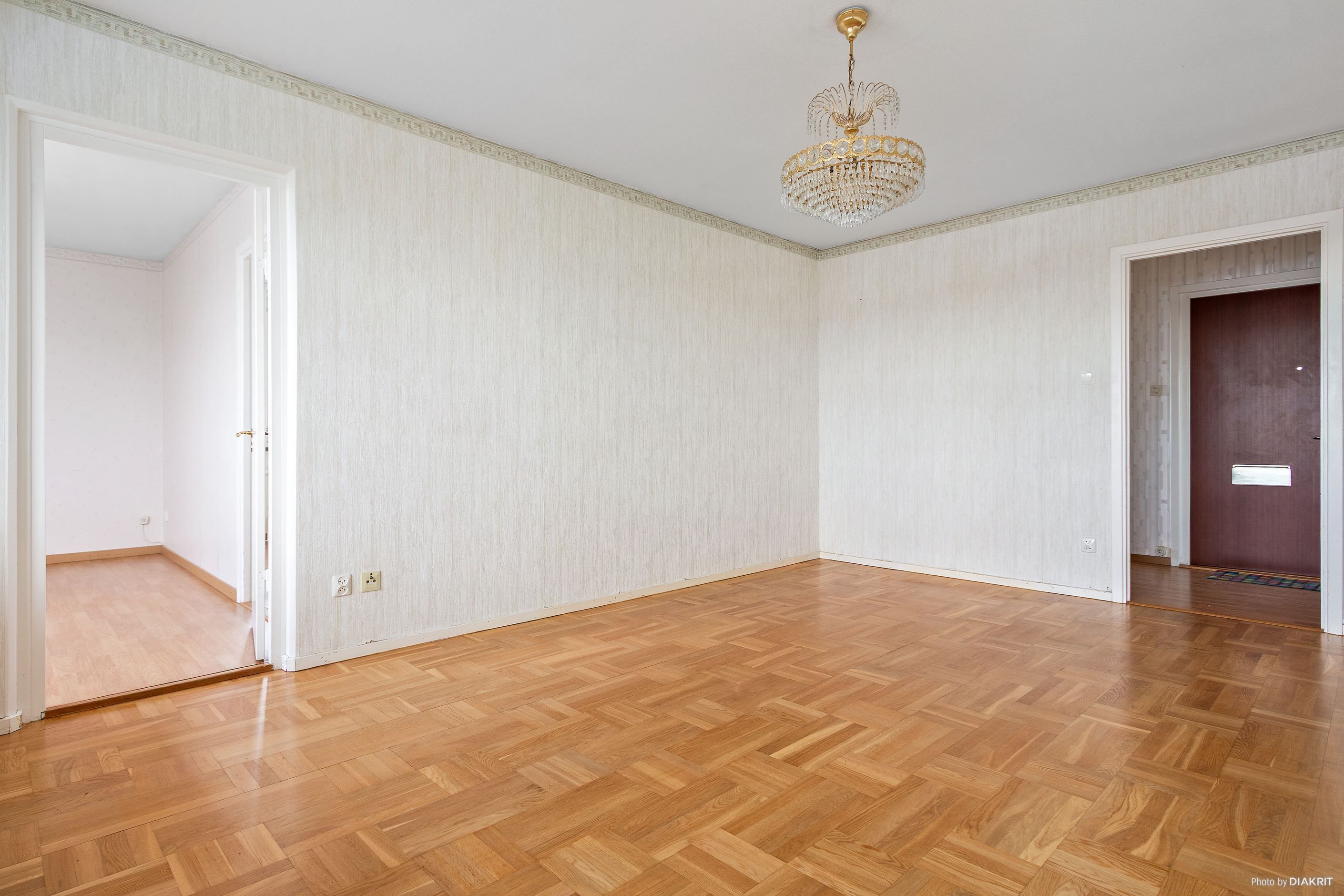Stort vardagsrum med gott om plats för soffgrupp och tv-möblemang. Från vardagsrummet finns även utgång till balkong.