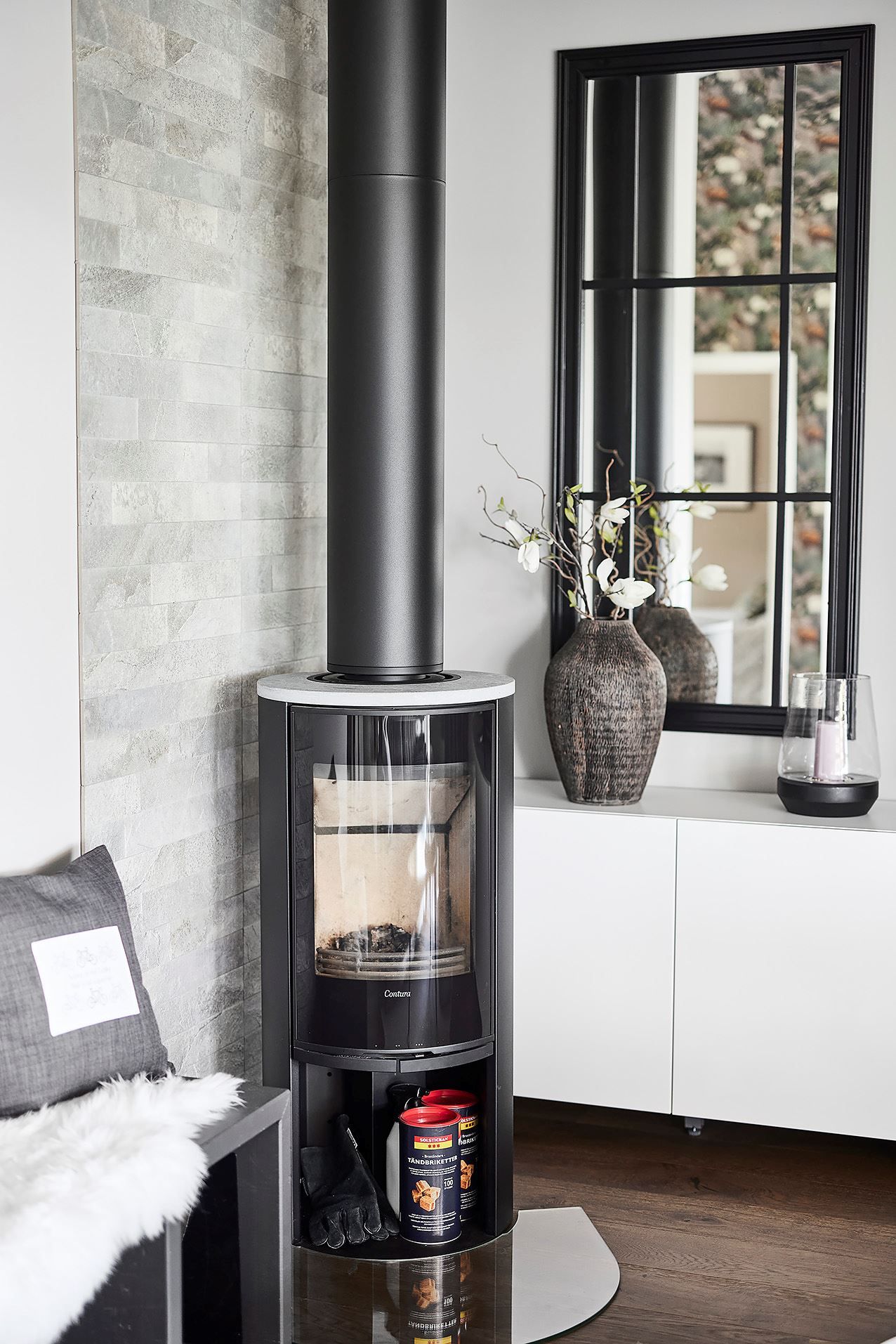 Huset har fyra sovrum och två badrum, perfekt för både familj och gäster. Den öppna planlösningen imponerar med en takhöjd på hela fyra meter, vilket skapar en luftig och ljus atmosfär. En mysig kamin blir hemmets naturliga samlingspunkt under kyliga kvällar och ger en varm och inbjudande känsla.