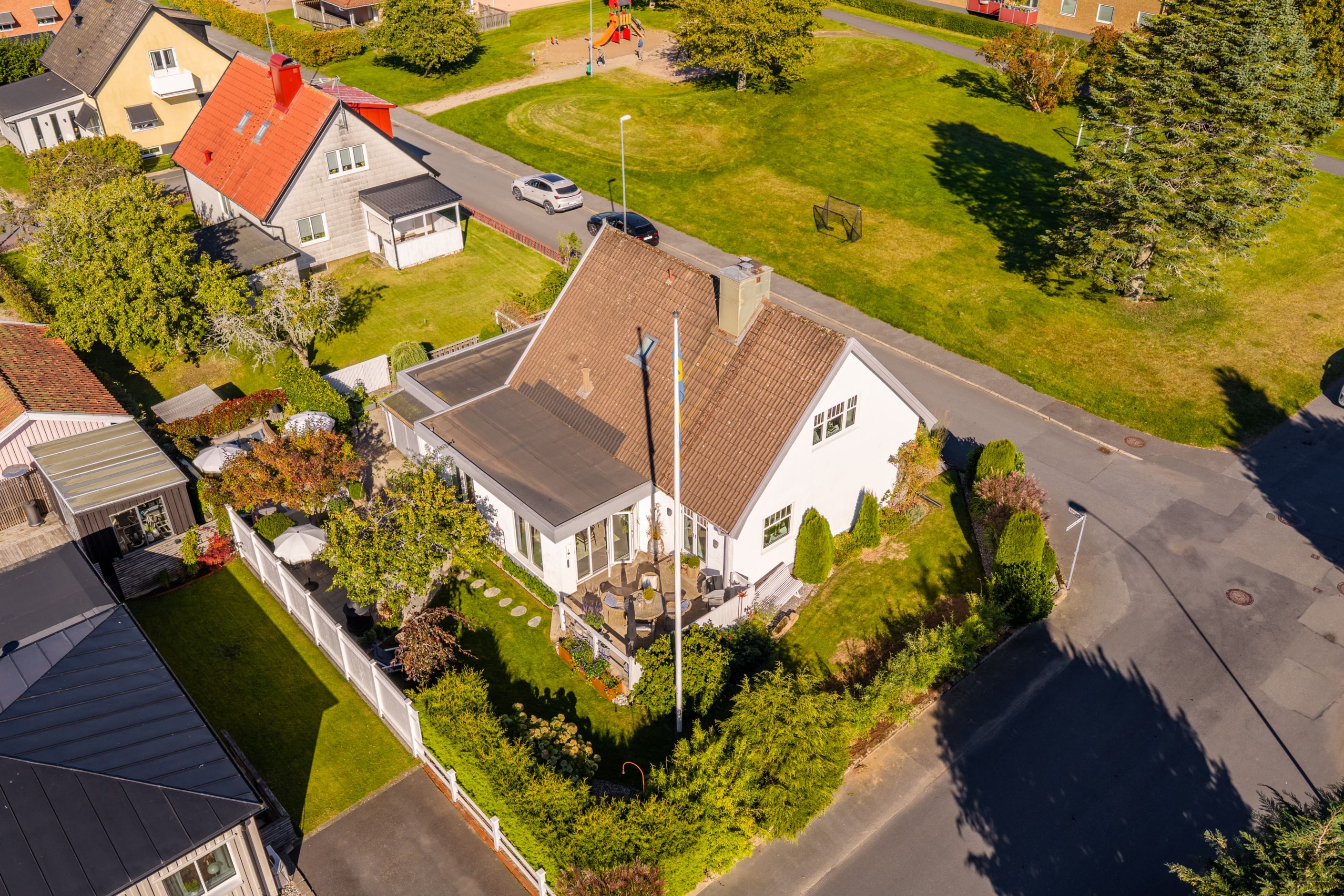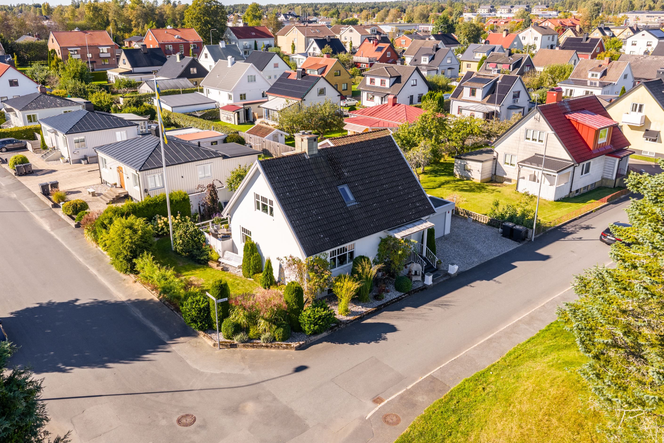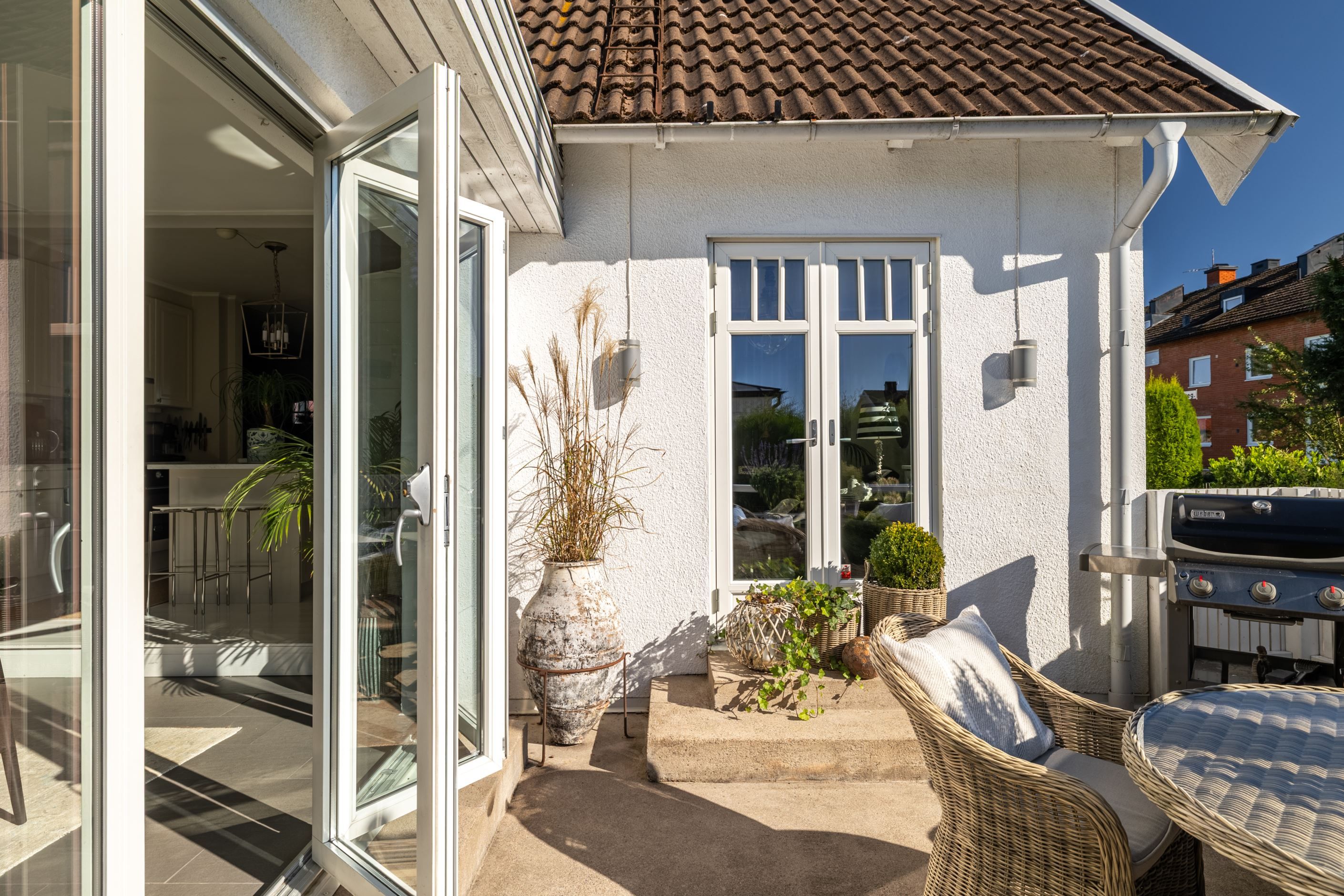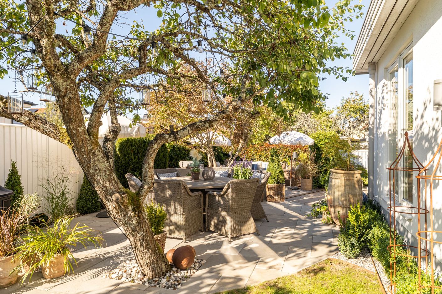 Välkommen till ett hem som verkligen har allt – både insida och utsida. Utvändigt möts du av en lummig och omsorgsfullt planerad trädgård med flera uteplatser där du kan följa solen från morgon till kväll. Här finns plats för både stilla stunder och härliga sammankomster – njut av frukost i morgonsolen eller bjud in till grillkväll med vänner i den grönskande oasen.