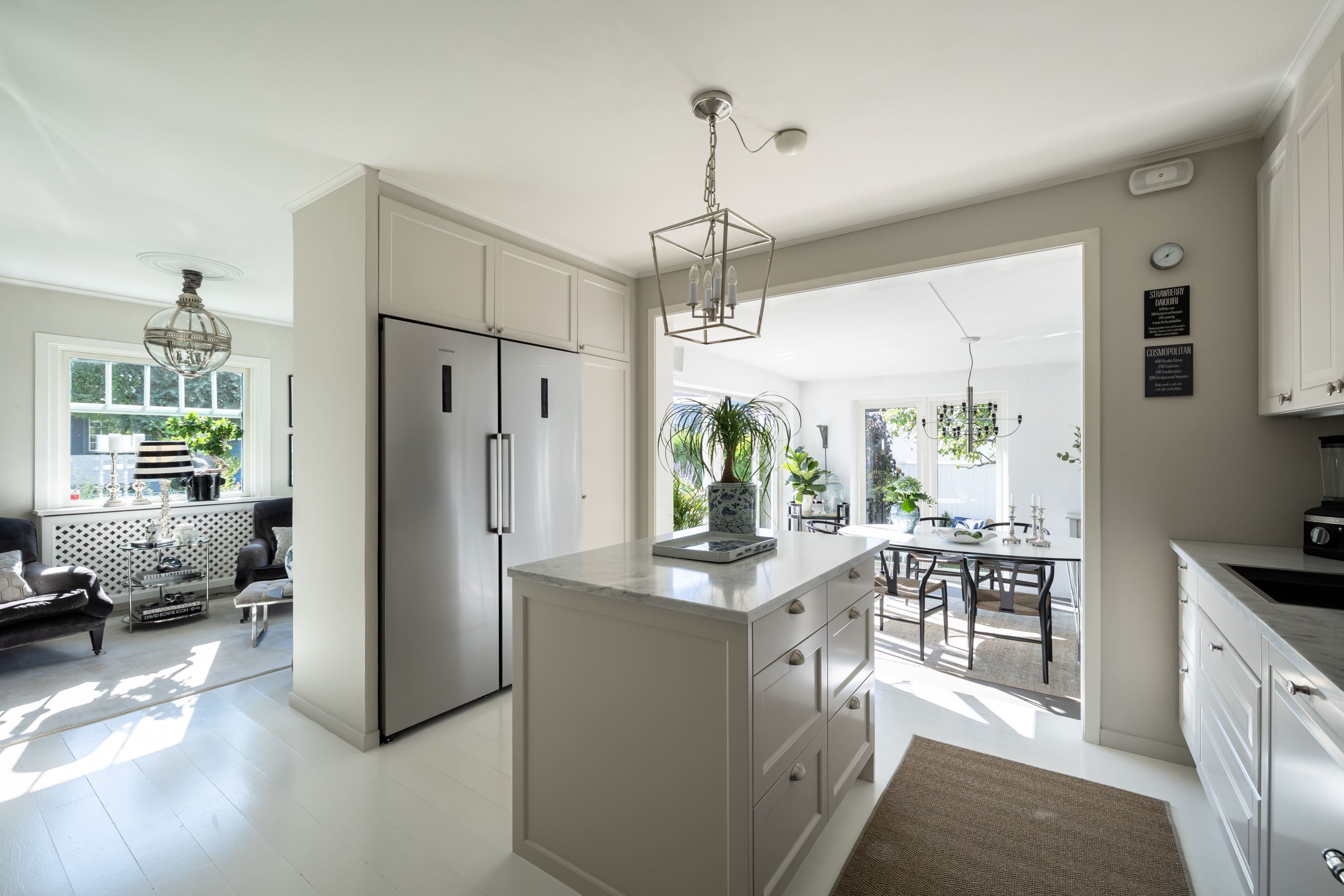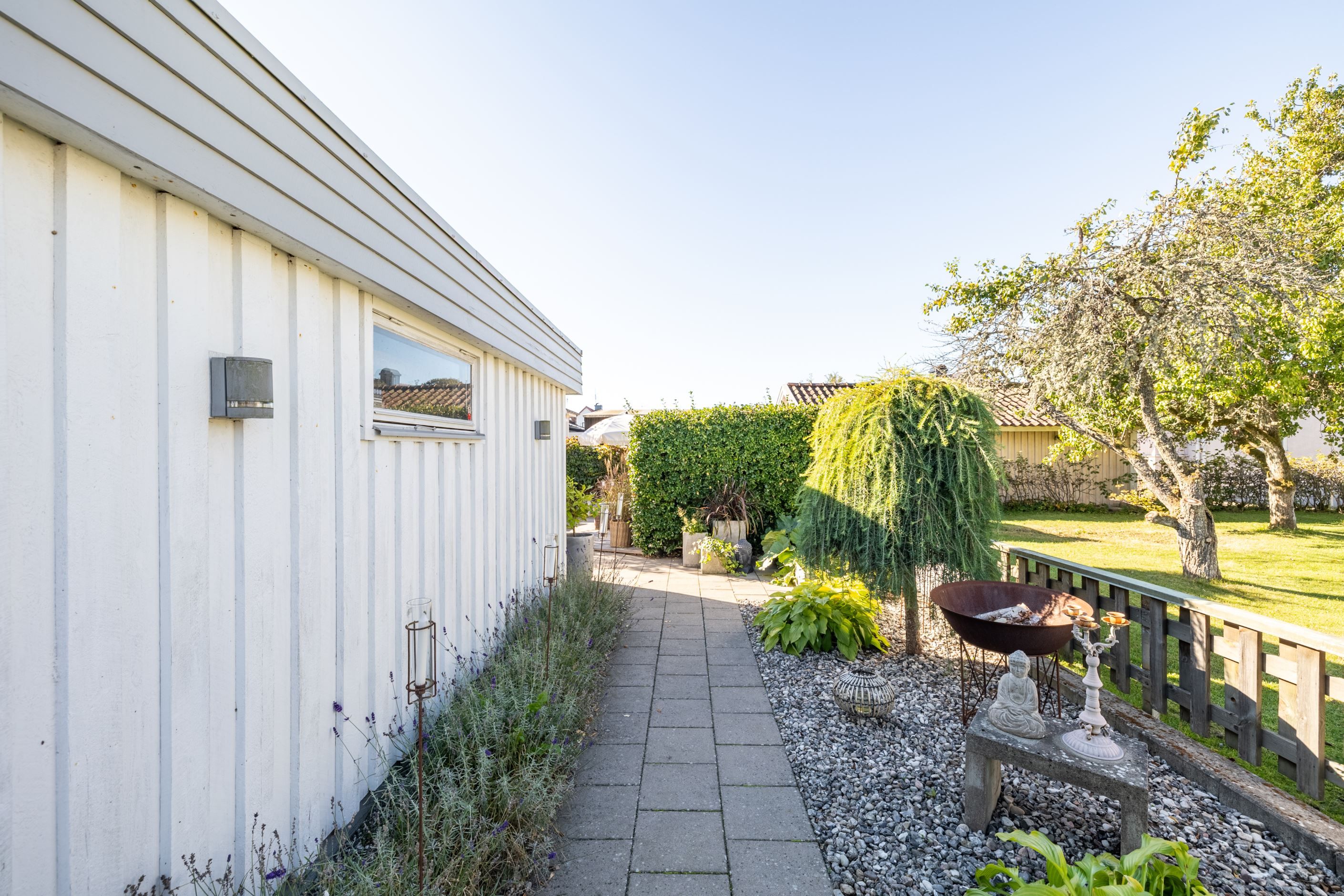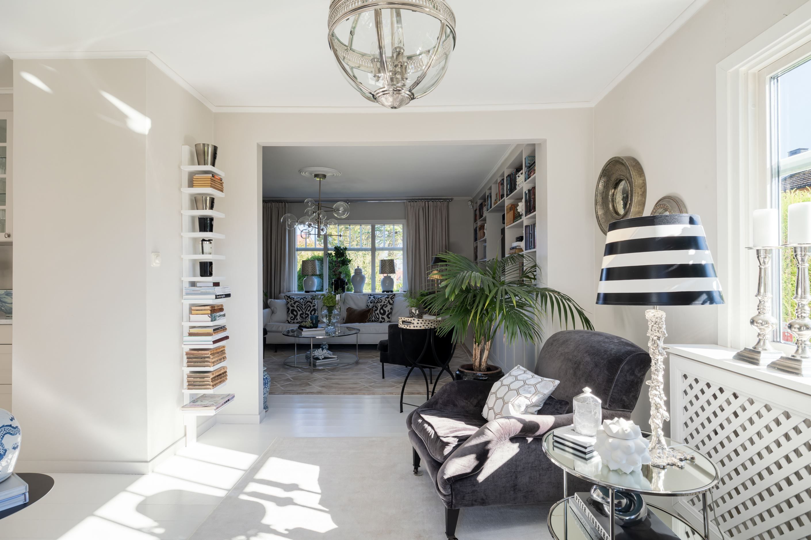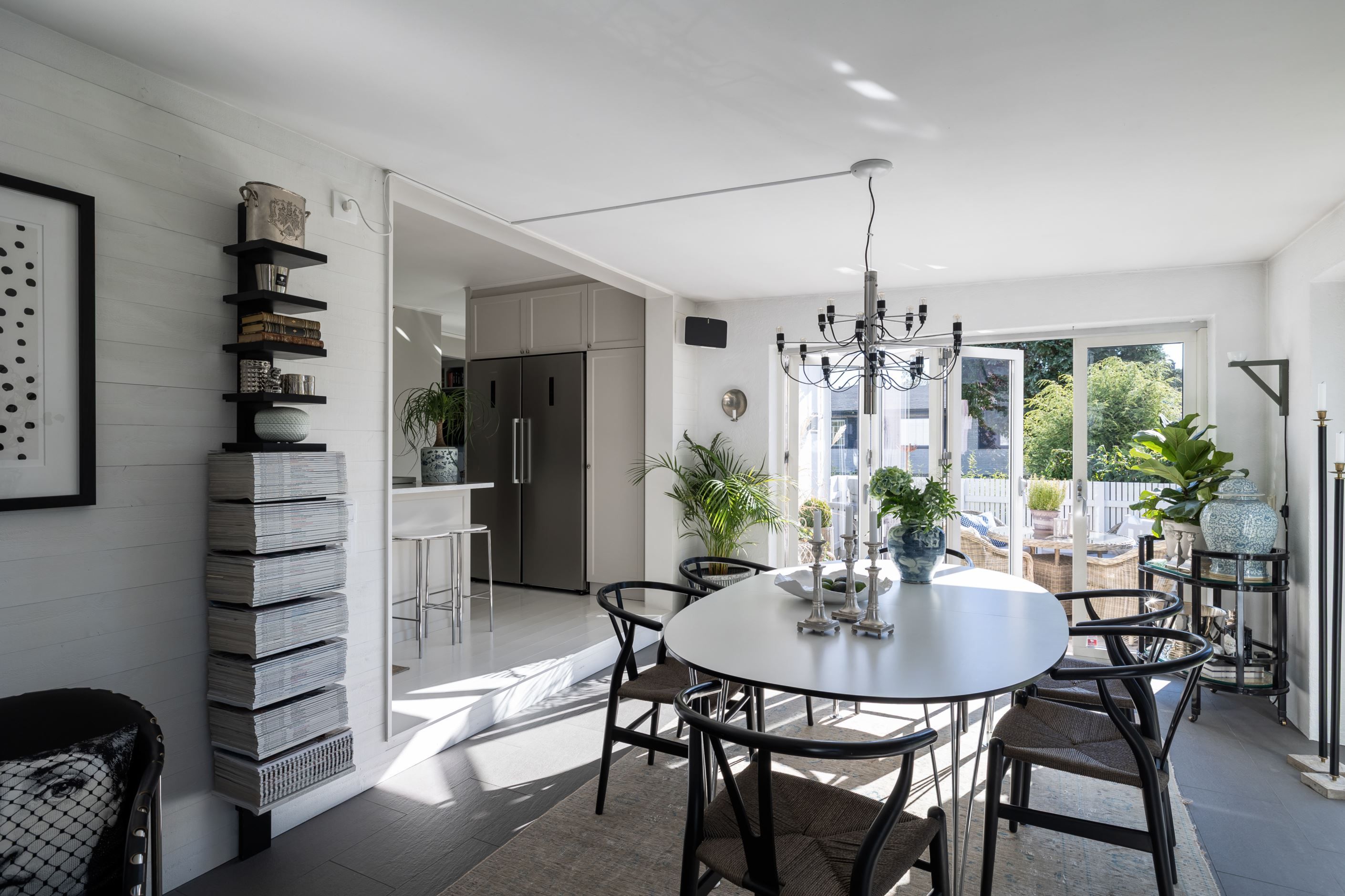 Välkommen till ett hem som verkligen har allt – både insida och utsida. Utvändigt möts du av en lummig och omsorgsfullt planerad trädgård med flera uteplatser där du kan följa solen från morgon till kväll. Här finns plats för både stilla stunder och härliga sammankomster – njut av frukost i morgonsolen eller bjud in till grillkväll med vänner i den grönskande oasen.