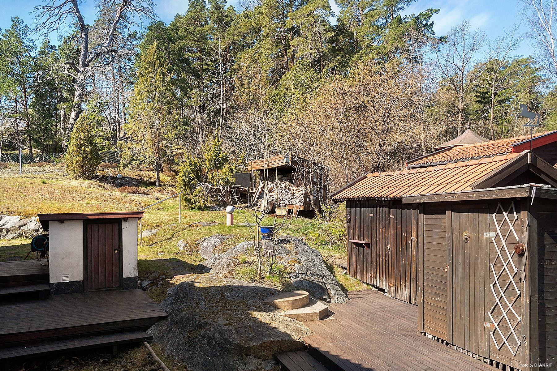 Fastigheten har en friliggande bastu som är utrustad med en vedeldad kamin. Egen bryggplats finns på gångavstånd.