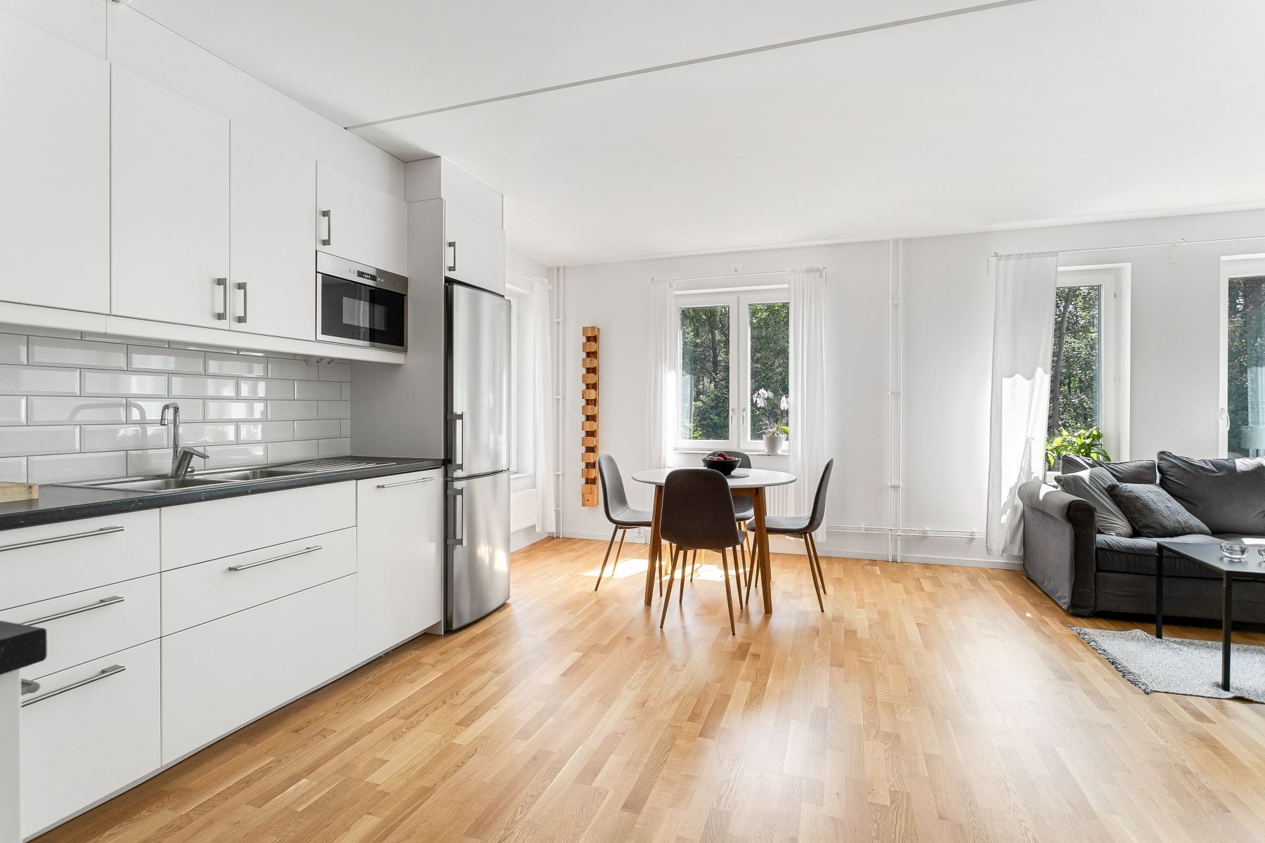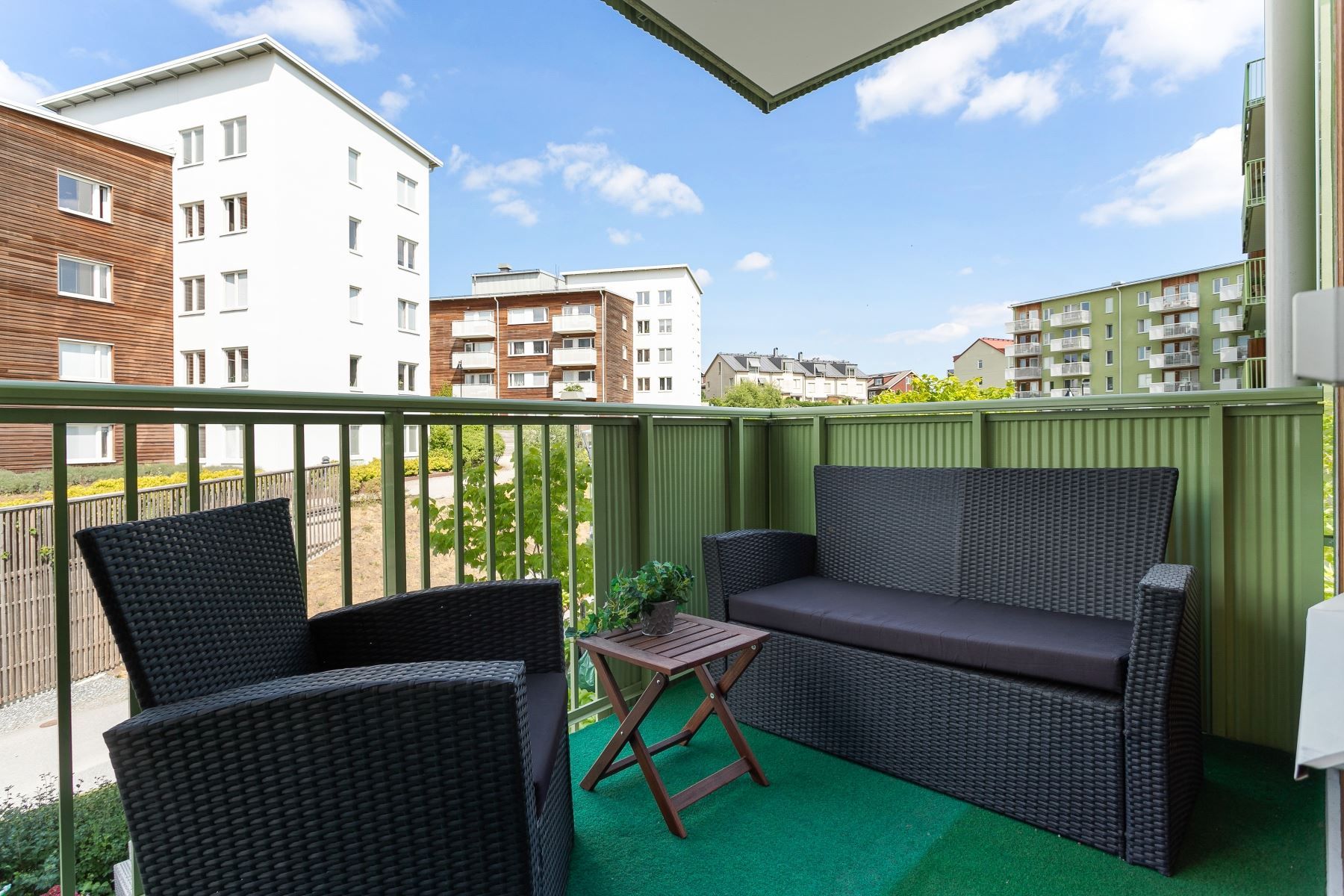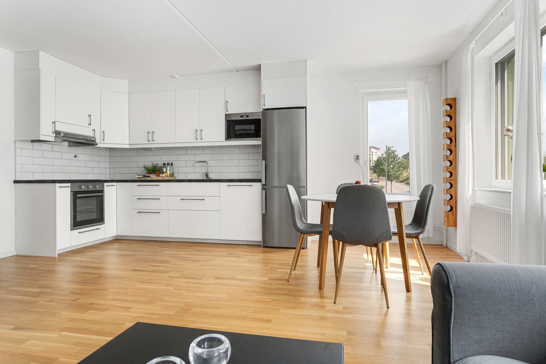 - Perfekta sociala ytor mellan vardagsrum, kök och balkong.