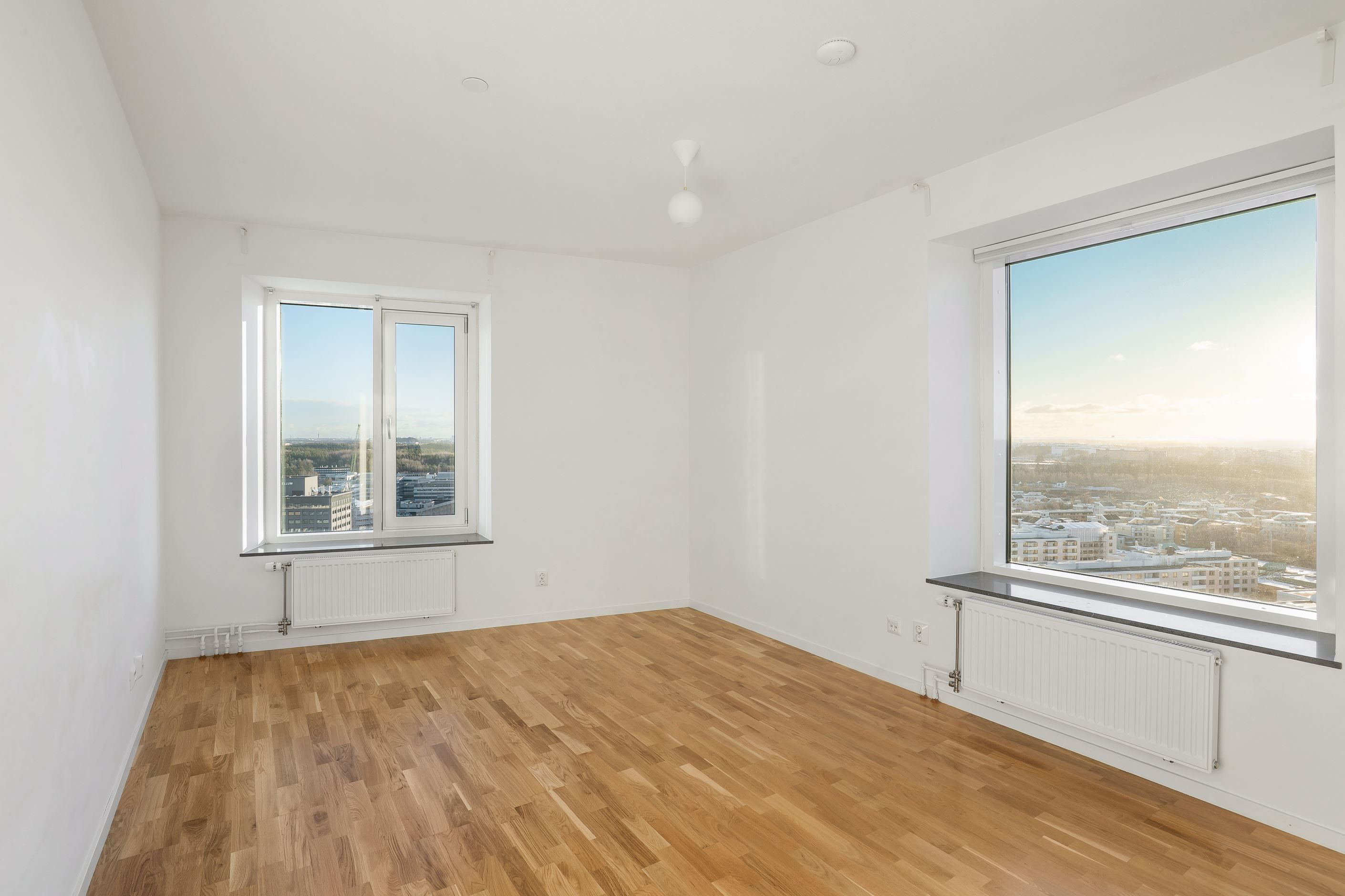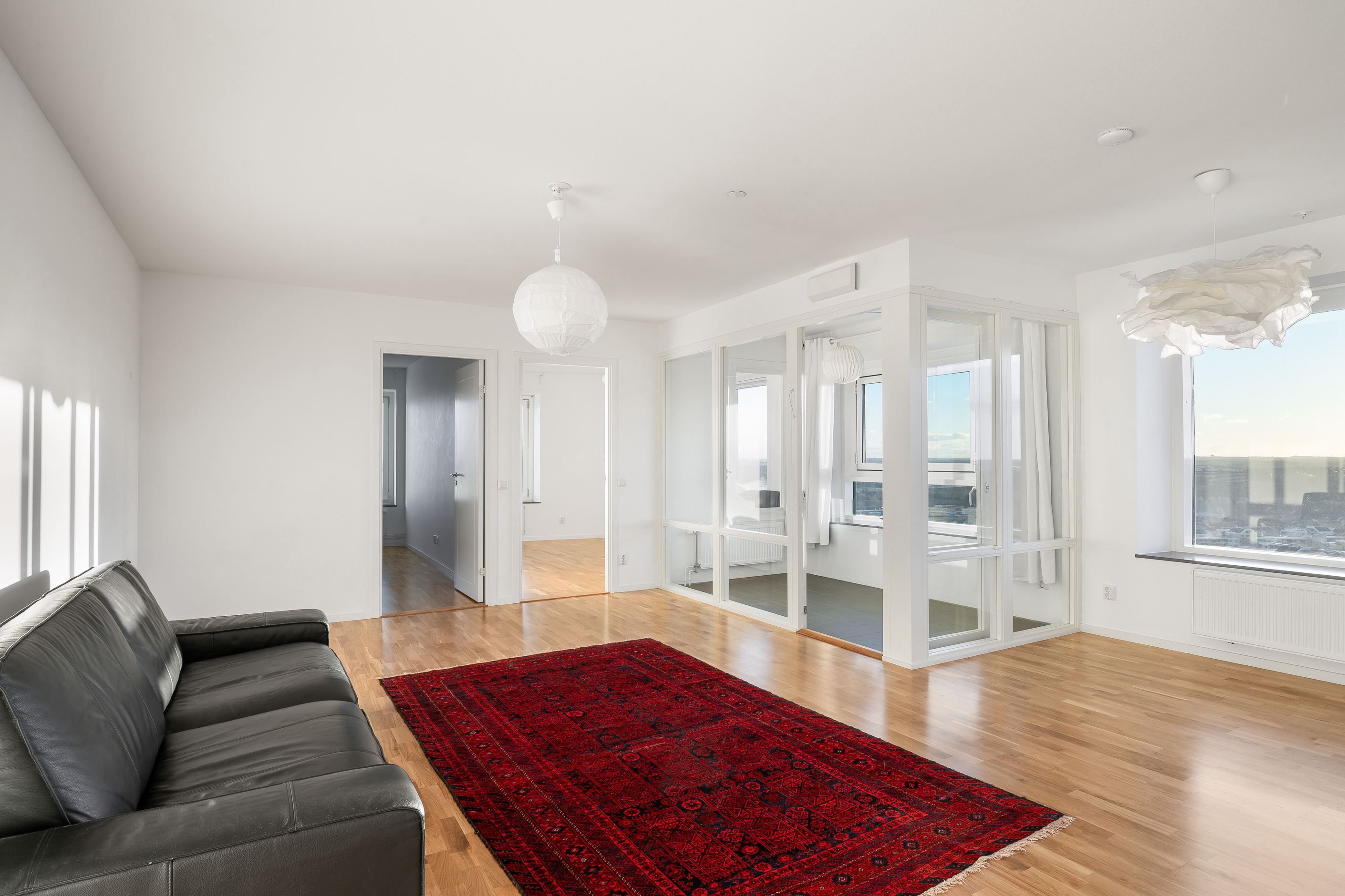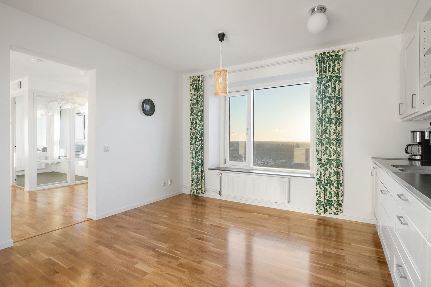 - Största modellen av 3:a i Kista Torn med bästa gavelläget i syd/väst med maximalt ljusinsläpp! Välkomna till en rymliga 3:a som enkelt kan göras om till en 4:a för den som önskar. Populär planlösning med ett stort separat kök med matplats för ca 6-8 personer och gott om arbetsytor. Vardagsrum med fantastisk utsikt och stora fönsterpartier samt loggia i västerläge. Här ryms stora möbler och ett hemmakontor i alkoven med eget fönster närmast köket. Modernt badrum med mörkt klinkergolv och vita helkaklade väggar. Här finns tvättmaskin och torktumlare från kvalitétsmärket Siemens samt duschplats med möjlighet att installera badkar. Bostaden är utrustad med en rymlig klädkammare samt 2 stora sovrum i söderläge med utsikt mot Stockholms stad. En härlig bostad på våning 21 som måste upplevas på plats!