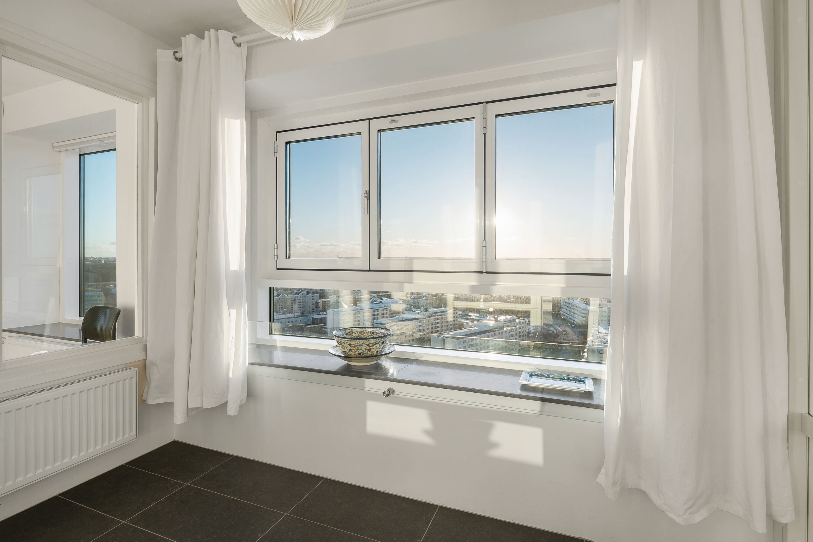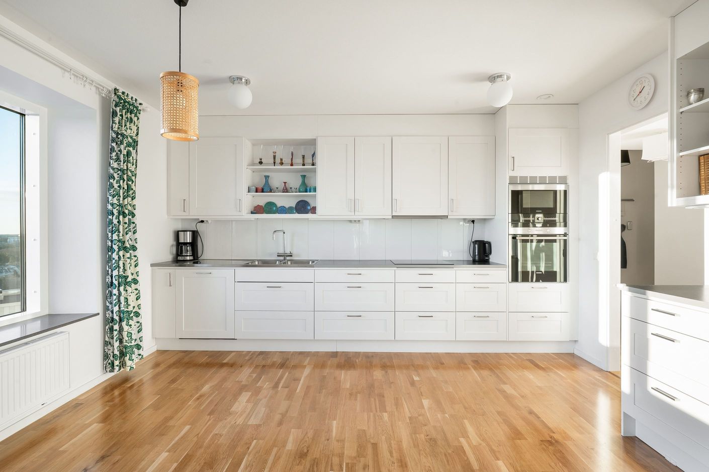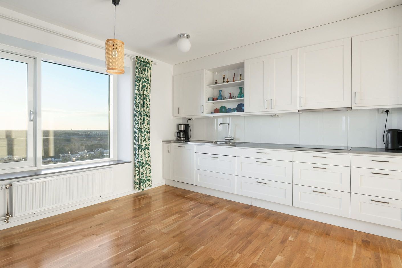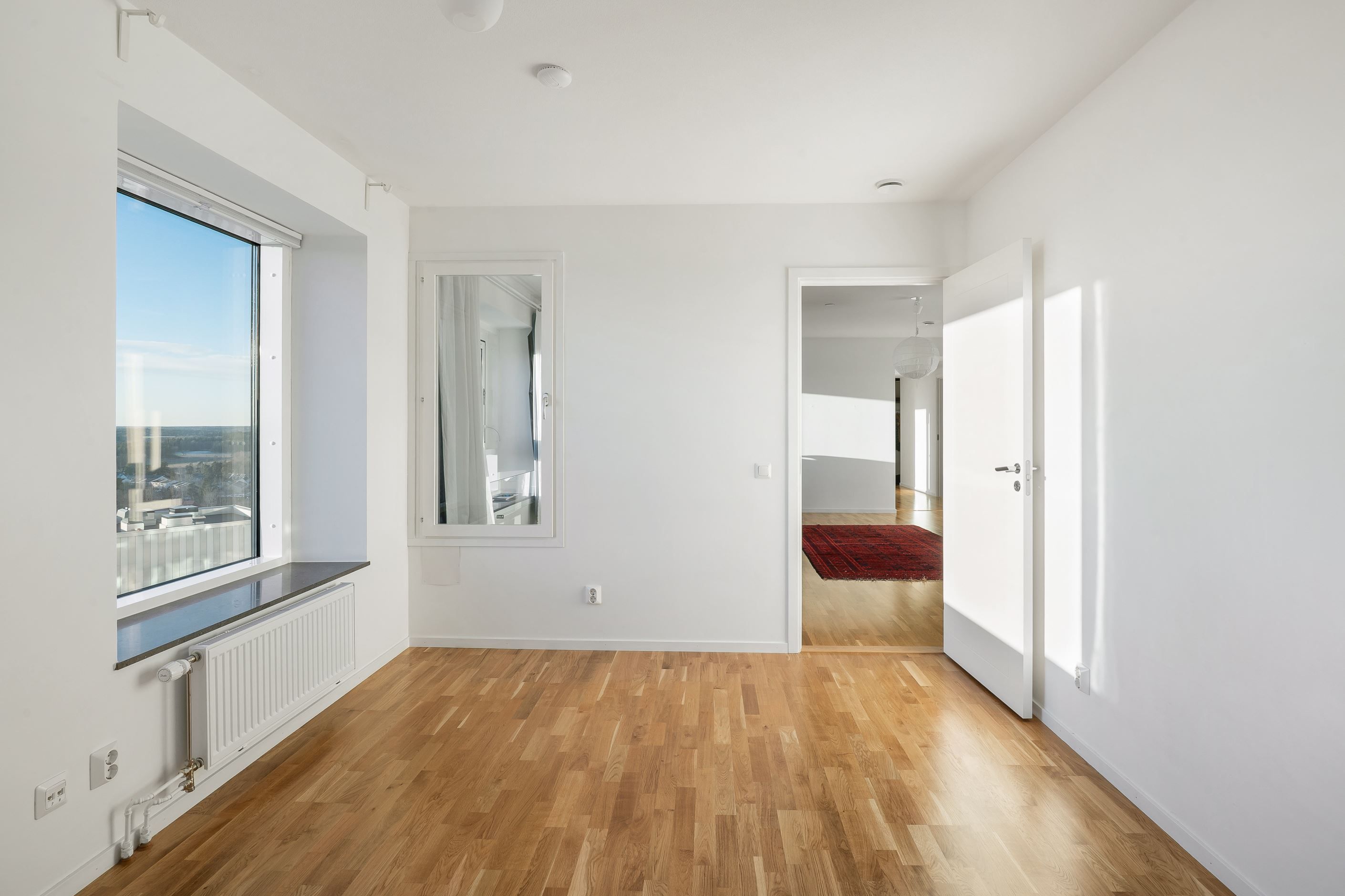 - Största modellen av 3:a i Kista Torn med bästa gavelläget i syd/väst med maximalt ljusinsläpp! Välkomna till en rymliga 3:a som enkelt kan göras om till en 4:a för den som önskar. Populär planlösning med ett stort separat kök med matplats för ca 6-8 personer och gott om arbetsytor. Vardagsrum med fantastisk utsikt och stora fönsterpartier samt loggia i västerläge. Här ryms stora möbler och ett hemmakontor i alkoven med eget fönster närmast köket. Modernt badrum med mörkt klinkergolv och vita helkaklade väggar. Här finns tvättmaskin och torktumlare från kvalitétsmärket Siemens samt duschplats med möjlighet att installera badkar. Bostaden är utrustad med en rymlig klädkammare samt 2 stora sovrum i söderläge med utsikt mot Stockholms stad. En härlig bostad på våning 21 som måste upplevas på plats!