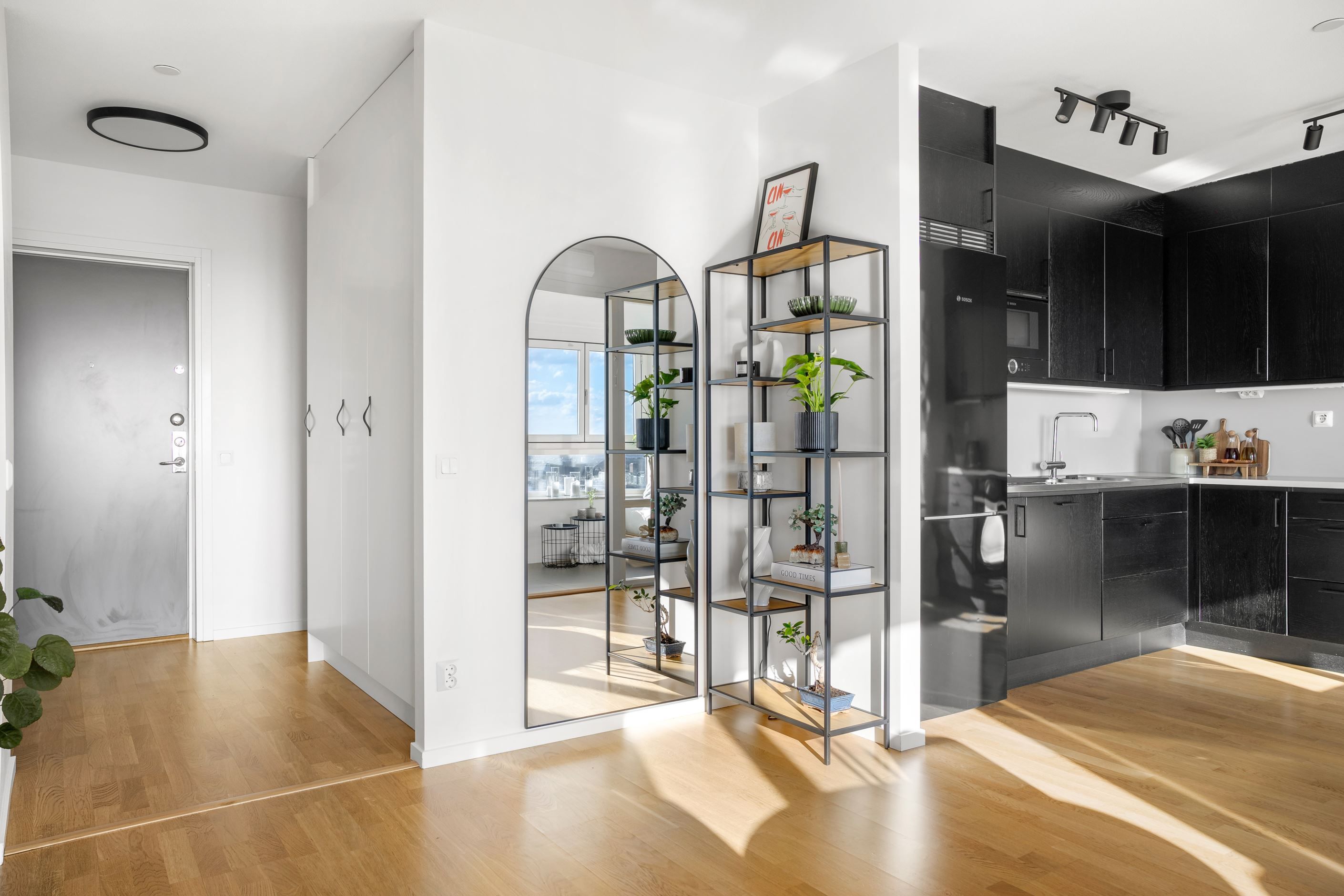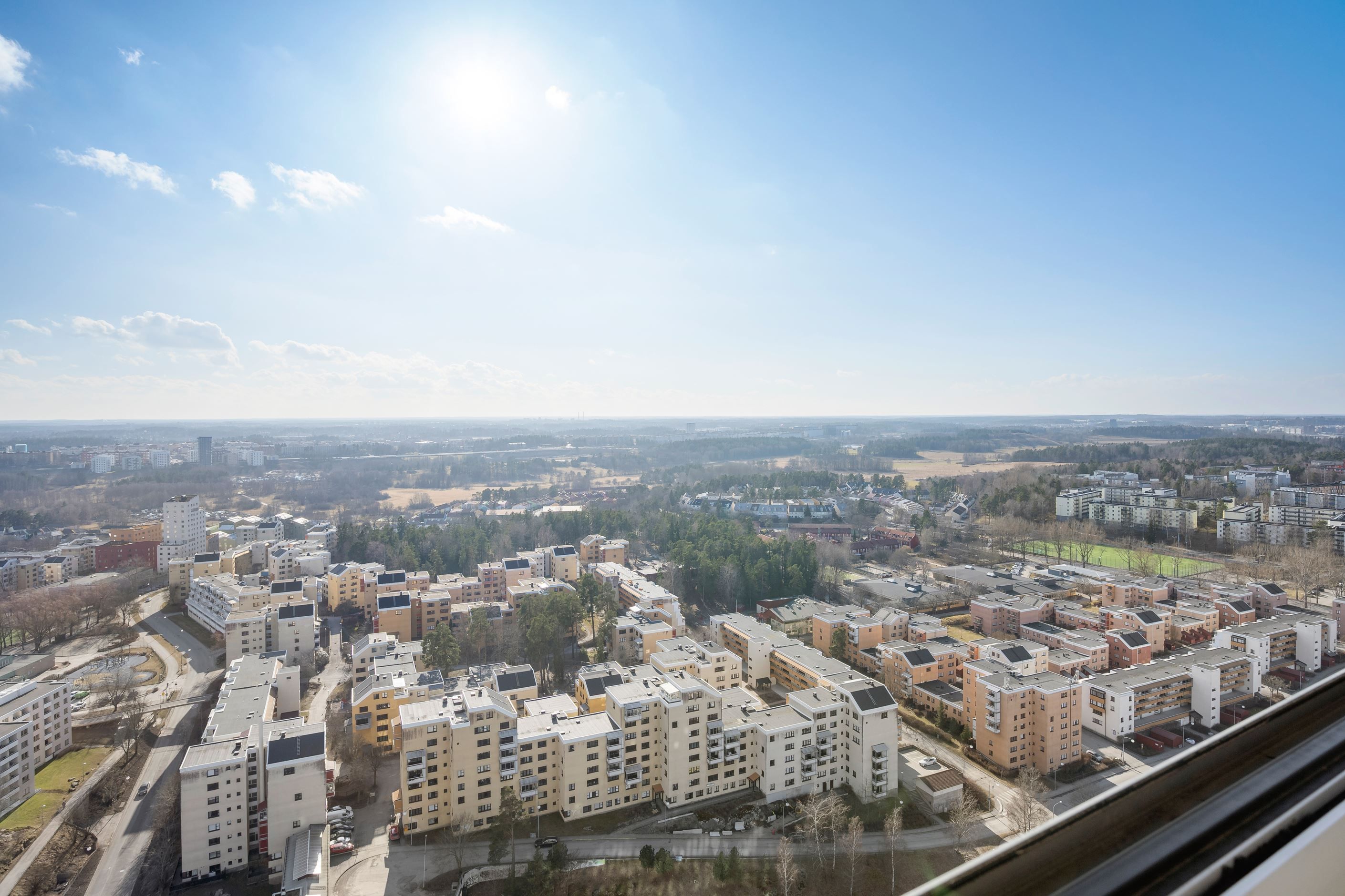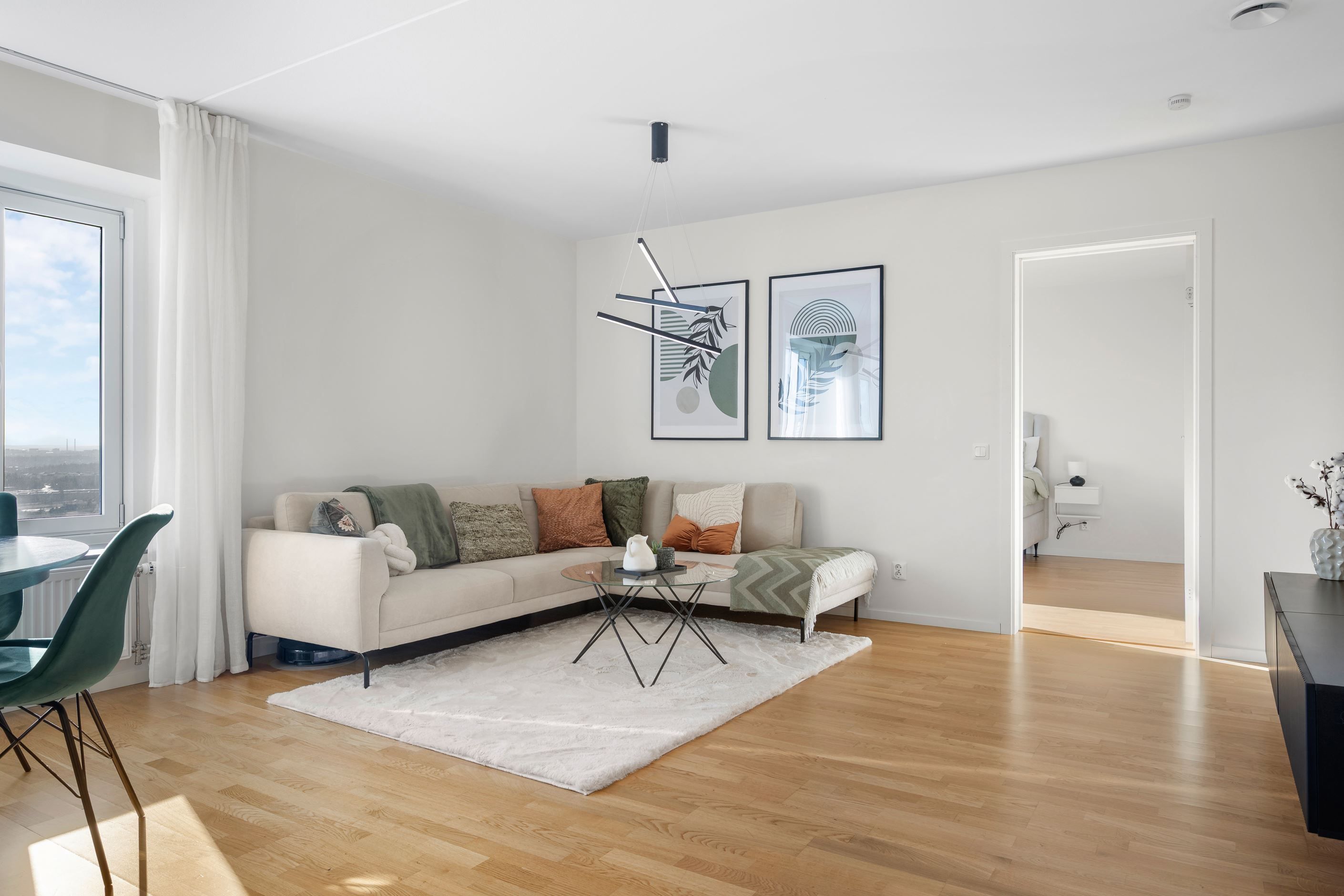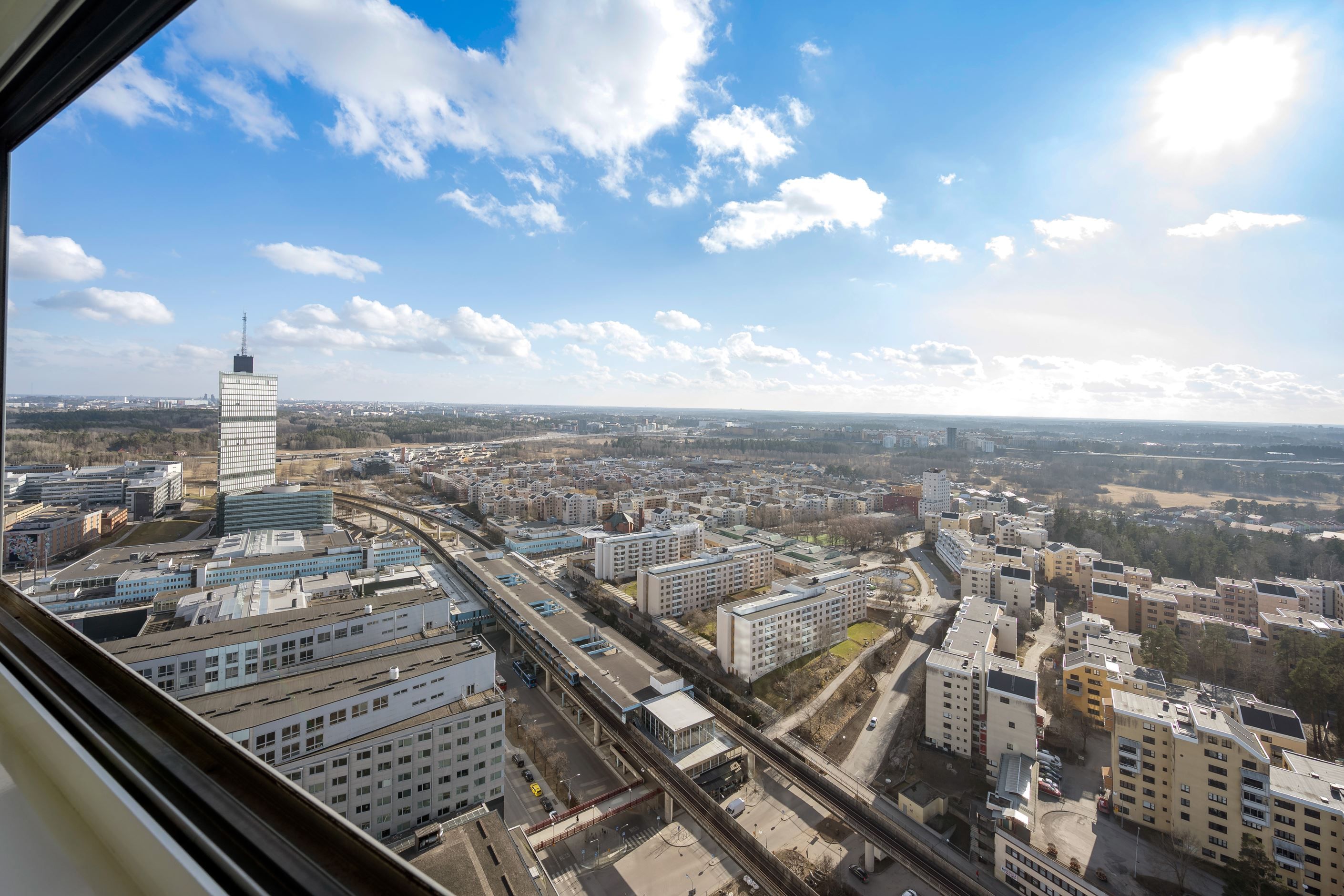 Här bor du högt upp på våning 32 i eftertraktat söderläge med en fantastisk utsikt över Stockholm och ett generöst ljusinsläpp året om. Bostaden är ljus och modern med social planlösning och genomtänkta materialval. Stora fönsterpartier förstärker känslan av rymd och tillsammans med parkettgolv skapas en stilren och trivsam helhet.
