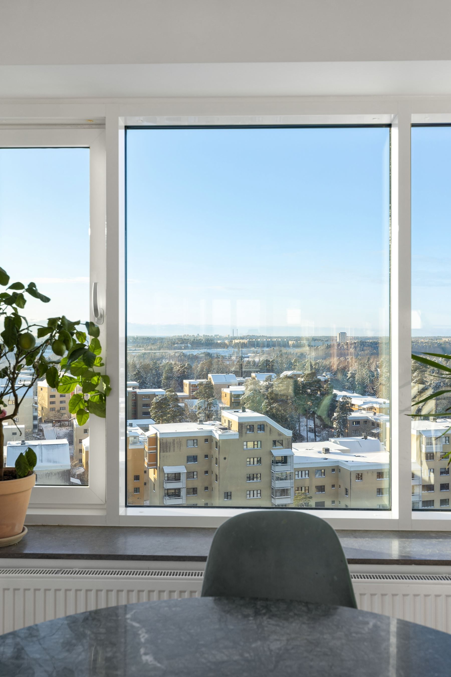 Bostadskomplexet Kista Torn är inte endast ett av Sveriges högsta bostadshus, utan även ett av de mer moderna. Vid entréplan möts man inte av de vanliga brevlådorna och ett trapphus, utan här finns det en fullt möblerad Lobby som fångar upp besökarna och bostadsägarna. De två husen har även tillgång till två gemensamma övernattningslägenheter att hyra vid behov. På våning 17 har alla bostadsrättsägare i tornet möjlighet att ta del utav den gemensamma takterrassen. Lägenheten är lokaliserad centralt i Kista, vilket betyder i nära anslutning till kollektivtrafik och Kista Galleria. Kollektivtrafiken erbjuder både tunnelbana som tar dig till Stockholm Central på 17 min, samt bussar som åker mot Barkarby, Sollentuna, Spånga och Arlanda. Kista Galleria har allt man kan tänka sig behöva under ens vardag i form av kläder, matvaror och restauranger, samt kvällsaktiviteter så som bio, sportbar & go-cart för den som gillar sport och andra aktiviteter.