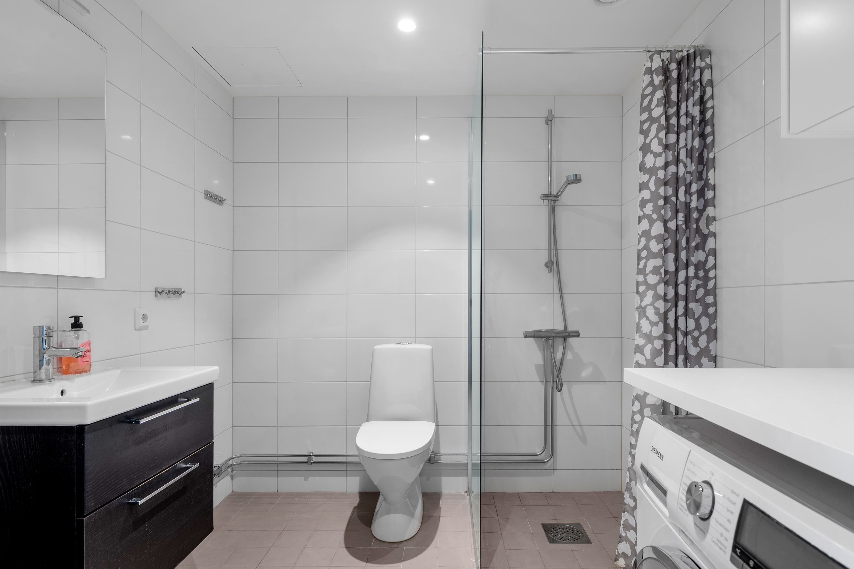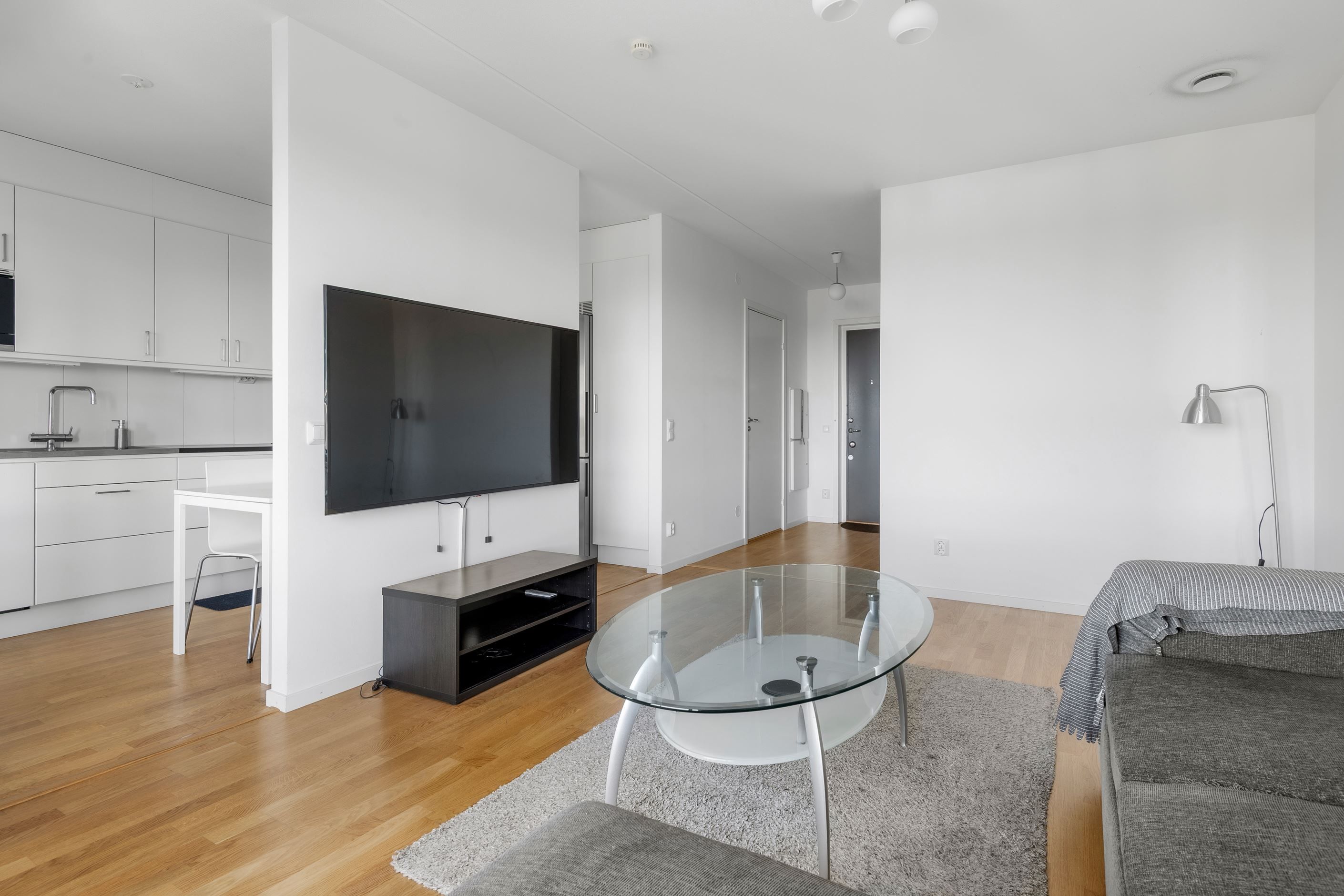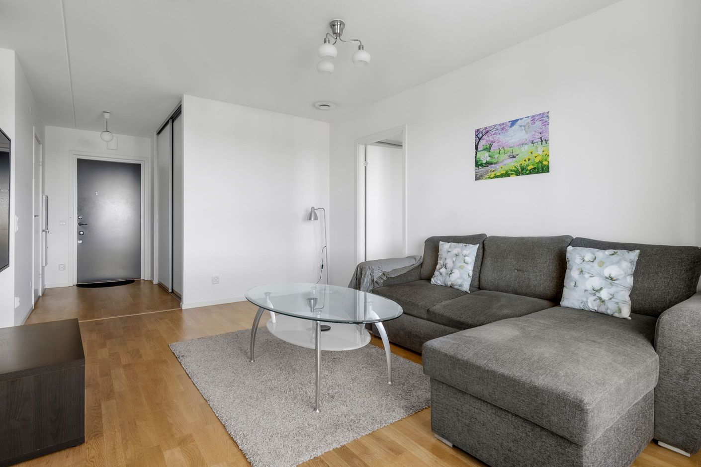 Här bor du i en bostad som präglas av parkett golv som går fint ihop med bostadens målade väggar, fräscha ytskikt, stora fönsterpartier som fyller lägenheten med ett härligt ljusflöde, välkomnande hall med klinker golv och förvaring bakom skjutdörrar, stilrent kök utrustat med vitvaror från kvalitetsmärket Siemens, halvöppen planlösning mellan kök och vardagsrum, gott om plats till förvaring och ett stort och fräscht badrum med tvättmaskin och torktumlare från Siemens. I anslutning till det sociala utrymmet finns en loggia som kan nyttjas som ett mindre rum, lek hörna eller kontor. Bostaden erbjuder även ett mysigt sovrum med plats för sängar i de flesta storlekar och förvaring bakom spegel-skjutdörrar.