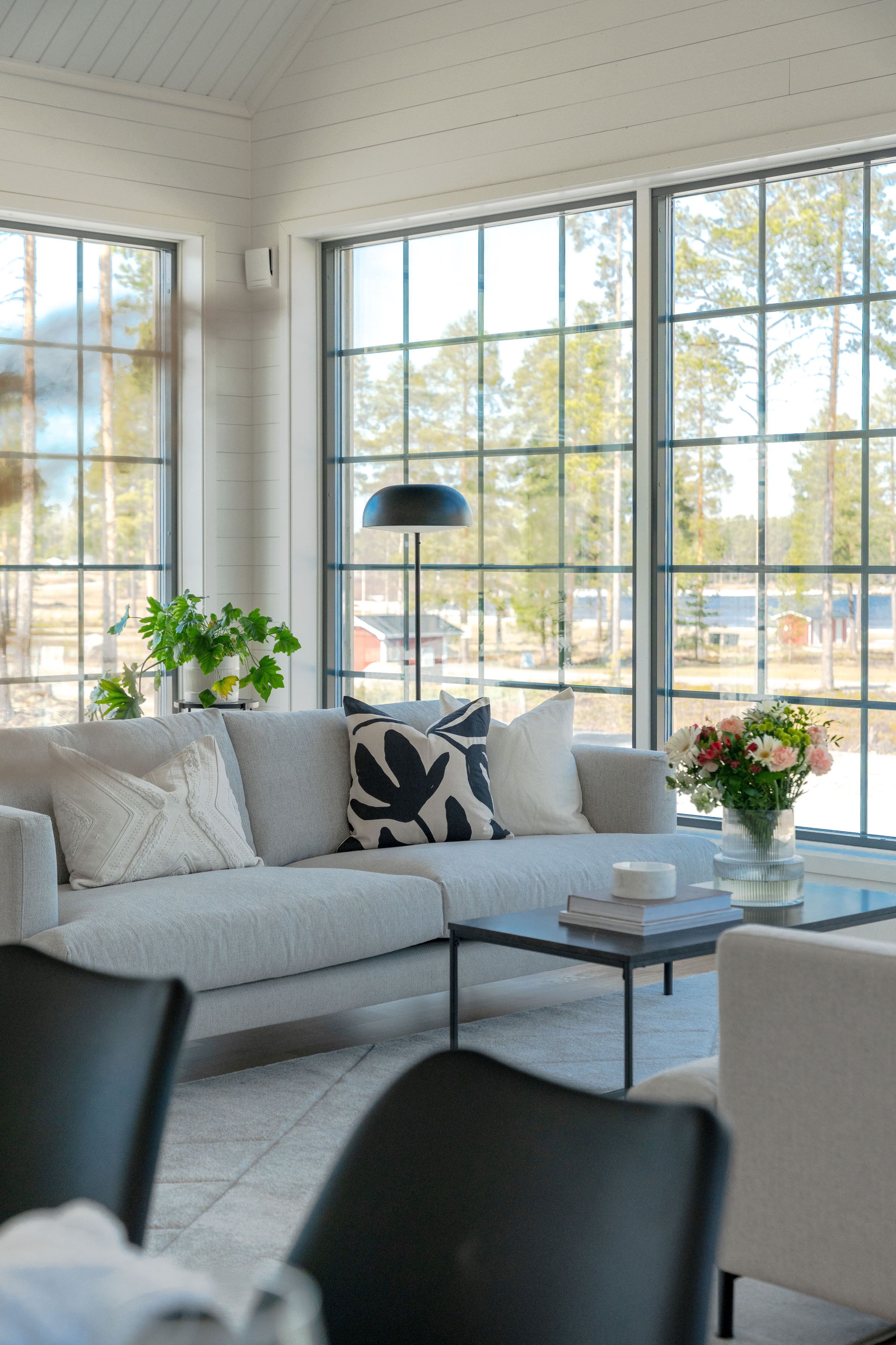 Utsikten här är slående och känslan av ett socialt hem via den öppna planlösningen mellan kök och vardagsrum är påtaglig.