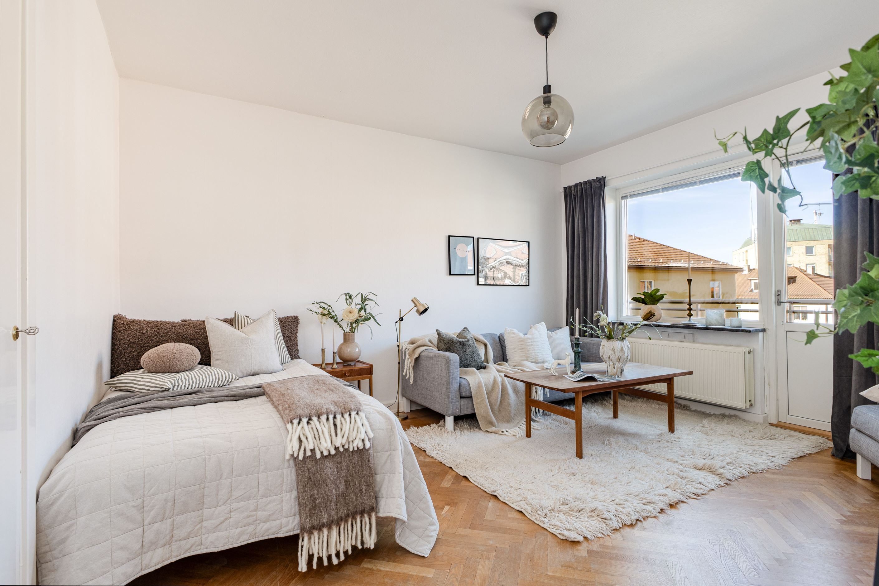 Här möts du av ett härligt ljusinssläpp och tidstypiska detaljer som vacker fiskbensparkett. Det rymliga allrummet erbjuder gott om plats för både säng och soffgrupp, med möjlighet att enkelt skapa en avskild sovalkov för en mer privat och ombonad känsla. Förvaringsmöjligheterna är goda tack vare en praktisk klädkammare. Från allrummet når du bostadens balkong i eftertraktat västerläge som skapar en perfekt plats för att njuta av soliga eftermiddagar och ljumma sommarkvällar med vänner.
