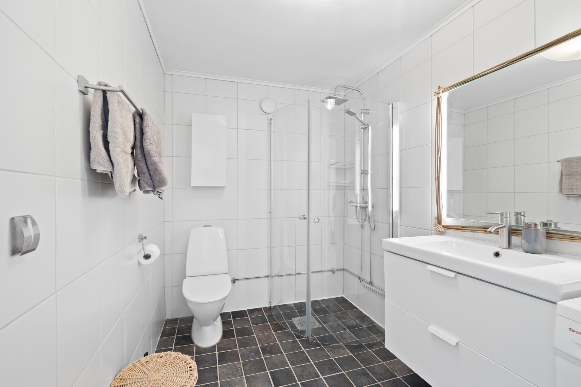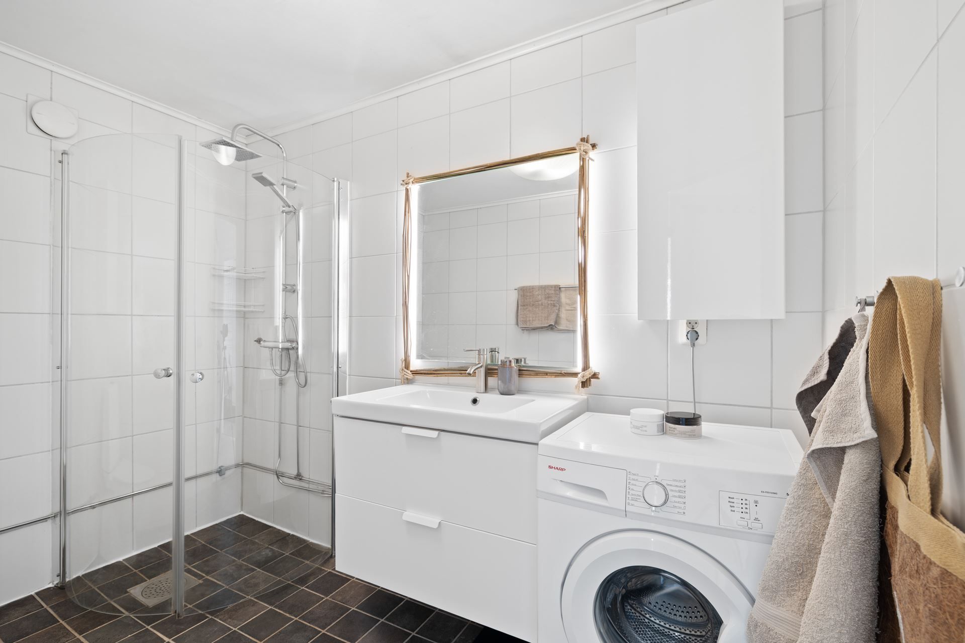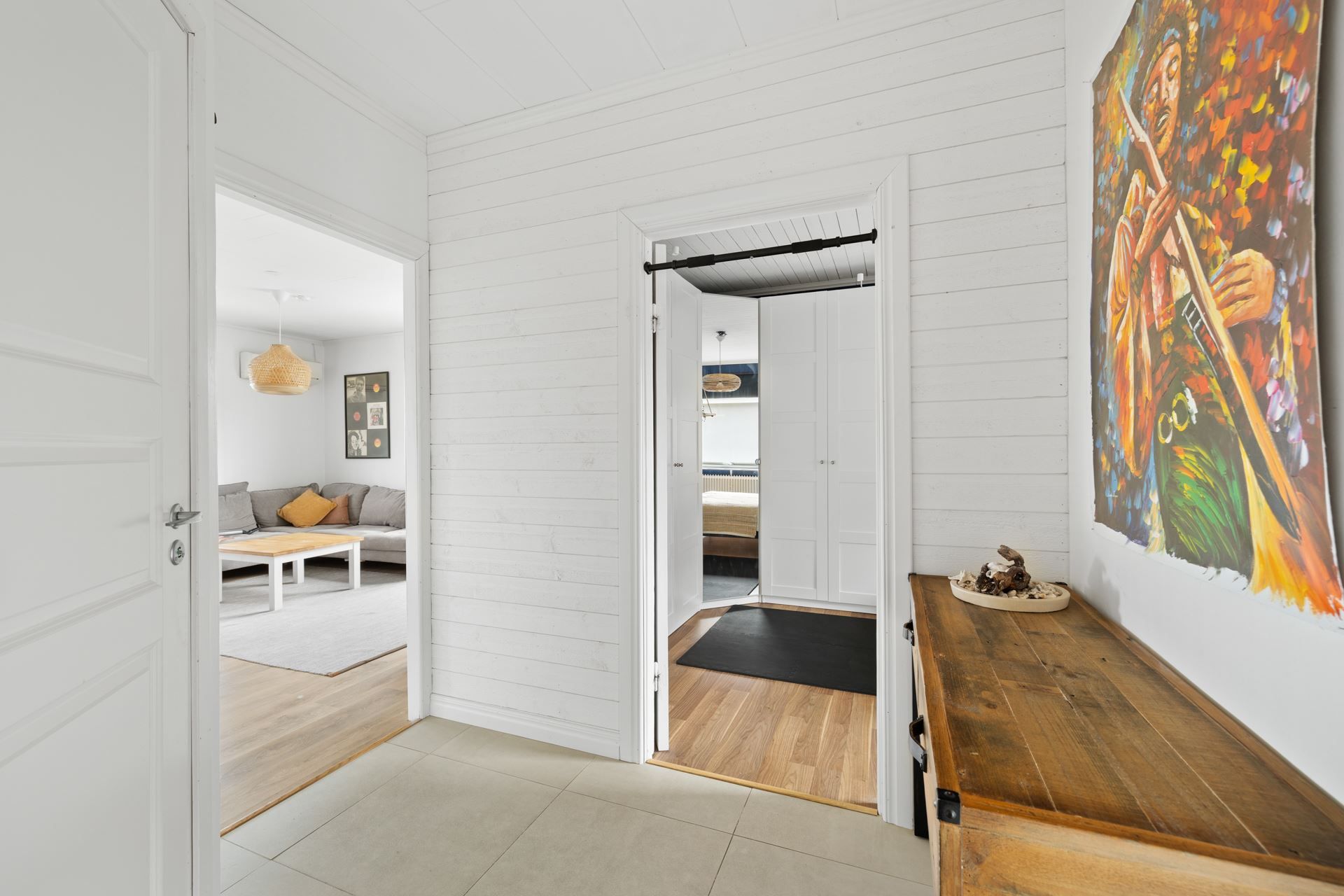 Köket är funktionellt och komplett med alla vitvaror på plats, och i badrummet finns både tvättmaskin och goda förvaringsmöjligheter. Redan från hallen möts du av ett hem som känns både genomtänkt och hemtrevligt – och som bjuder in till att stanna länge.