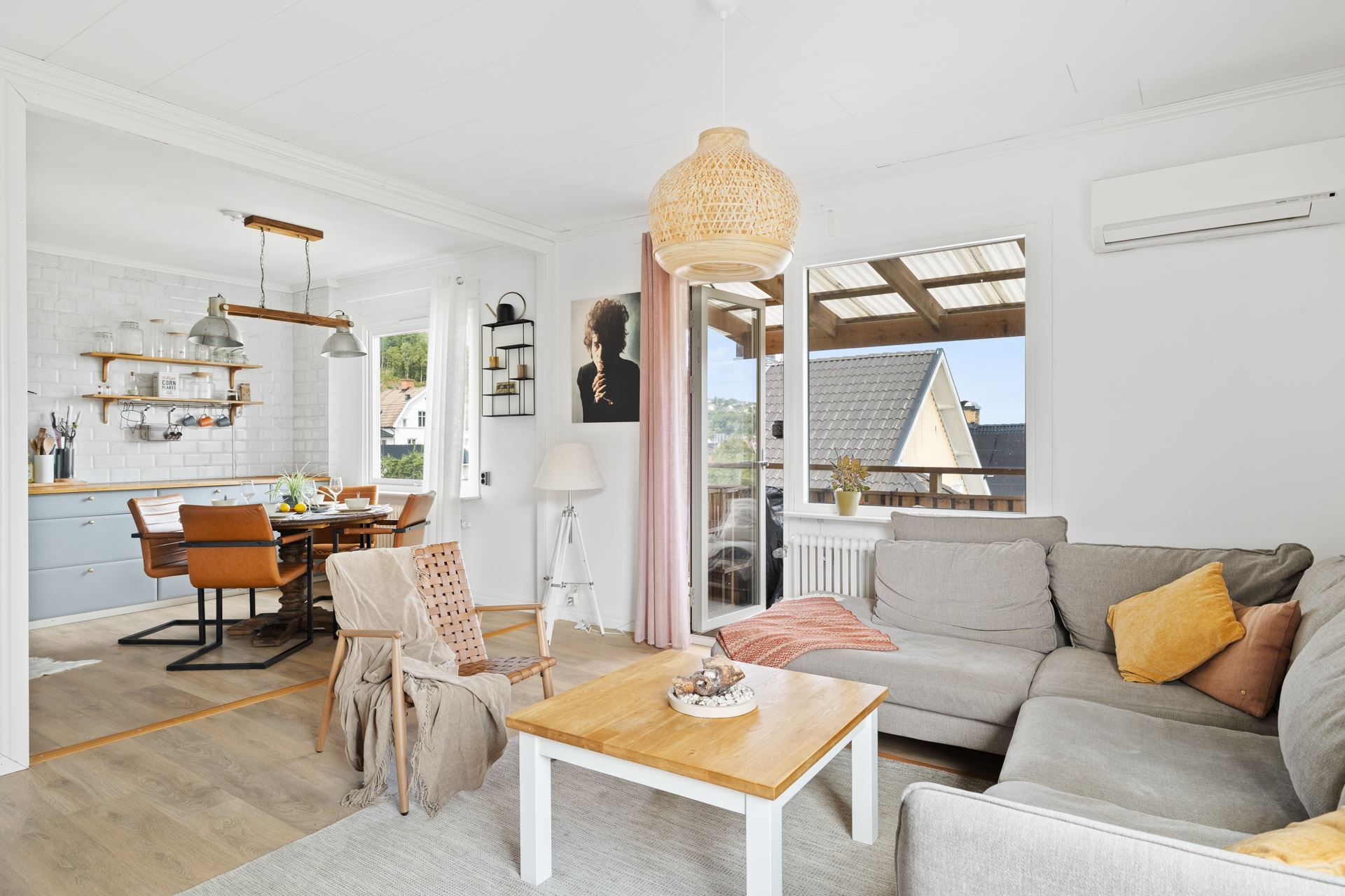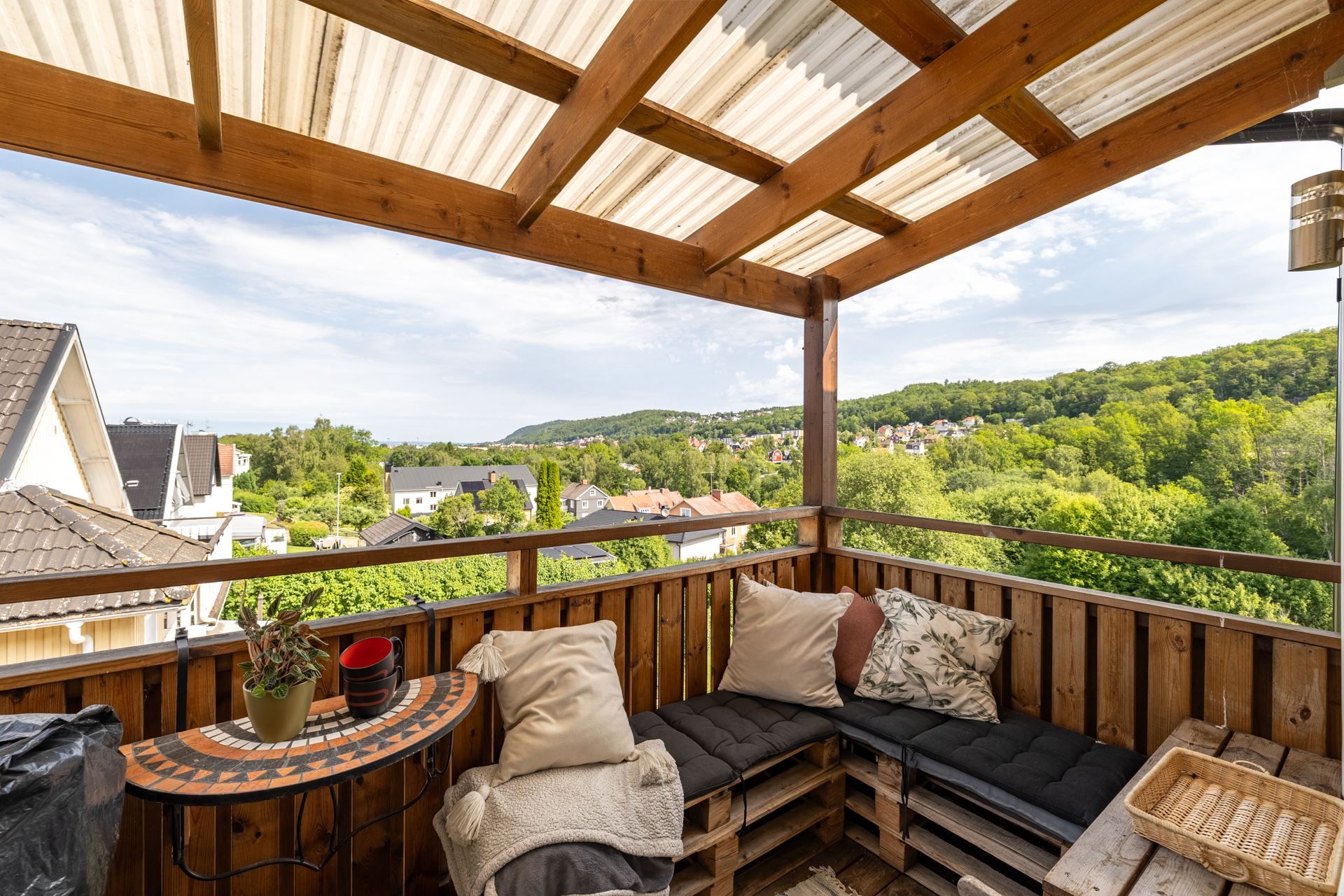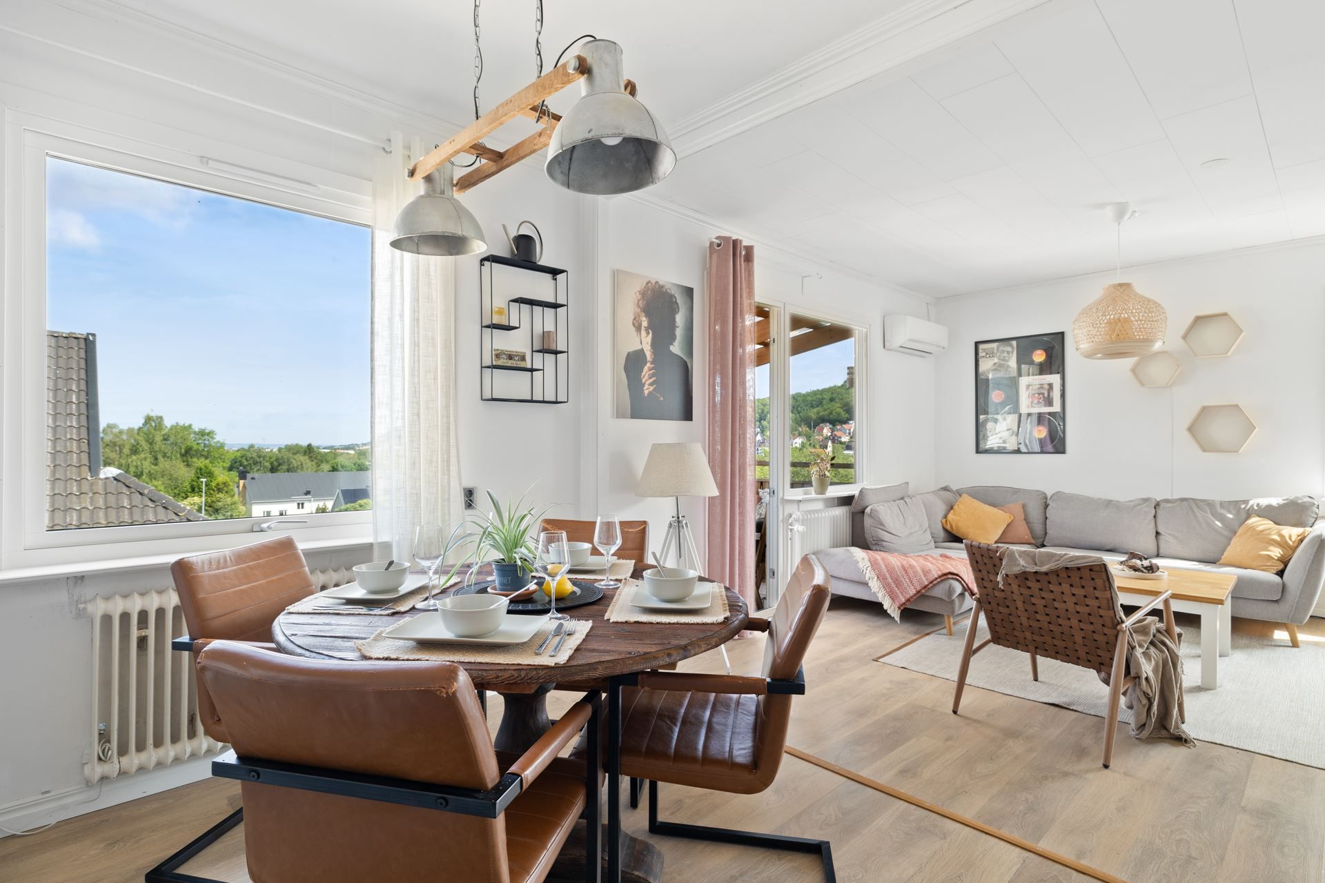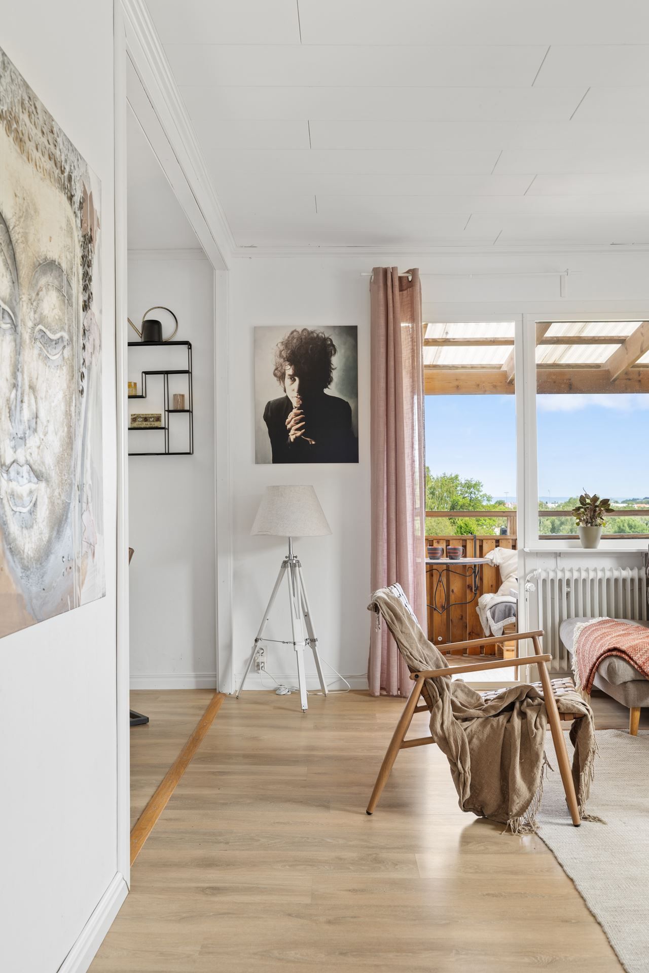 Välkommen till ett hem att trivas i – högst upp i huset med fin utsikt och en varm känsla redan när du kliver in.