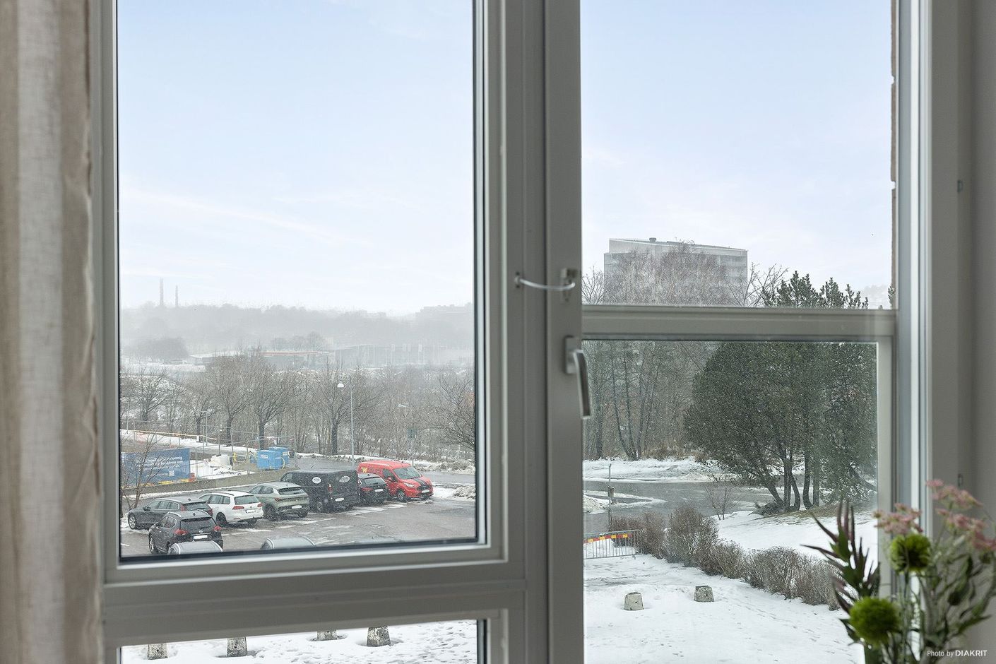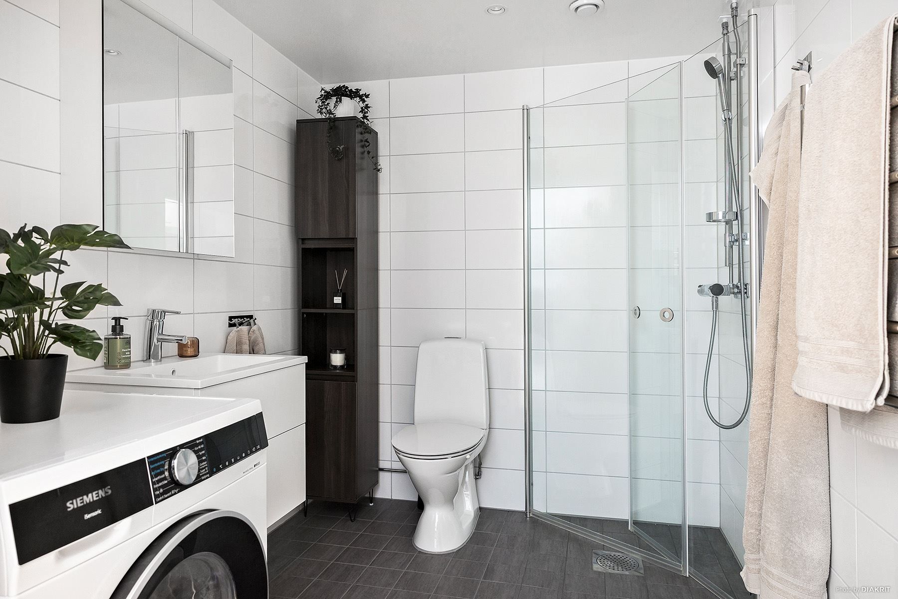 Välkomna till denna smart planerade etta. Den perfekta bostaden för er som ska flytta hemifrån, eller för er som söker en övernattningslägenhet i ett trevligt område med närhet till allt. Ni kliver in i hallen som erbjuder avhängning till vänster och förvaring i flera garderober. Vidare kommer ni till det vita Marbodalköket som har det mesta ni kan önska, den gedigna maskinparken är levererad av Siemens. Här finns diskho, spishäll, fläkt, ugn, kyl/frys, diskmaskin samt integrerad mikro. Vardagsrummet kommer intill, här får ni trevlig utsikt ut över området tack vare våningsplanet. Här finns plats för ett mindre matbord, såväl som säng och en mindre soffa. Det helkaklade badrummet är praktiskt och har allt ni kan önska, här finns såklart också en kombimaskin för enkelt tvättande.