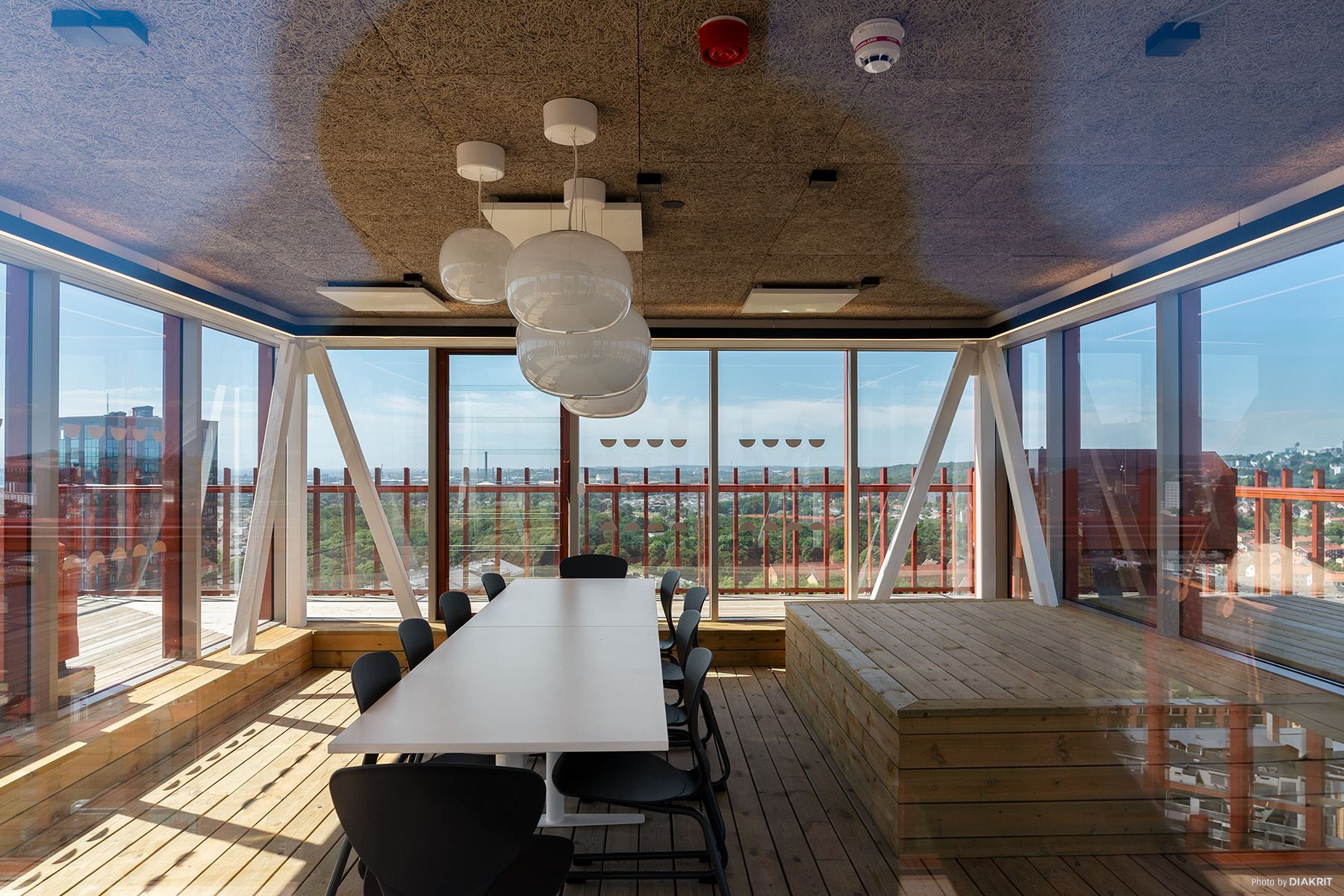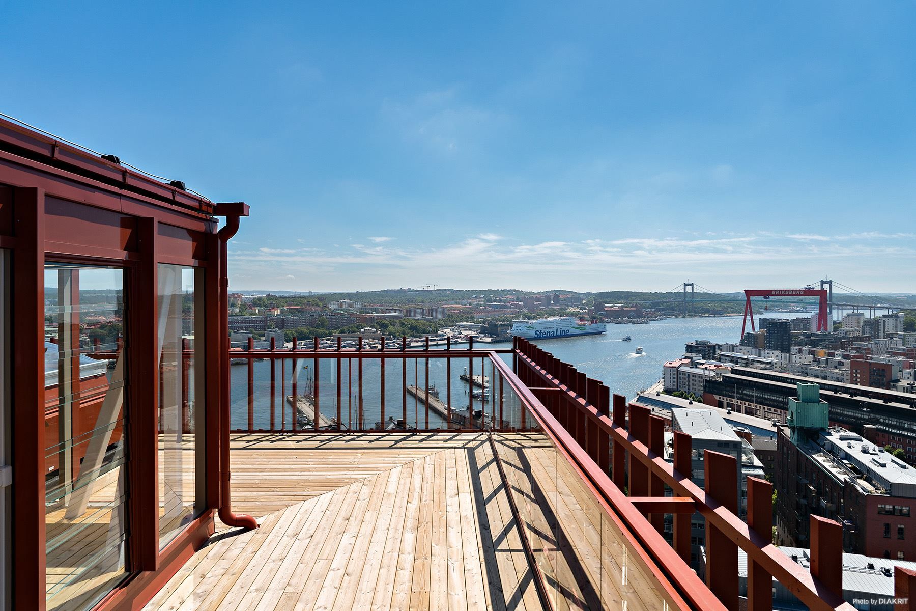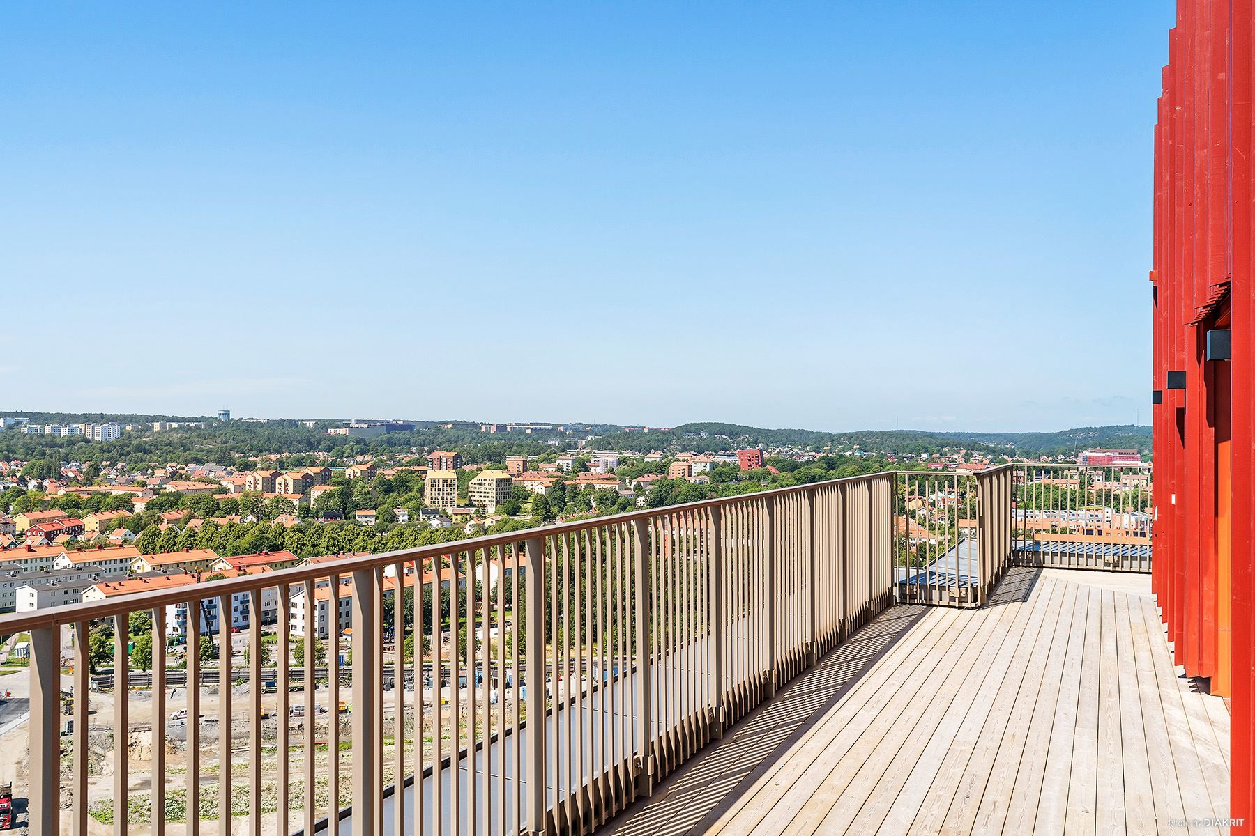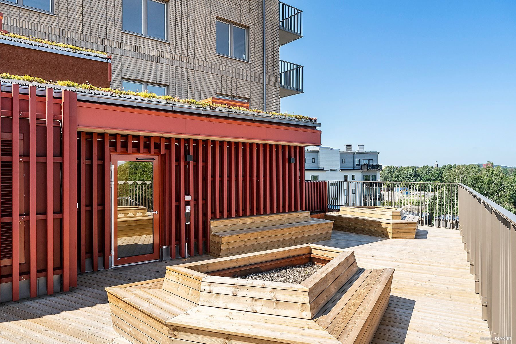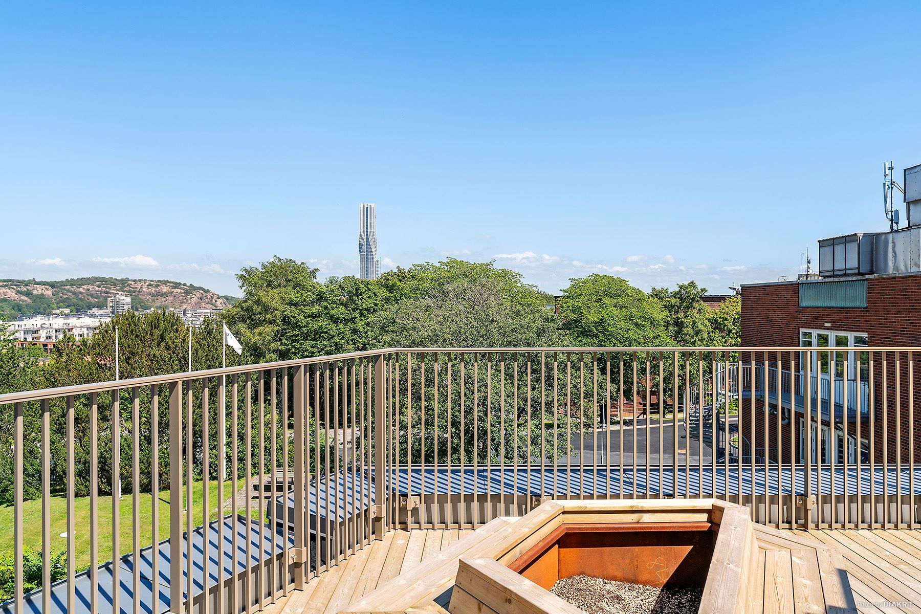 I föreningen finns det tillgång till flera stora gemensamma terrasser en på våning 7 och den andra högst upp med utsikt över hela Göteborg, Co-workingytor och möjlighet att boka övernattningslägenhet i närheten. Terrassen högst upp har även ett inglasat uterum som går att hyra vid tillställningar. I garaget finns en elbilpool som kan nyttjas vid behov.