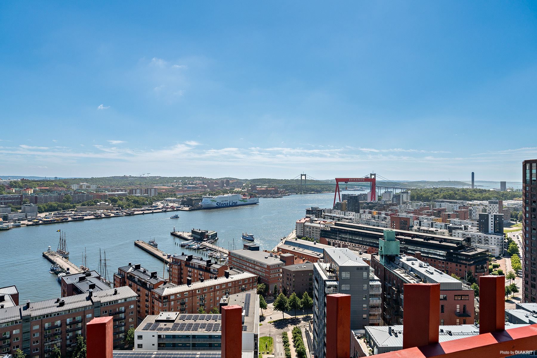 Här bor ni i ett havsnära område som ger extra guldkant på tillvaron. Längs de närliggande kajerna finns kilometerlånga promenadstråk som kantas av trevliga caféer och restauranger. Centrala Göteborg nås smidigt med båt eller buss.