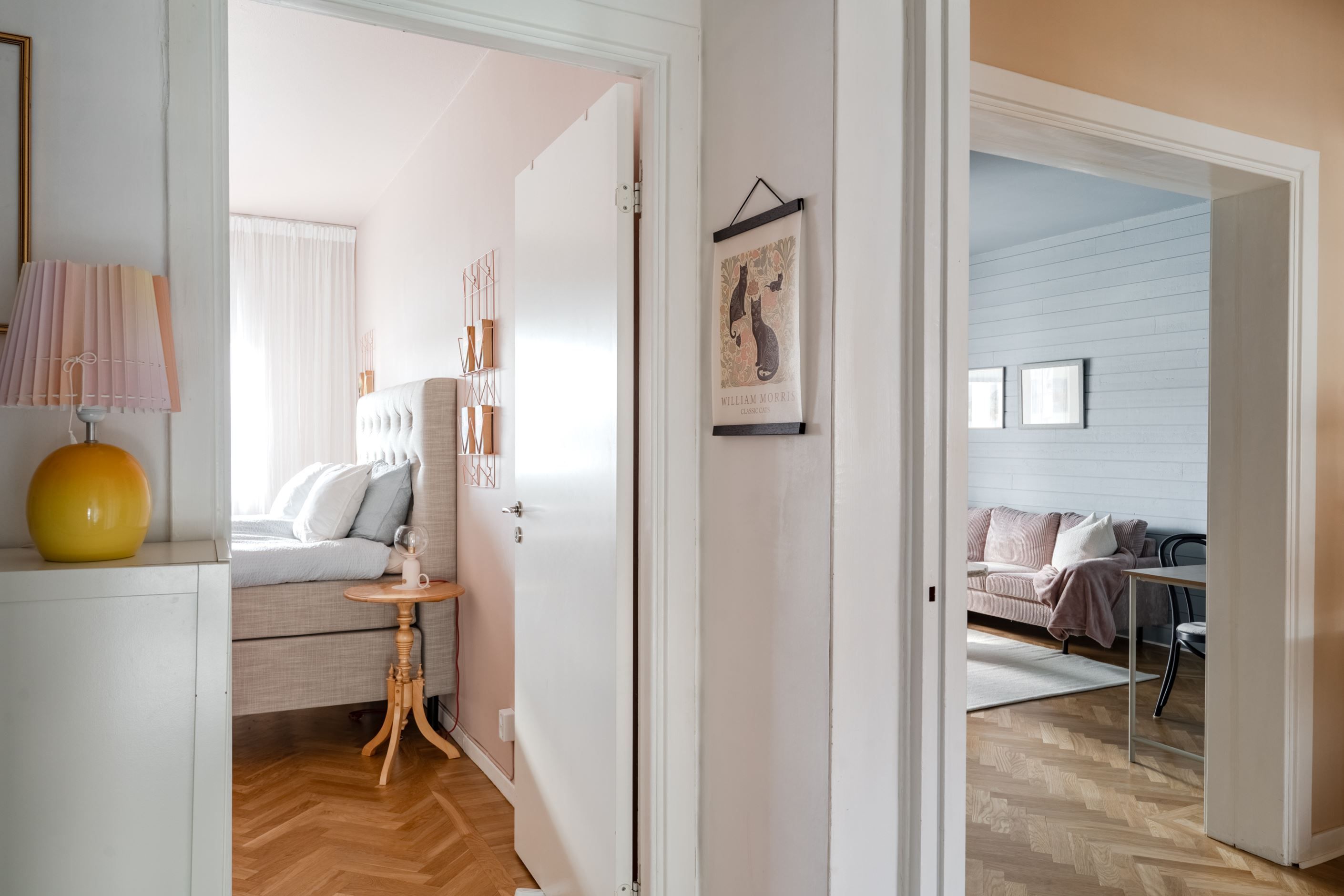 Den vackra fiskbensparketten i ek löper genom hela bostaden och ger en tidlös elegans som sätter tonen redan från första steget in. Planlösningen är både genomtänkt och lätt att trivas i, med en välkomnande hall och goda förvaringsmöjligheter som ger en ordnad och behaglig känsla i vardagen. Unikt med två toaletter för en tvåa!