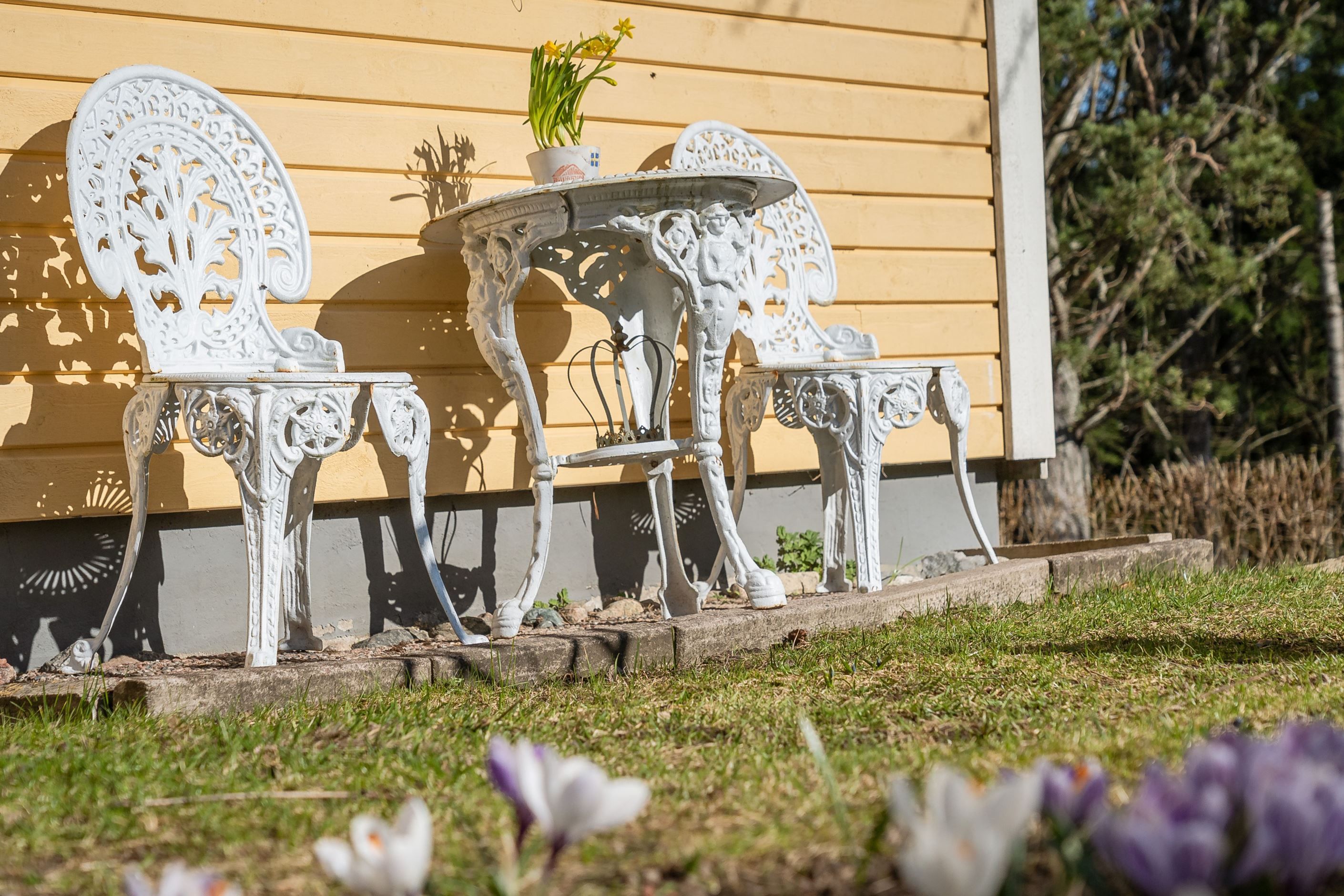 Bostaden rymmer sju rum fördelade över entréplan, övervåning och källare, med gott om förvaringsmöjligheter i flera kattvindar. Här finns även ett uterum med 3-glasfönster som vetter mot den prunkande trädgården – en plats att slå sig ner och följa årstidernas skiftningar.