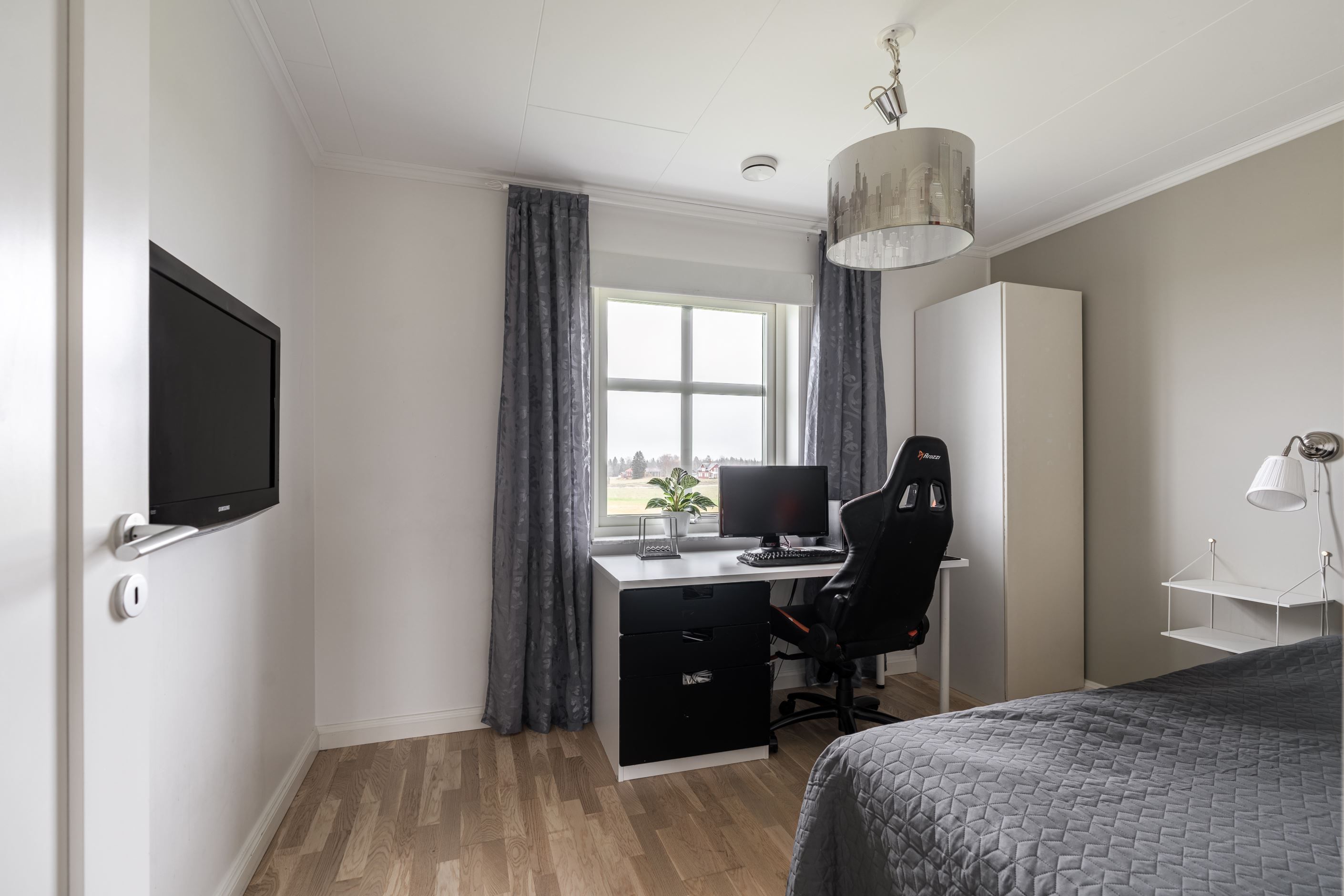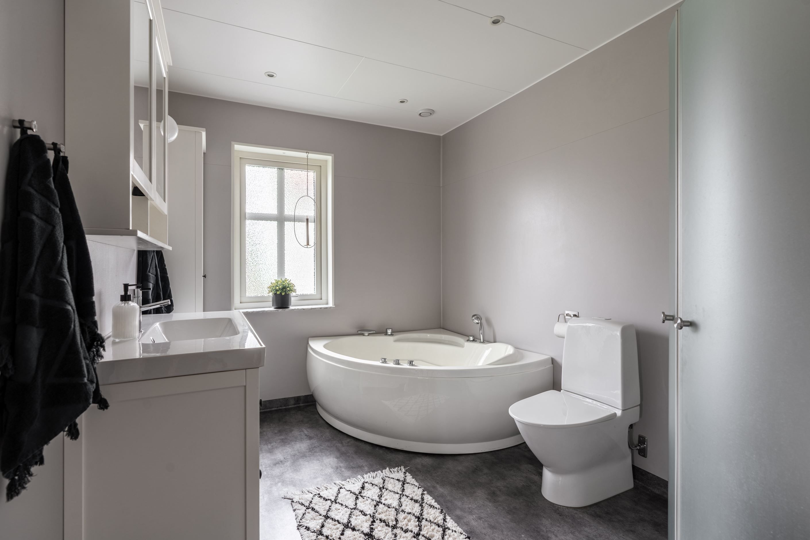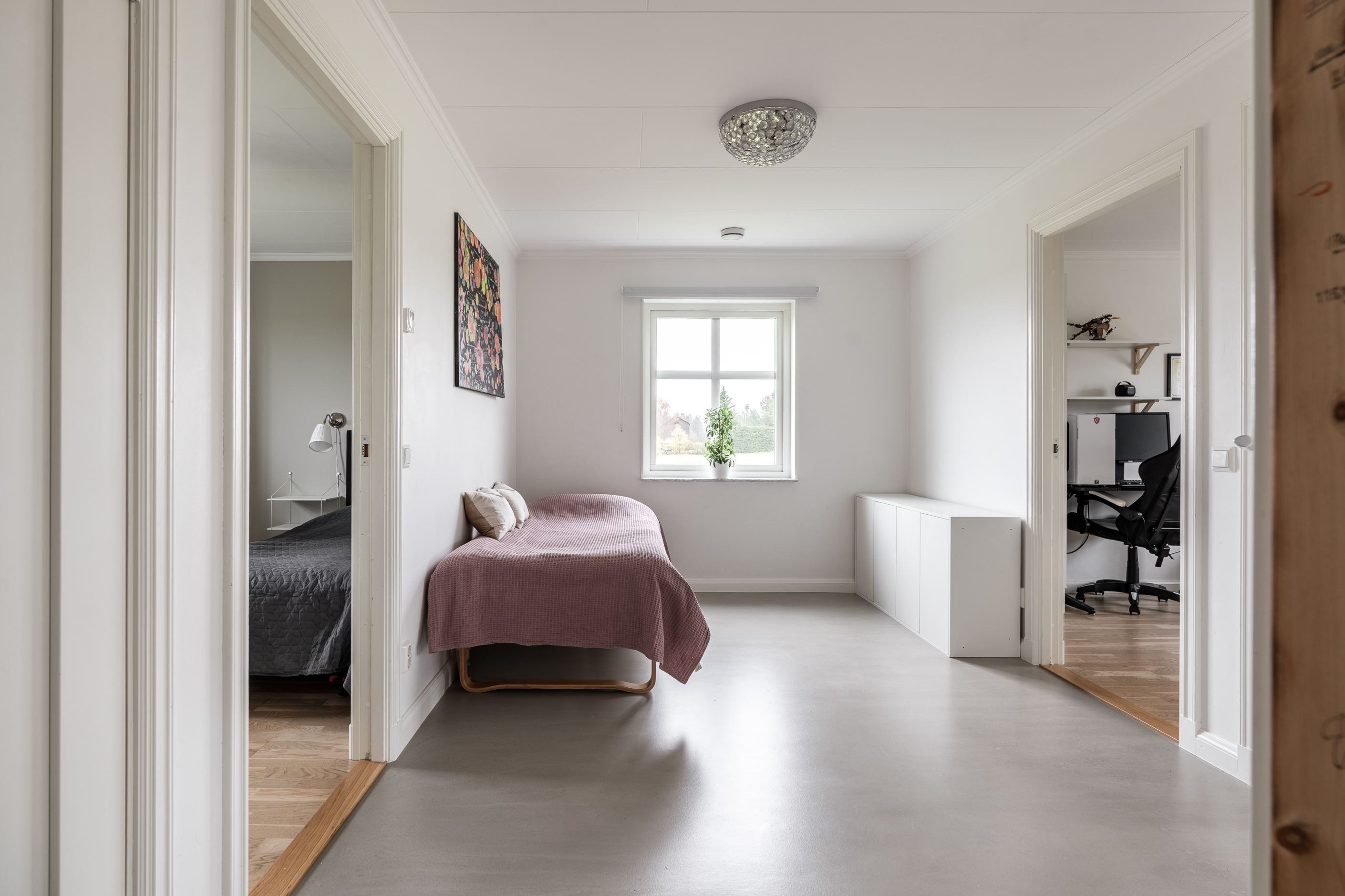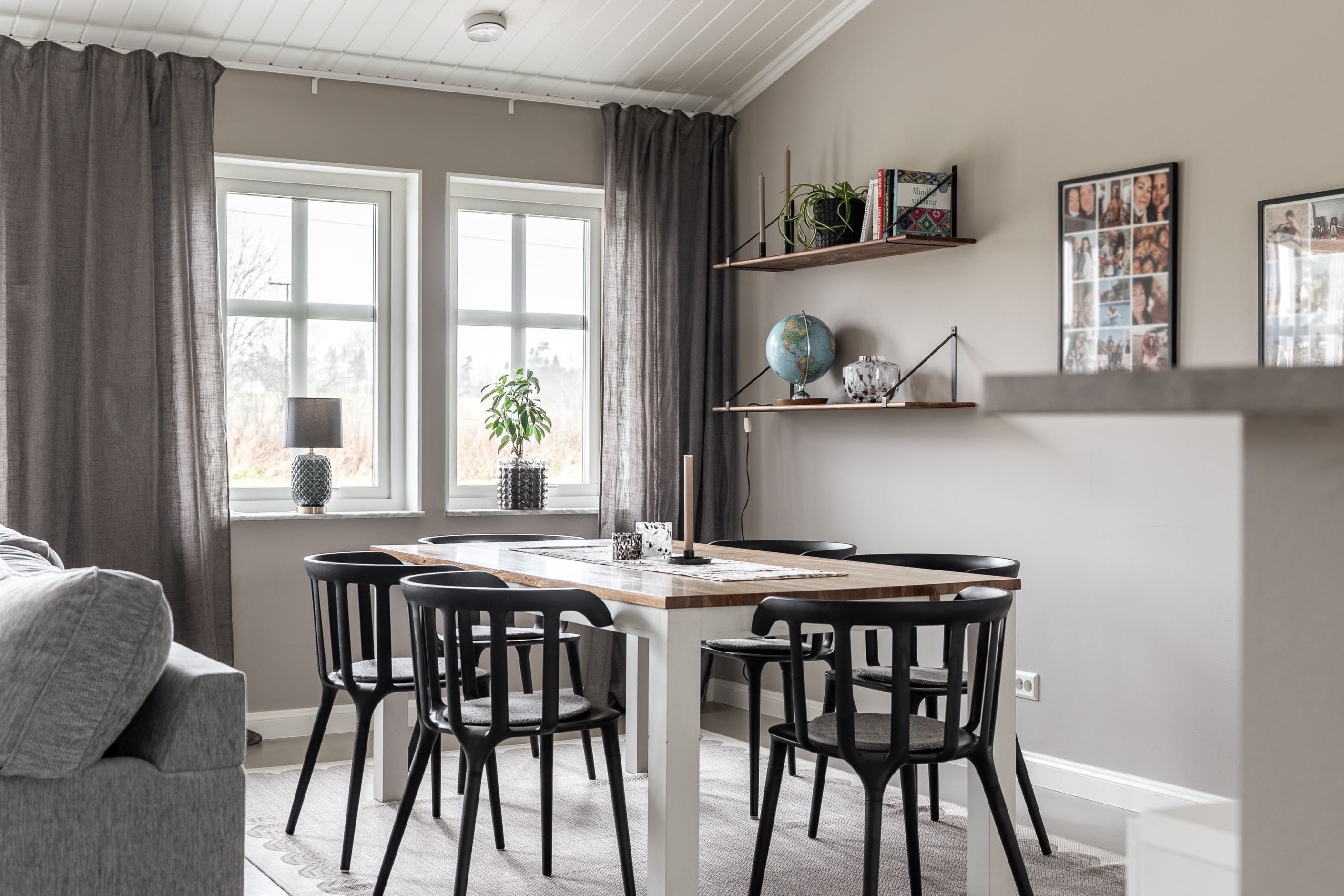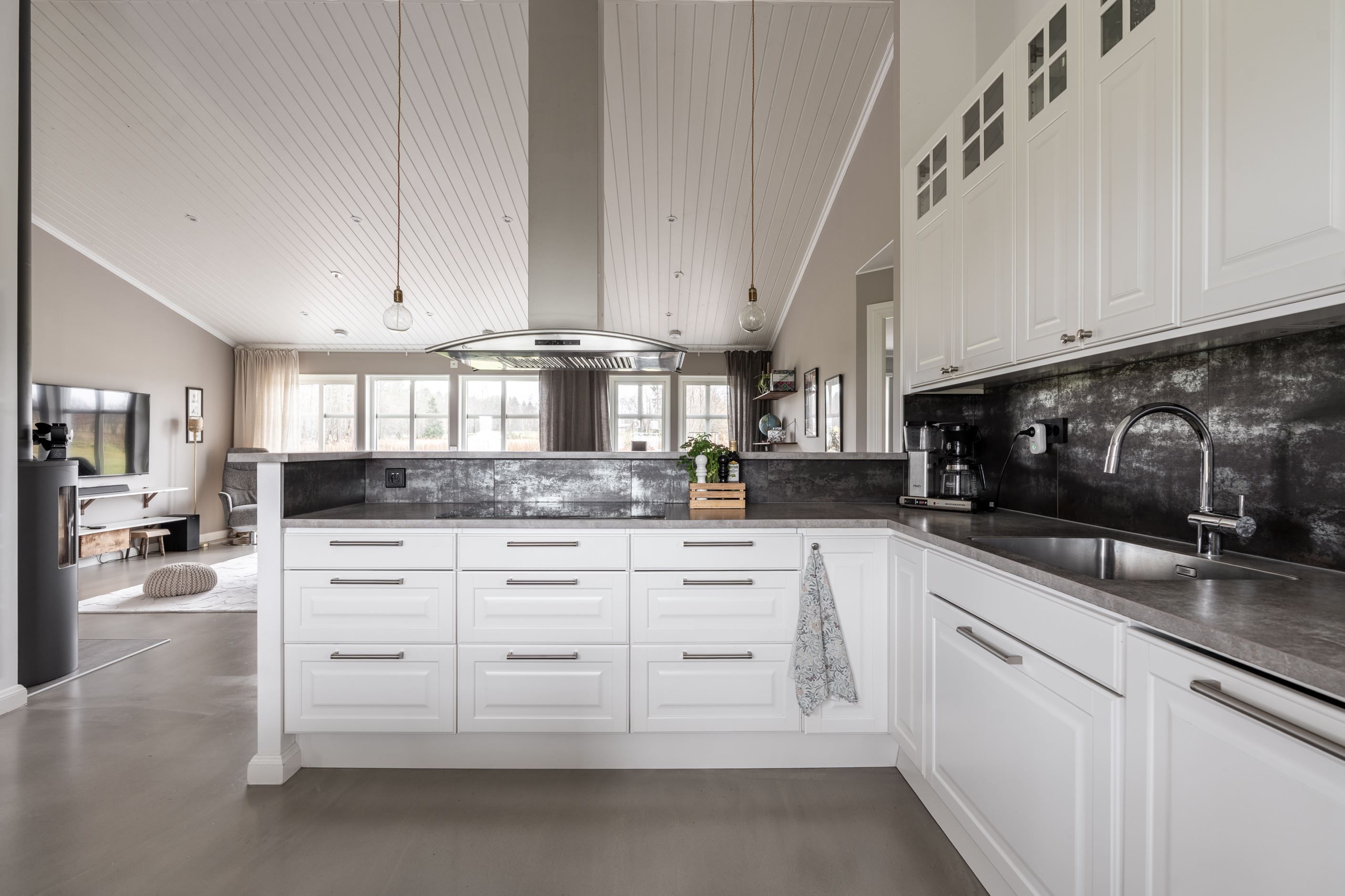 Redan i hallen sätter huset standarden med stilrena färgval och moderna detaljer – en interiör som ligger helt rätt i tiden. Vattenburen golvvärme ger skön komfort året runt, medan de stora fönsterpartierna och den generösa takhöjden fyller kök och vardagsrum med ljus och skapar en härlig rymd. Den öppna planlösningen inbjuder till både vardagsmys och festliga middagar, och under sommarhalvåret blir uteplatsen en naturlig förlängning av hemmet.