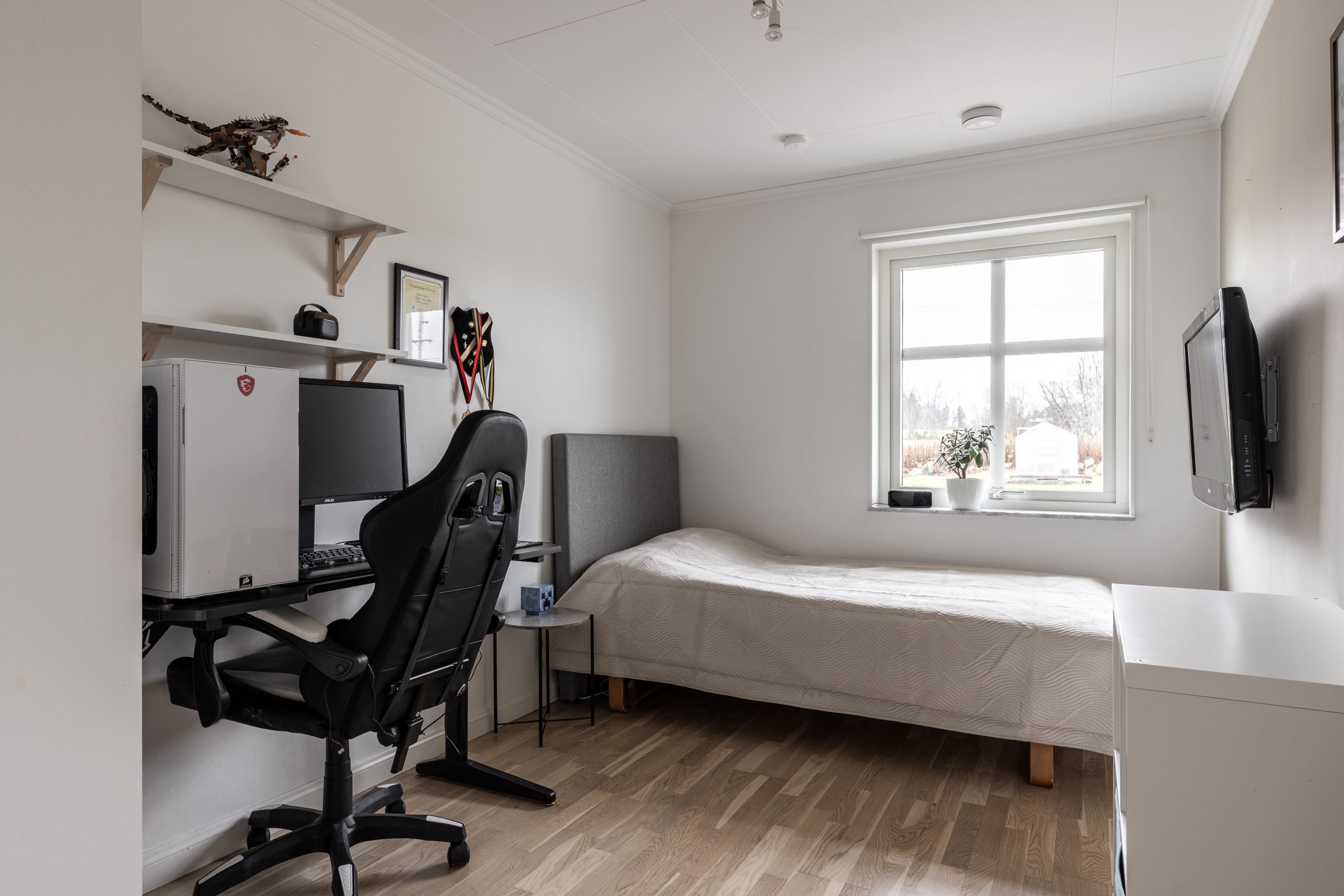 Trots den lantliga idyllen har du staden på bekvämt avstånd. Inom cykelavstånd väntar charmiga sommar- och helgcaféer, bland annat populära Kyrkås Kulturgård bara ett stenkast bort. Området är levande med både skola och förskola nära – ett perfekt hem för hela familjen.